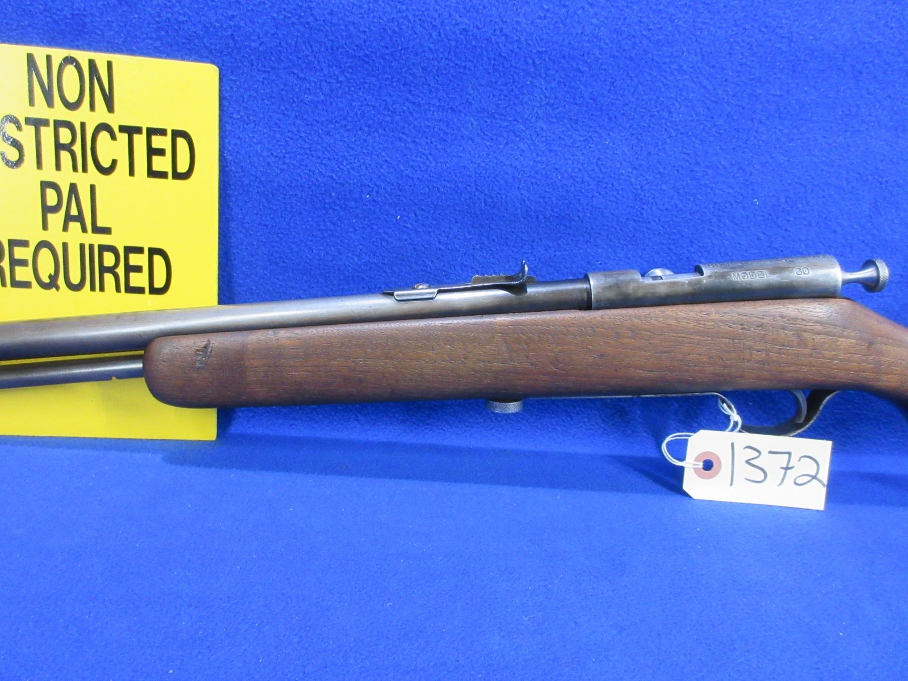 Non-Restricted - Cooey Model 60 in 22 LR - This bolt action rifle with tube magazine appears to be in good to very good working order. Barrel is 24", rifling is good to very good, bluing is turning grey, has both sights, stock is good to very good, metal butt plate good but has an incorrect screw. Ser #None