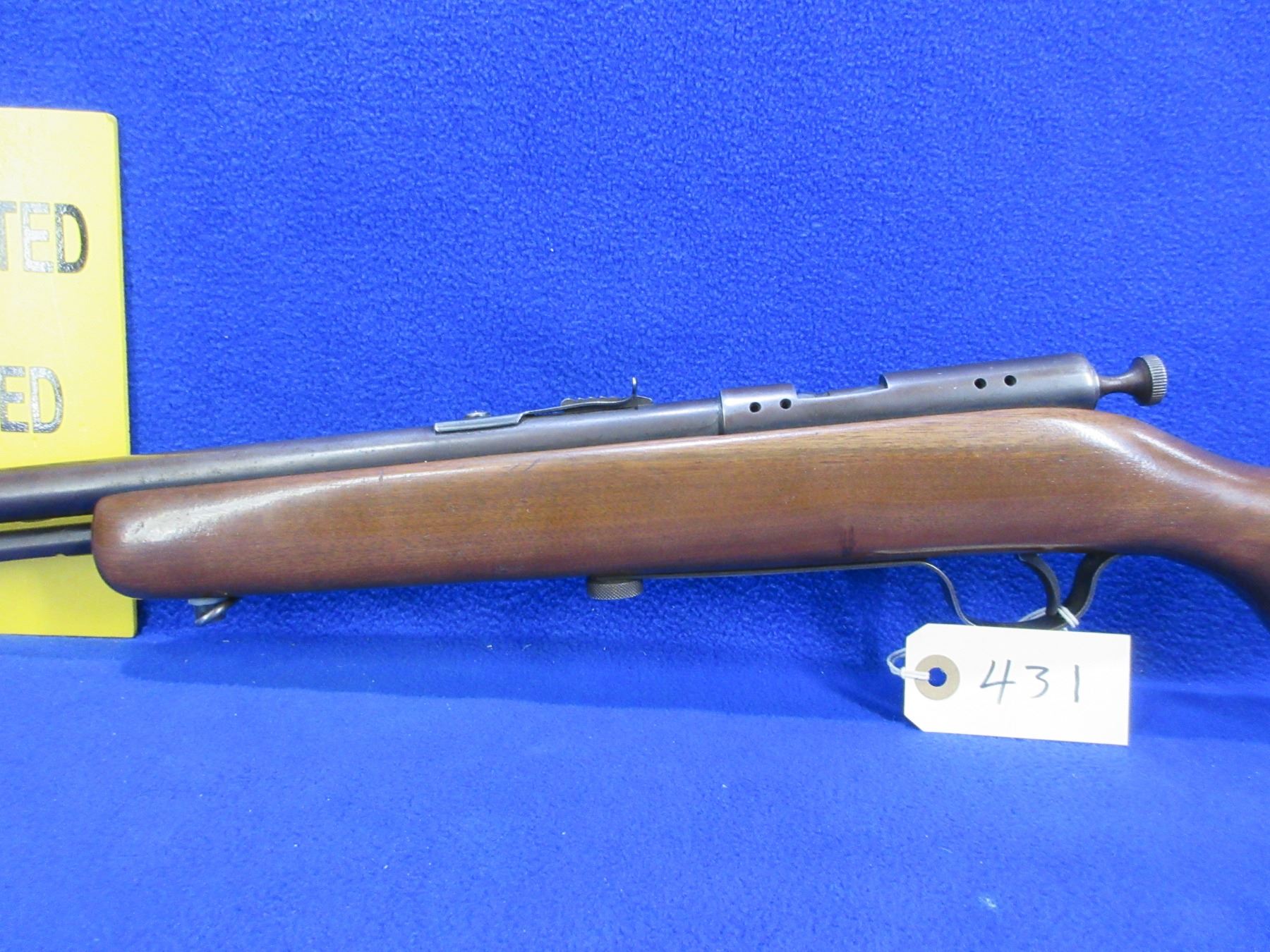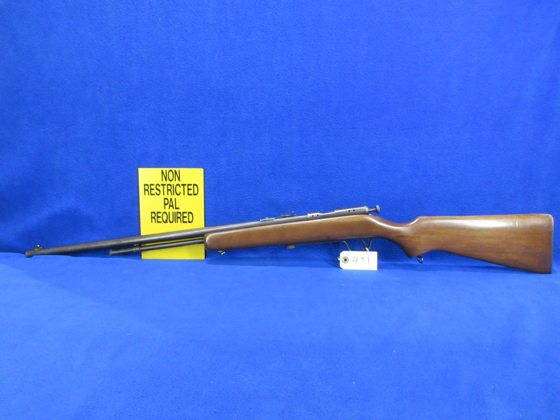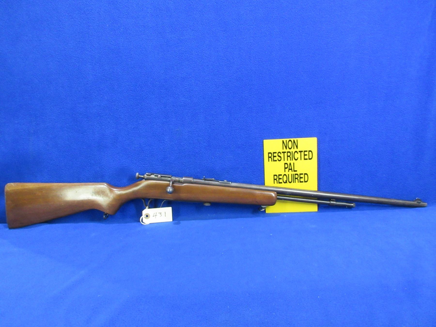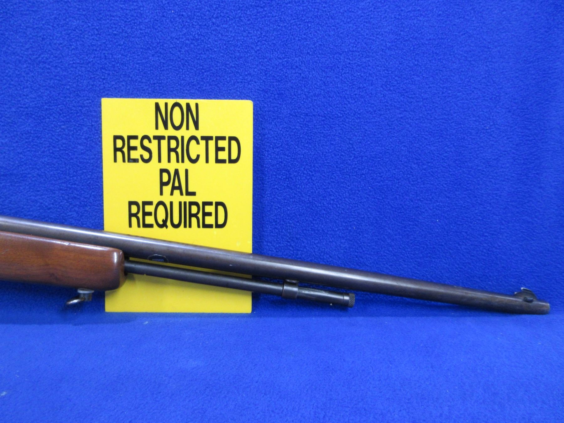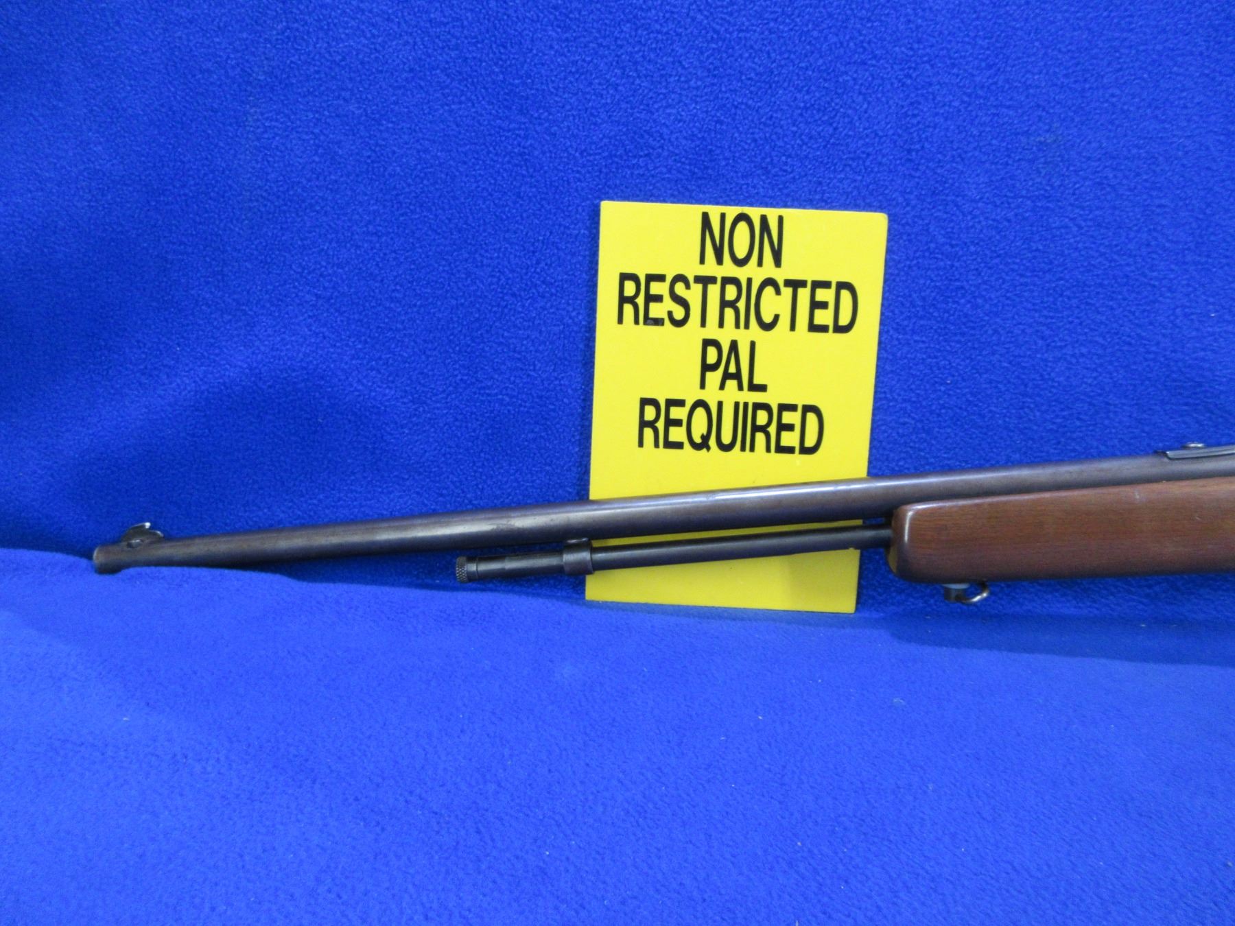 Non-Restricted - Cooey Model 60 in 22 LR - This is a bolt action rifle with tube magazine, action appears to be in good to very good working order. Barrel is 24", rifling is good to very good, bluing is fair to good as turning grey, has both sights, stock is good to very good with usage marks, length of pull is 13 1/2", metal butt plate good, comes with swivels. Ser # 4983632 on Sticker