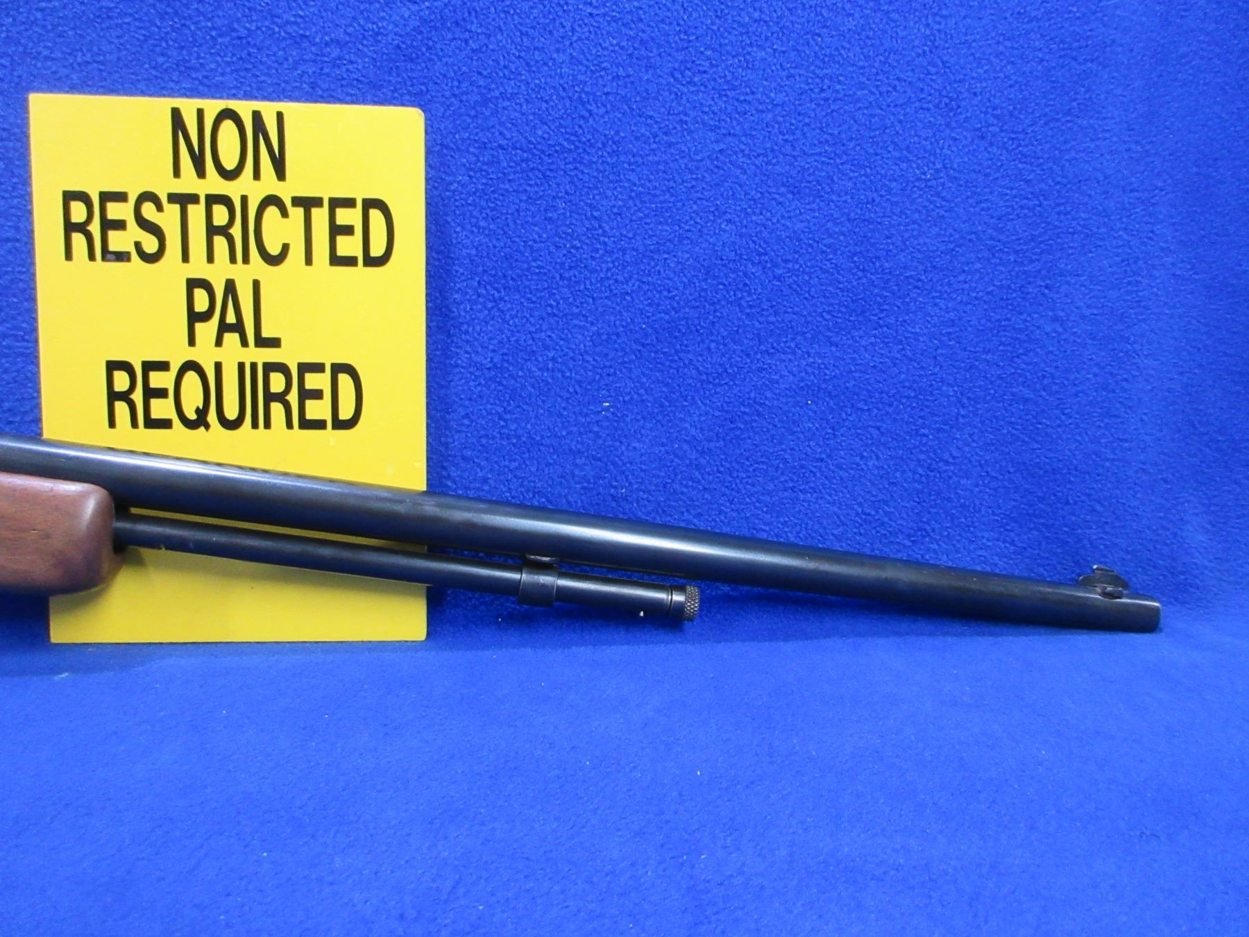 Non-Restricted - Cooey Model 60 in 22 S, L & LR - This is a bolt action rifle with tube magazine, action appears to be in good to very good working order. Barrel is 24", rifling is good to very good, bluing is good to very good, has both sights and is drilled and tapped for side mount scope, stock is good to very good but has drying crack on right side of butt, length of pull is 14", metal butt plate good. Ser # None