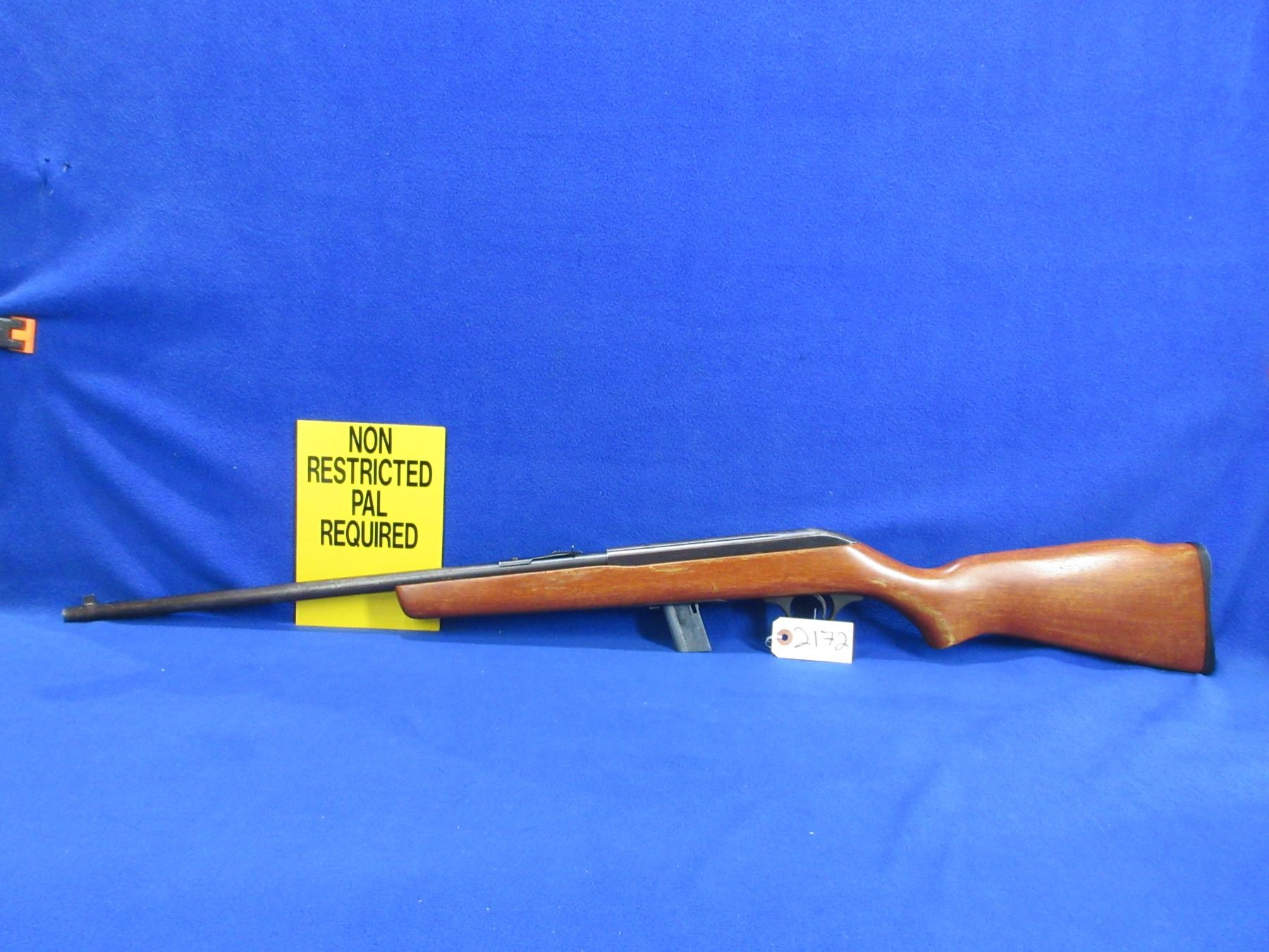 Non-Restricted - Cooey Model 64 in 22 LR - This semi-auto rifle with removable magazine appears to be in good to very good working order. Barrel is 20", rifling is good to very good, bluing is turning brown and has pitting, has both sights, stock is good to very good with usage marks but finish is fading, butt plate good. Ser # None