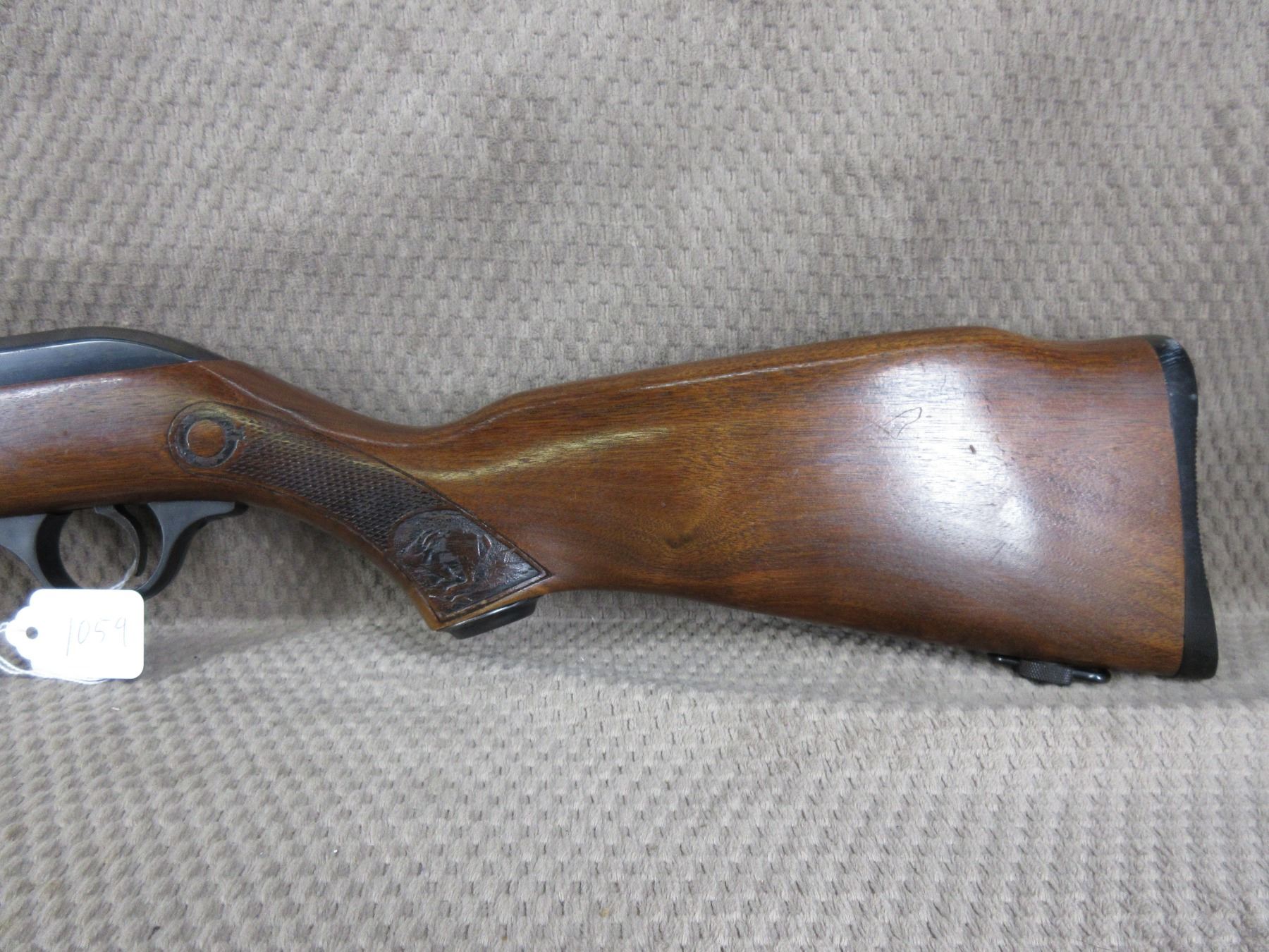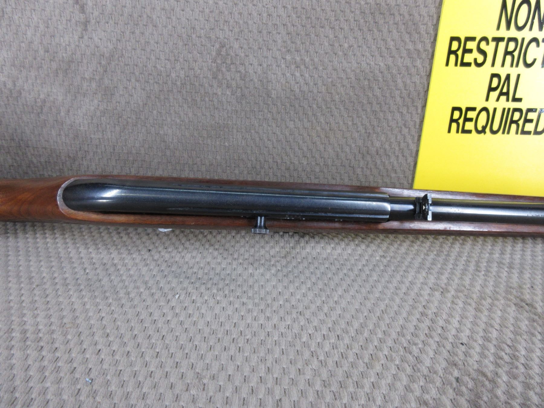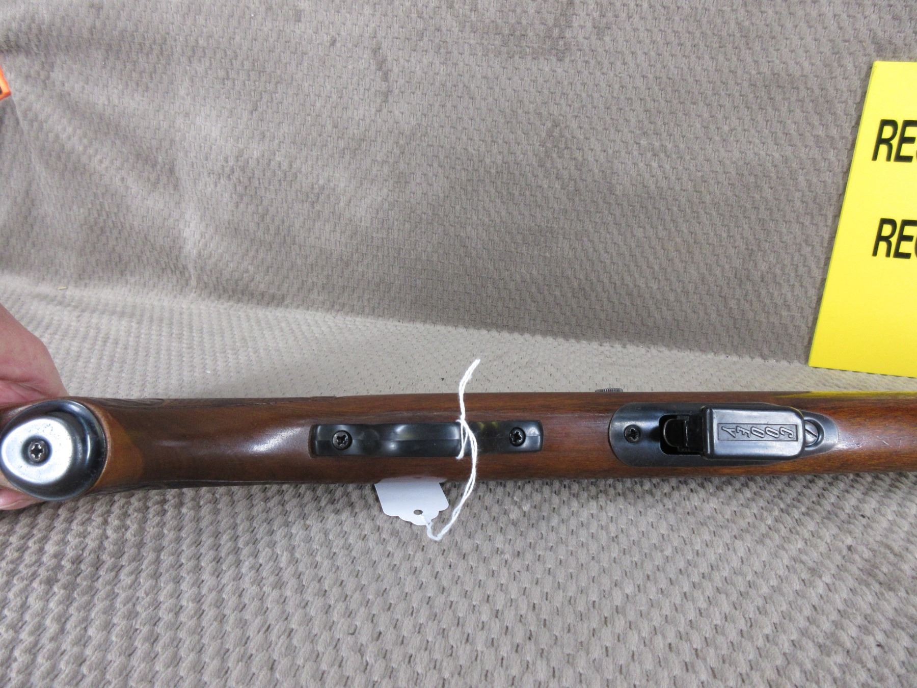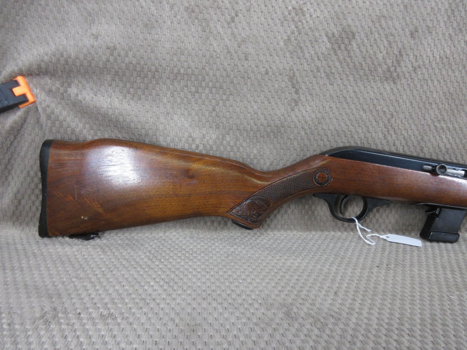Non-Restricted - Cooey Model 64 in 22 Long Rifle - This semi-auto rifle with magazine appears to be in good to very good working order. Barrel 20", bluing is fair to good with pitting marks, rifling is good to very good, has both sights, rabbit stock good with usual marks, butt plate good, has swivels, Ser # None