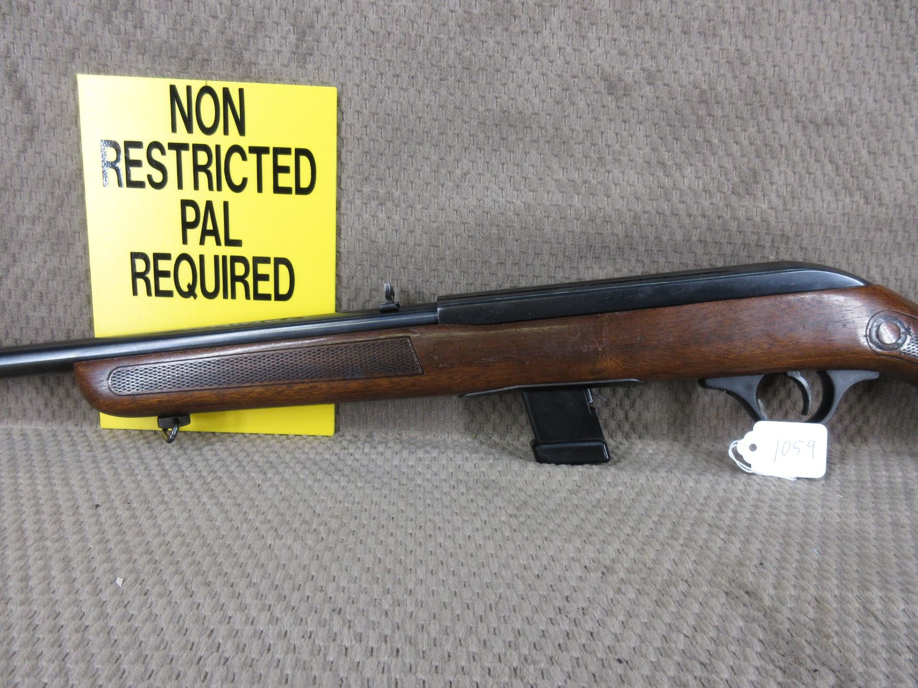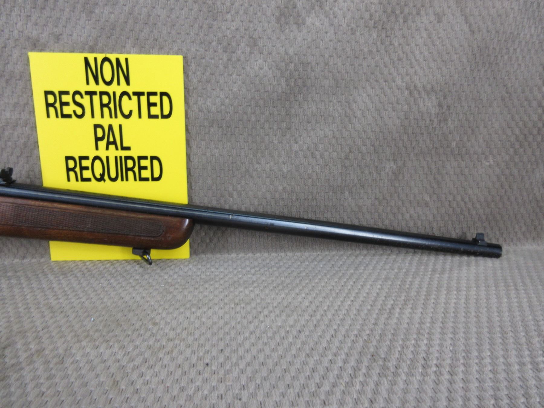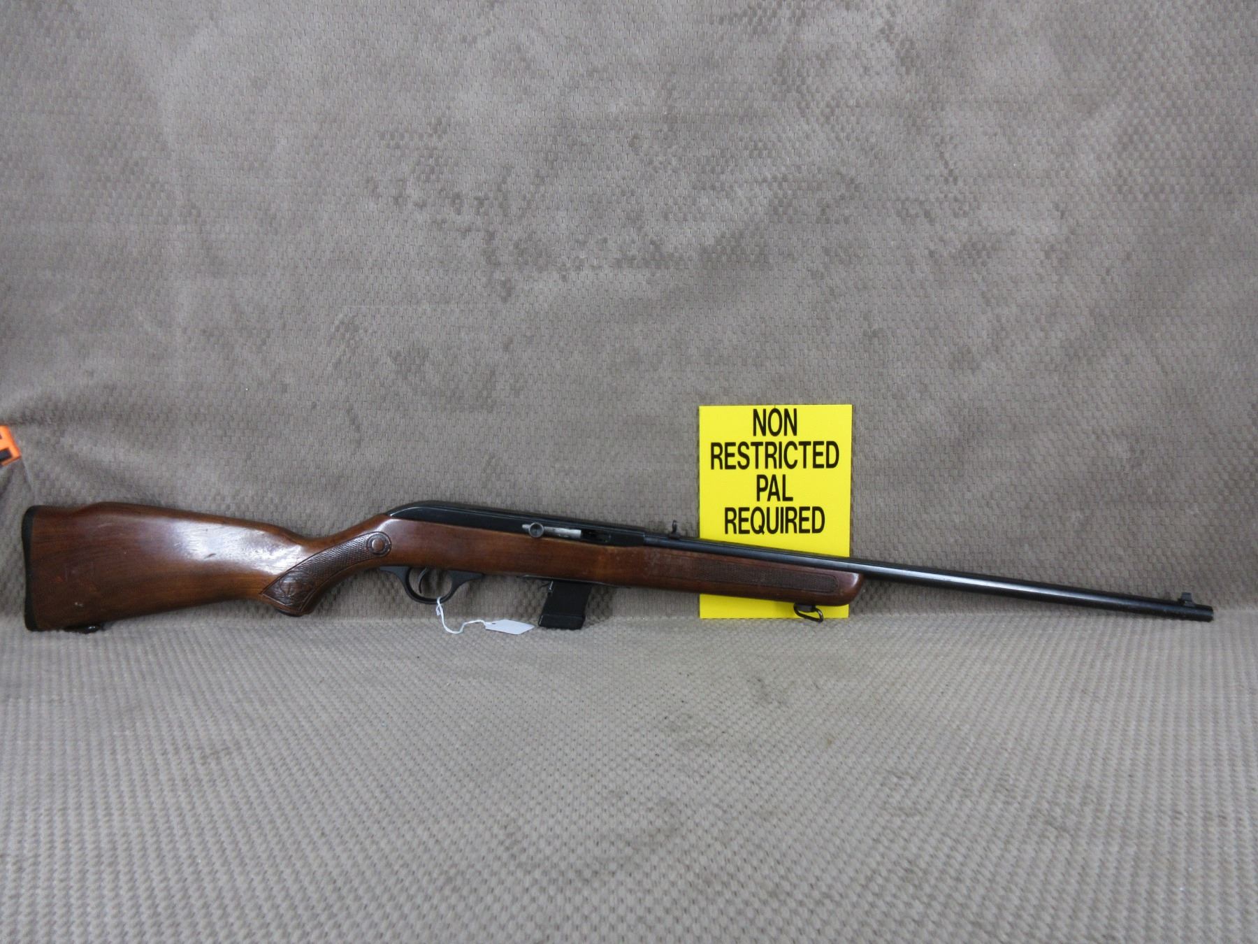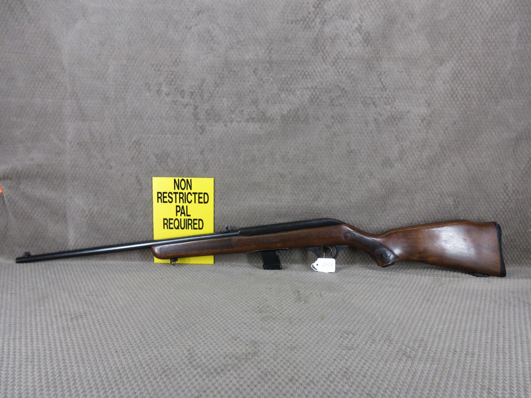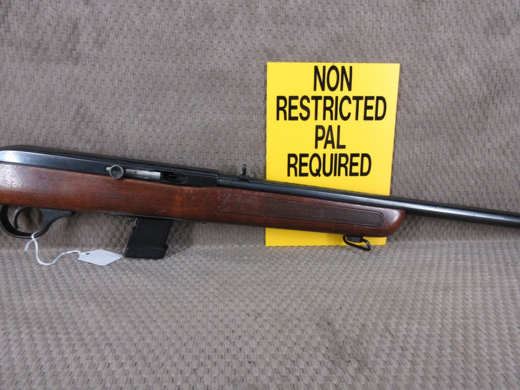 Non-Restricted - Cooey Model 64 in 22 Long Rifle - This semi-auto rifle with magazine appears to be in good to very good working order. Barrel 20", bluing is fair to good with pitting marks, rifling is good to very good, has both sights, rabbit stock good with usual marks, butt plate good, has swivels, Ser # None