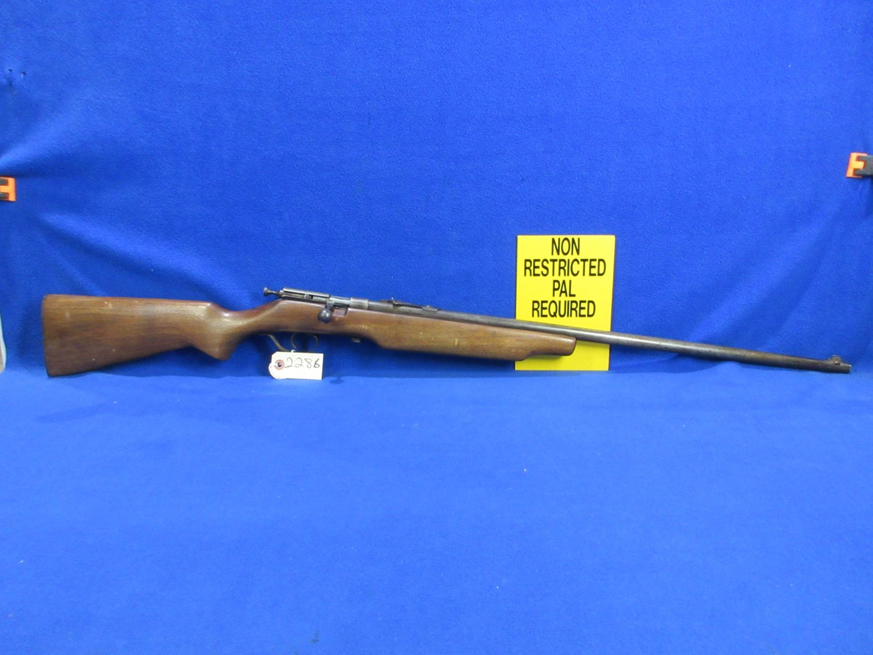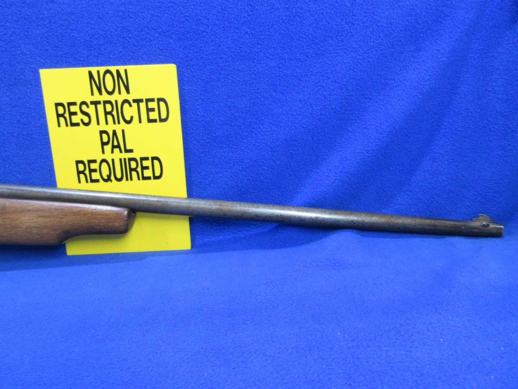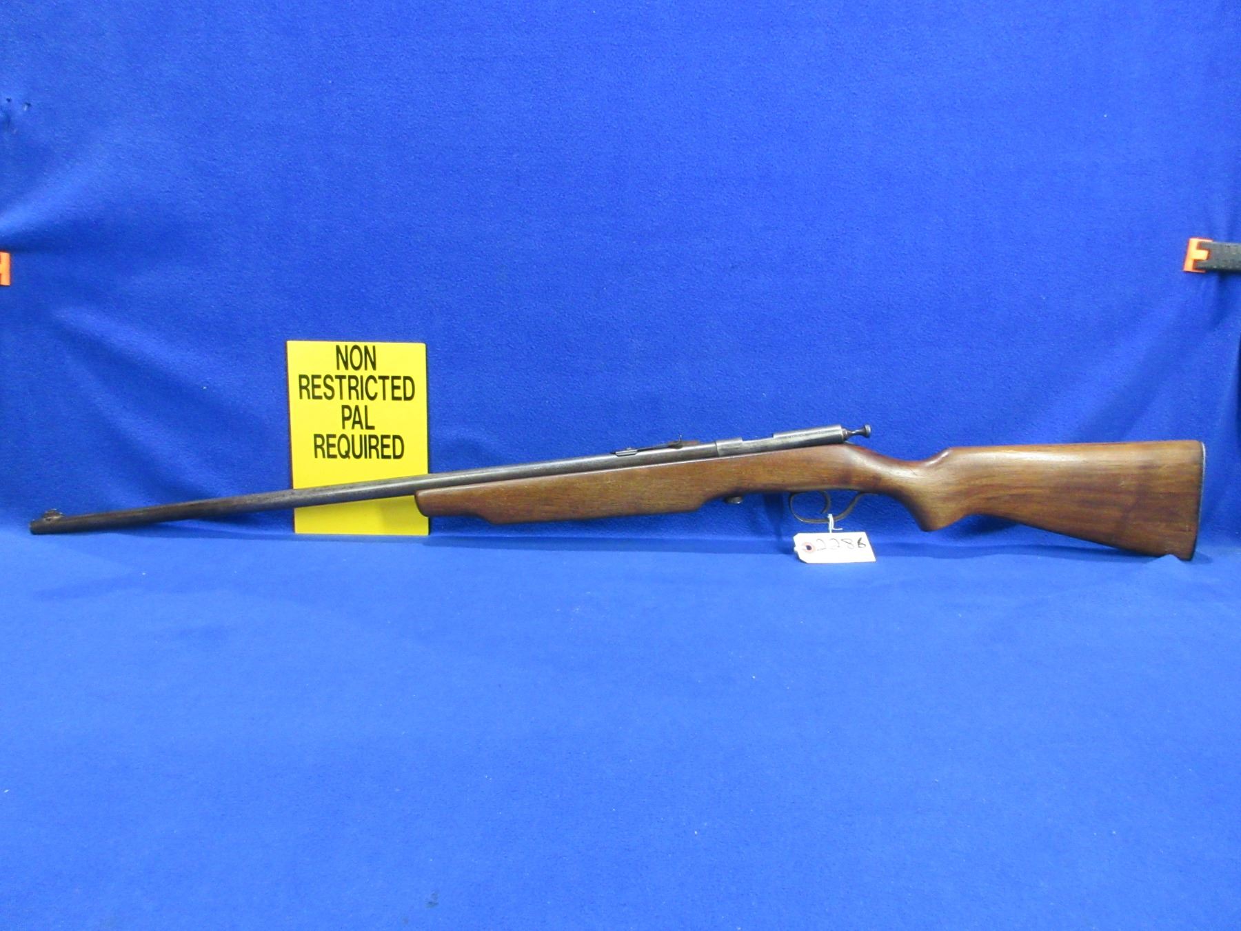 Non-Restricted - Cooey Model 75 in 22 LR - This single shot bolt action rifle appears to be in good to very good working order. Barrel is 27", rifling is good to very good, bluing is mostly gone, has both sights, stock is good to very good with usage marks, metal butt plate, missing swivel studs. Ser # None