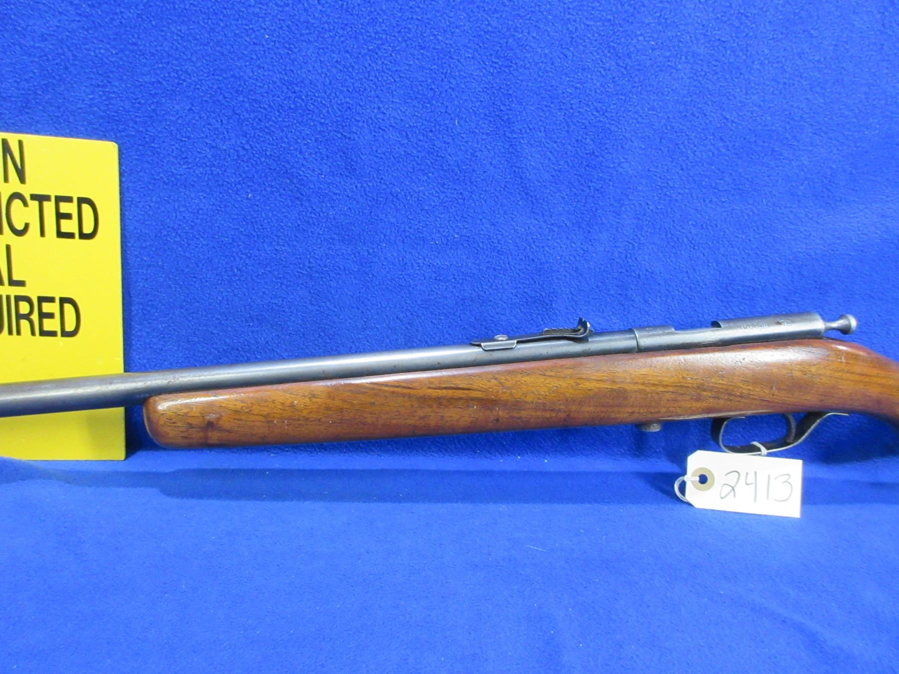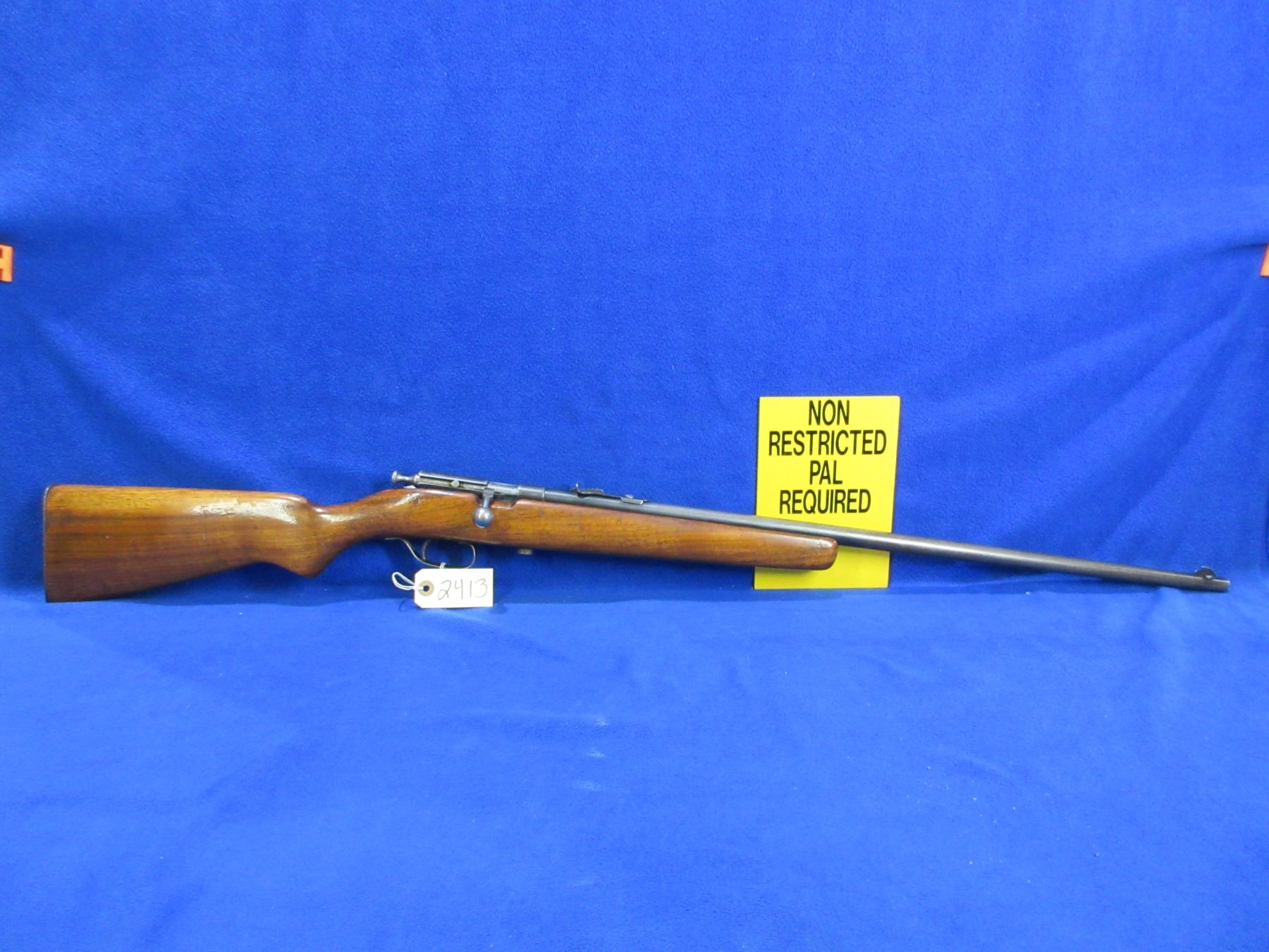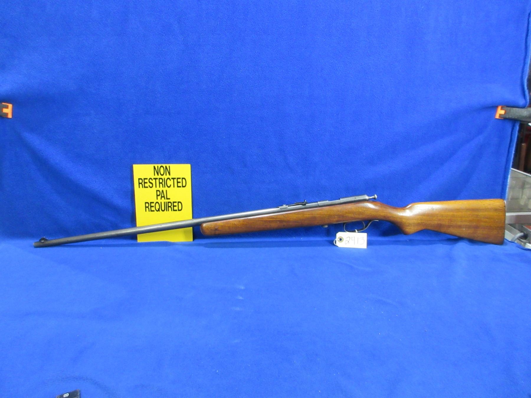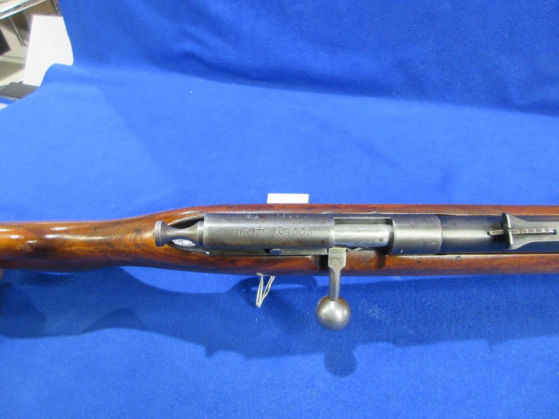 Non-Restricted - Cooey Model 75 in 22 LR- This is a bolt action single shot rifle, action appears to be in good to very good working order. Barrel is 27", rifling is good to very good, bluing is grey, has both sights, stock is good to very good, metal butt plate good. Ser #None
