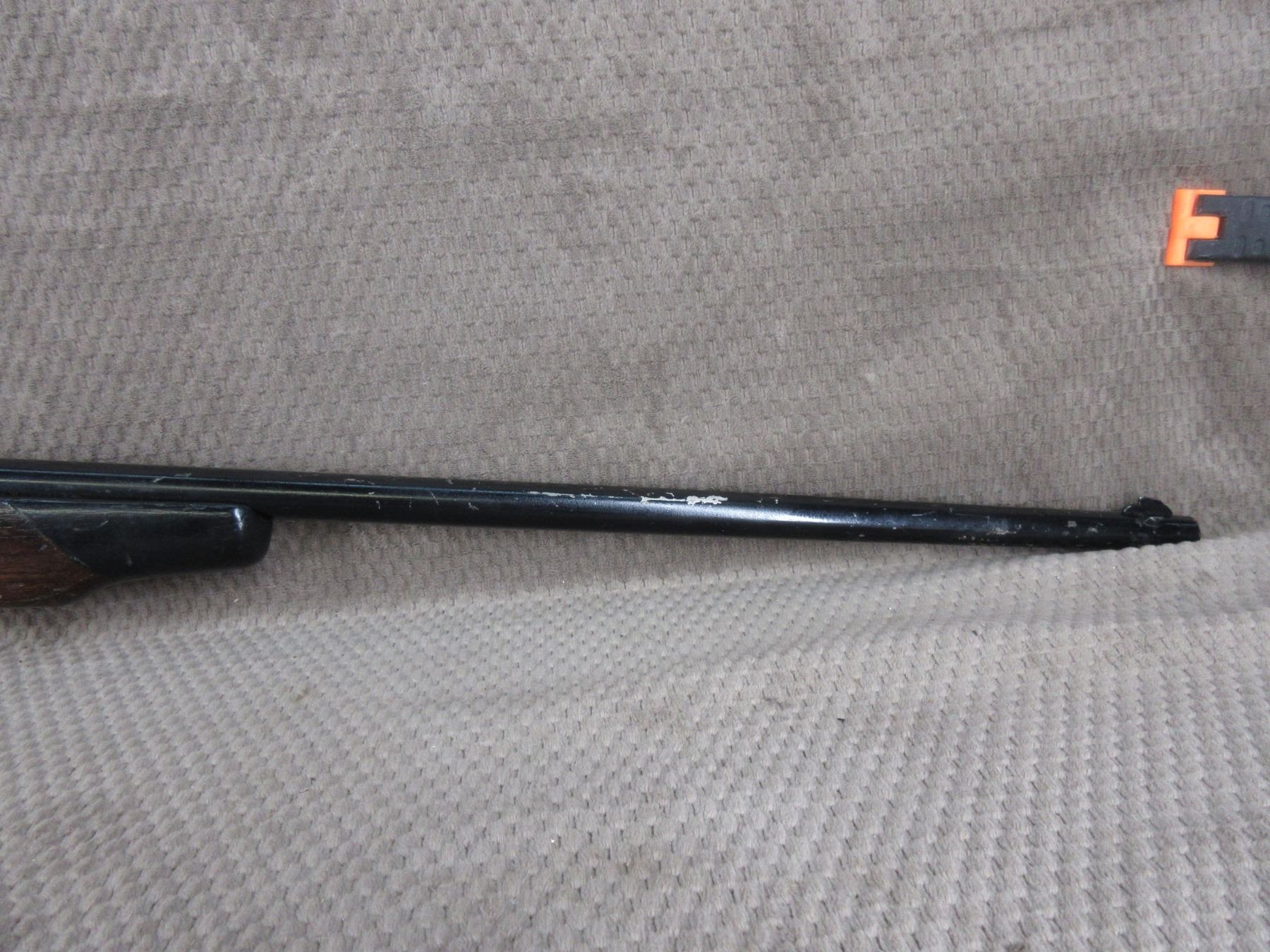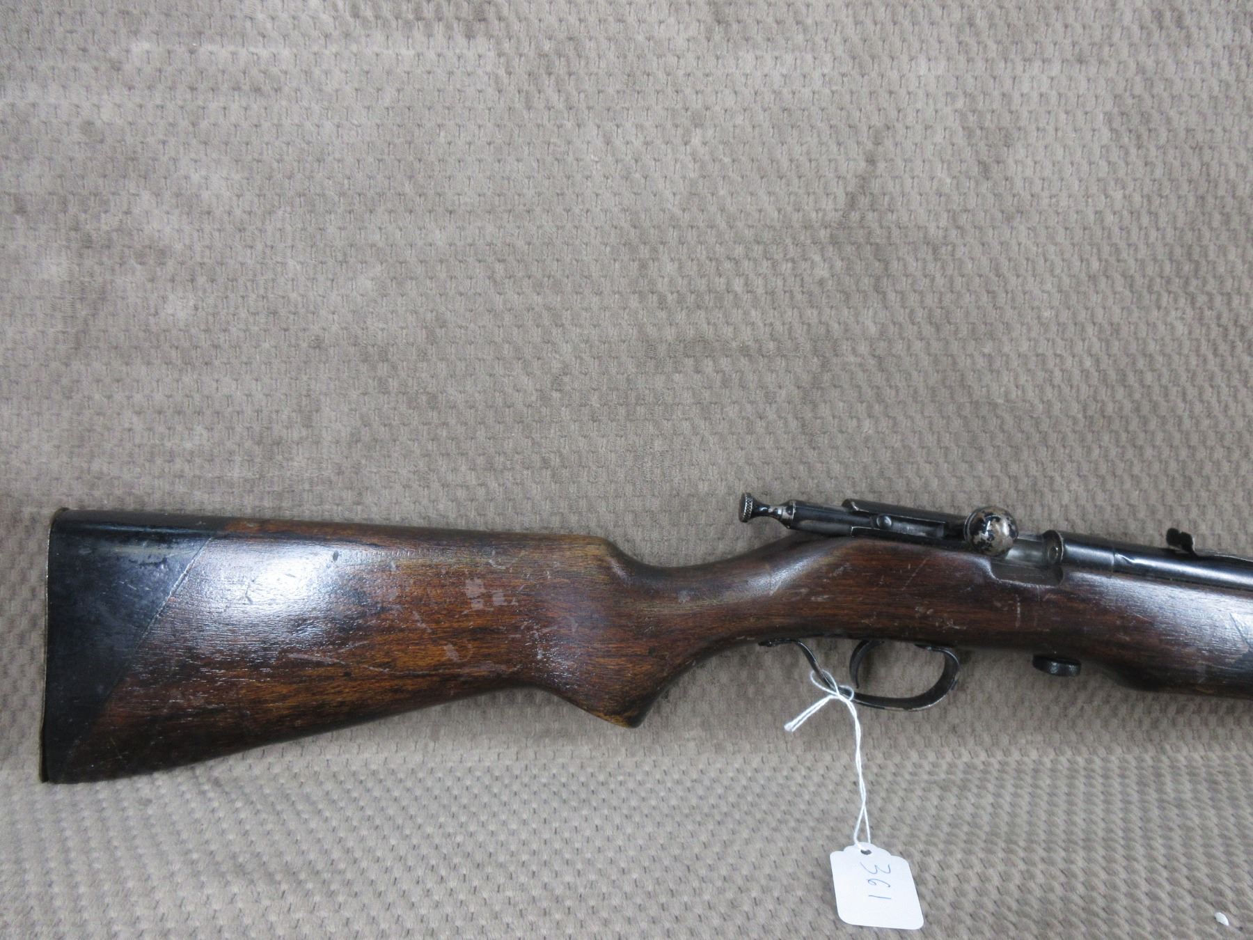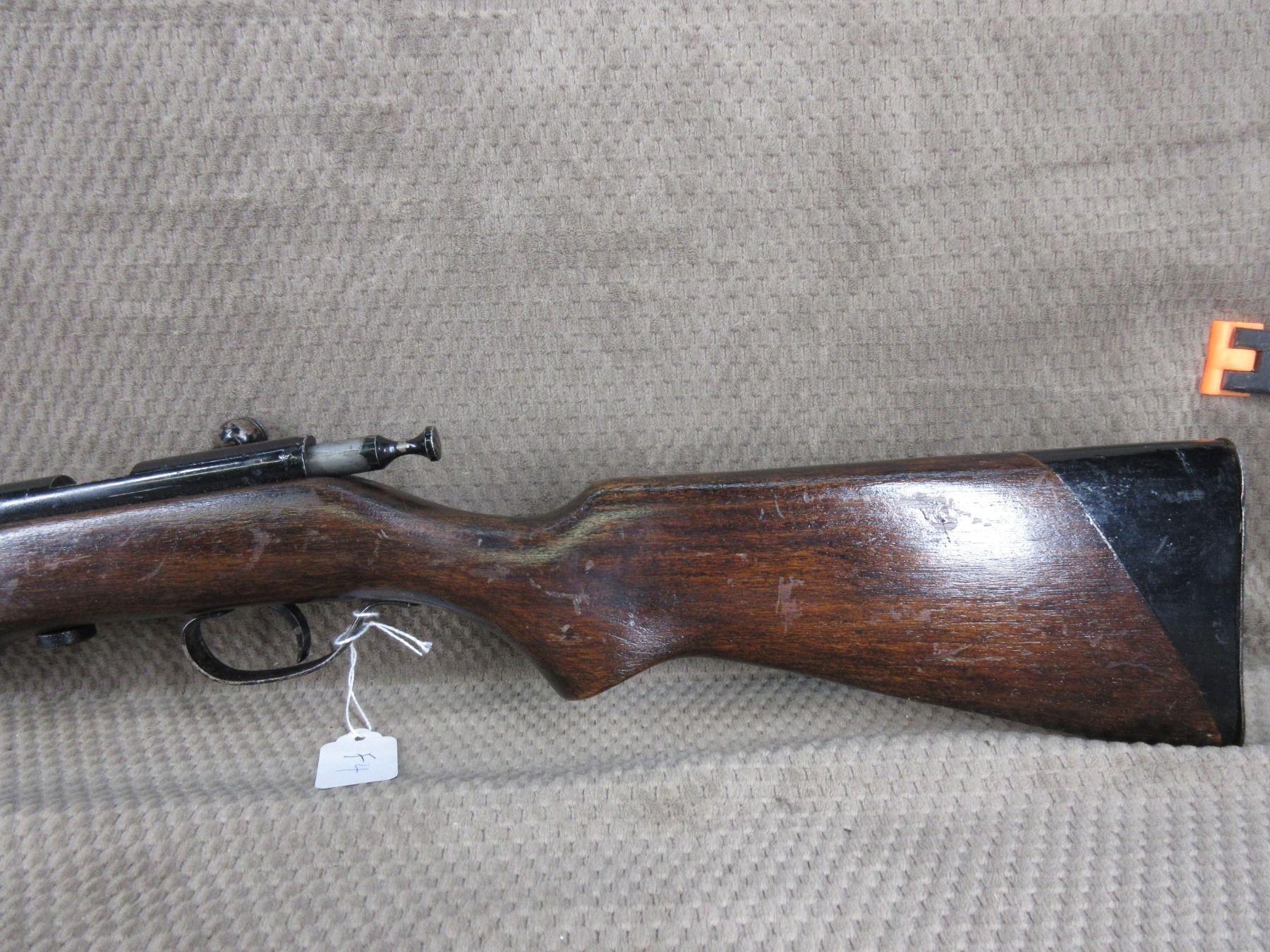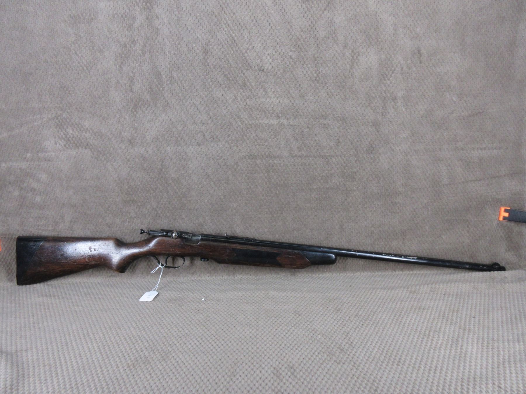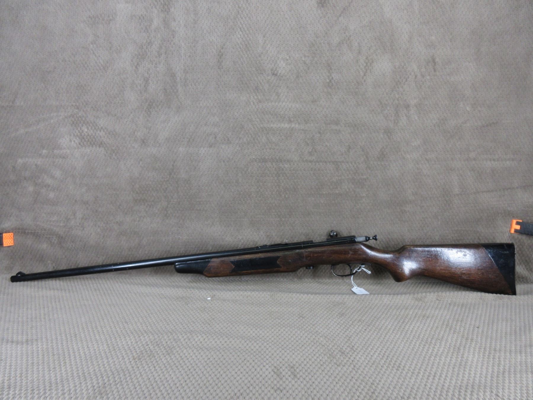 Non-Restricted - Cooey Model 75 in 22 Long Rifle - This single shot bolt action rifle is not in working order as the bolt is missing the extractor. Barrel is 27", rifling is very good, bluing has been painted black, has both sights, rear sight missing ramp, stock appears over sanded and has black paint in some areas, metal butt plate.