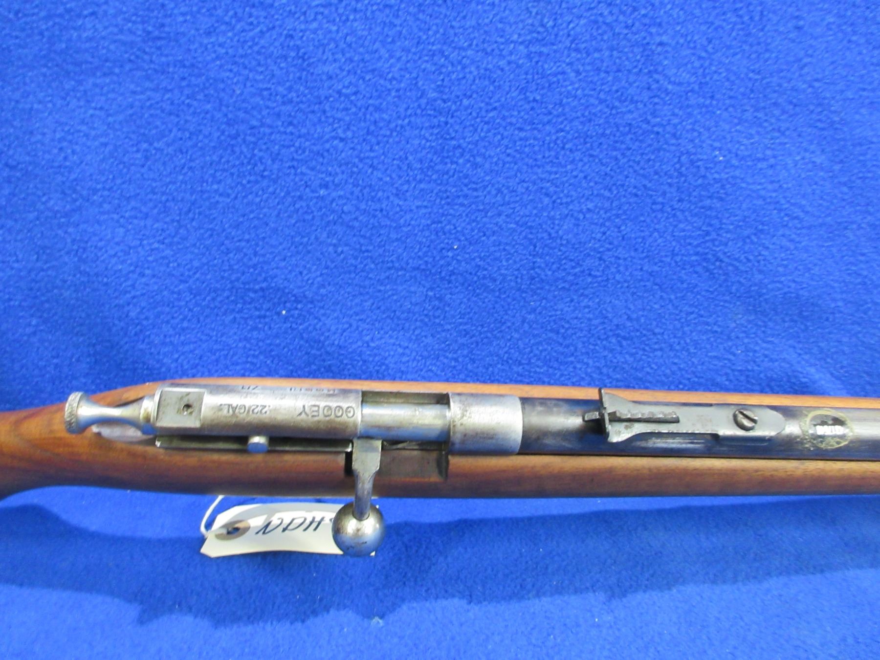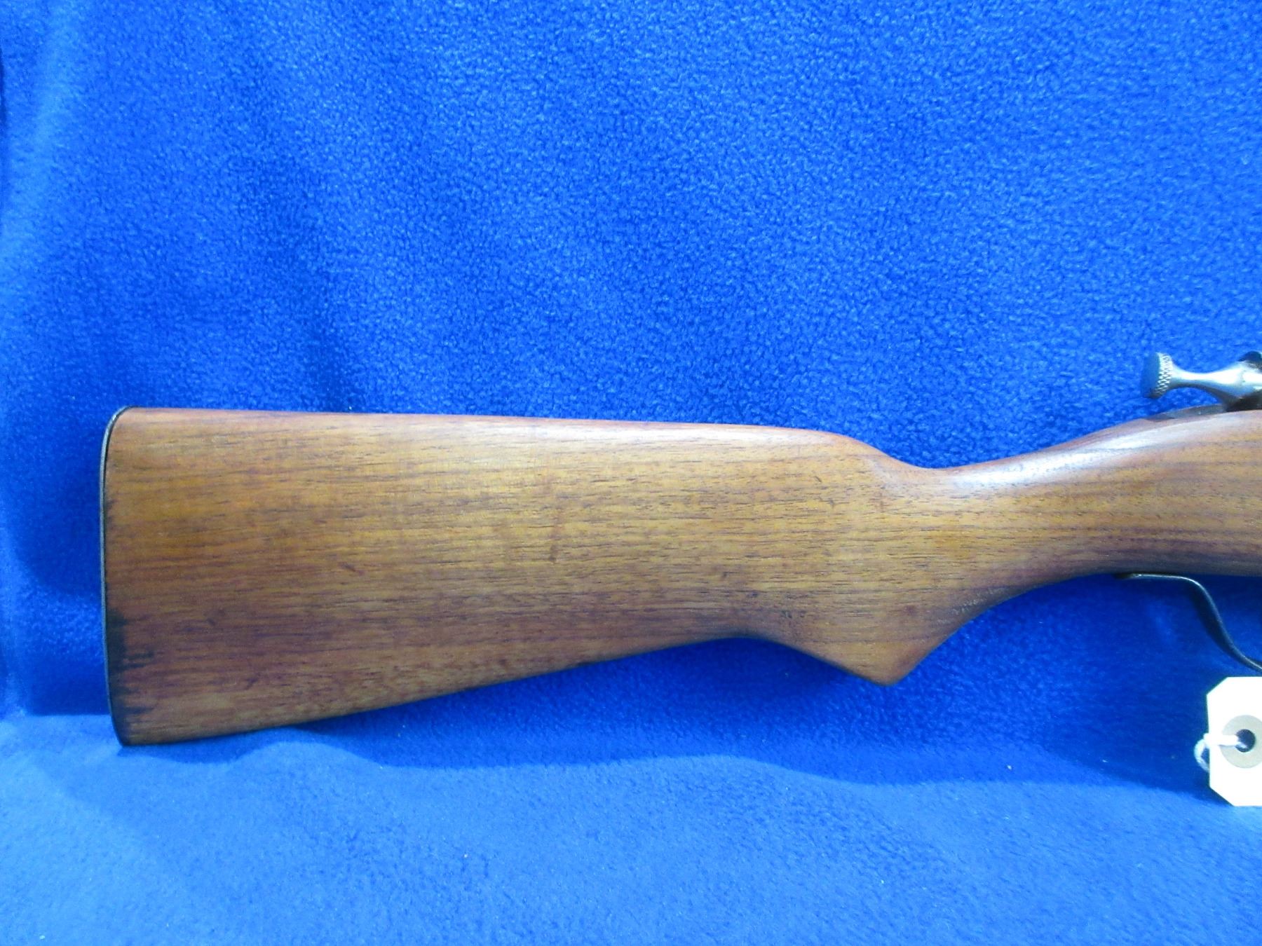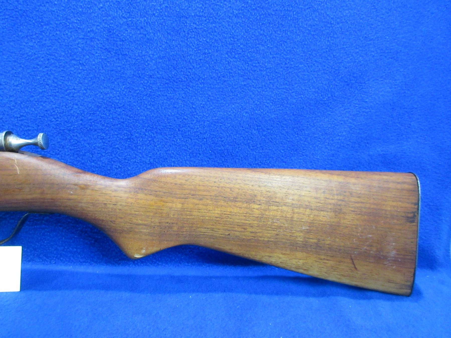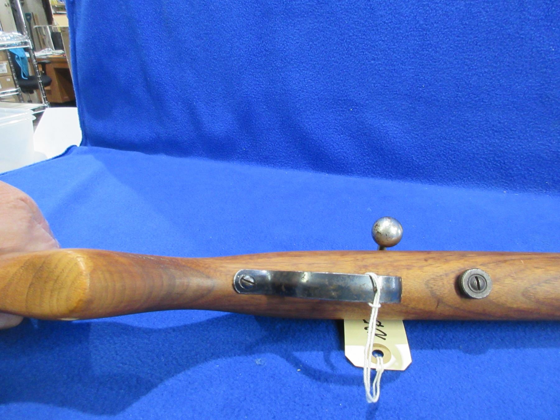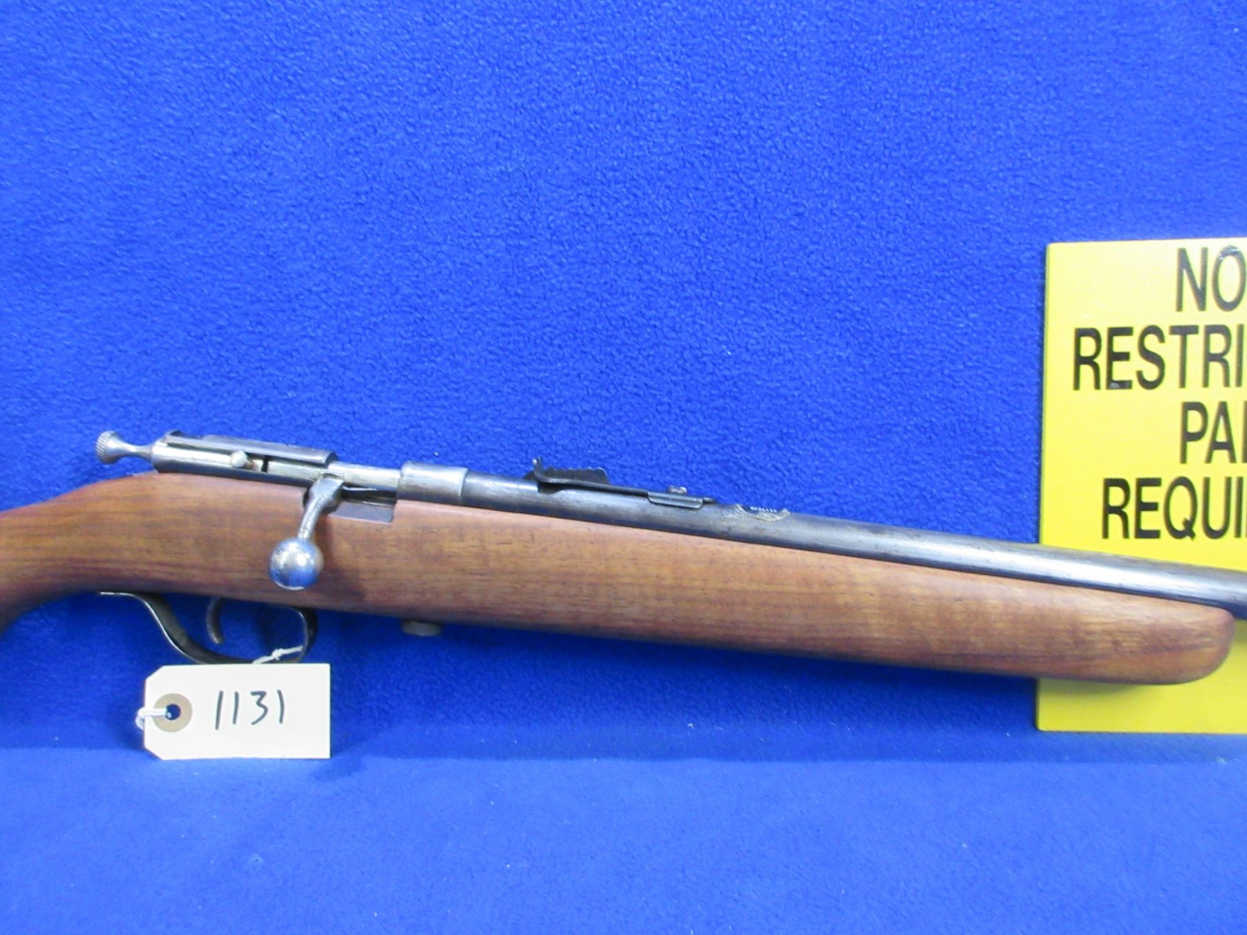 Non-Restricted - Cooey Model 78 Single Shot in 22 Cal. - This is a single shot bolt action rifle, action appears to be in good to very good working order. Barrel is 27", rifling is good to very good, bluing is gone, has both sights, stock has been refinished and is good to very good, length of pull is 13 1/2", metal butt plate good. Ser # 4317648 on Sticker