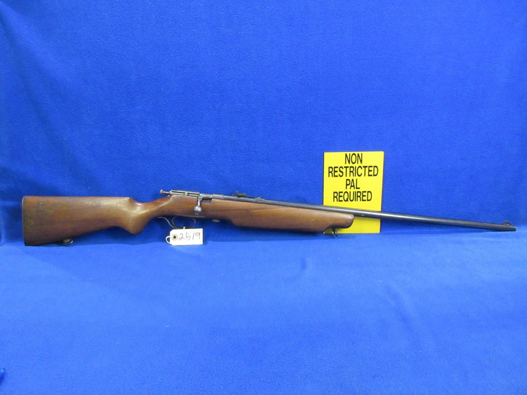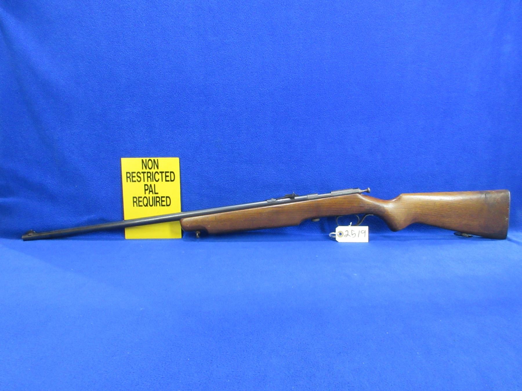 Non-Restricted - Cooey Model 78 in 22 Cal. - This is a single shot bolt action rifle, action appears to be in good to very good working order. Barrel is 27", rifling is good to very good, bluing is good, has both sights, stock is good with some drying cracks at the butt, length of pull is 13", metal butt plate good, comes with swivels. Ser # None