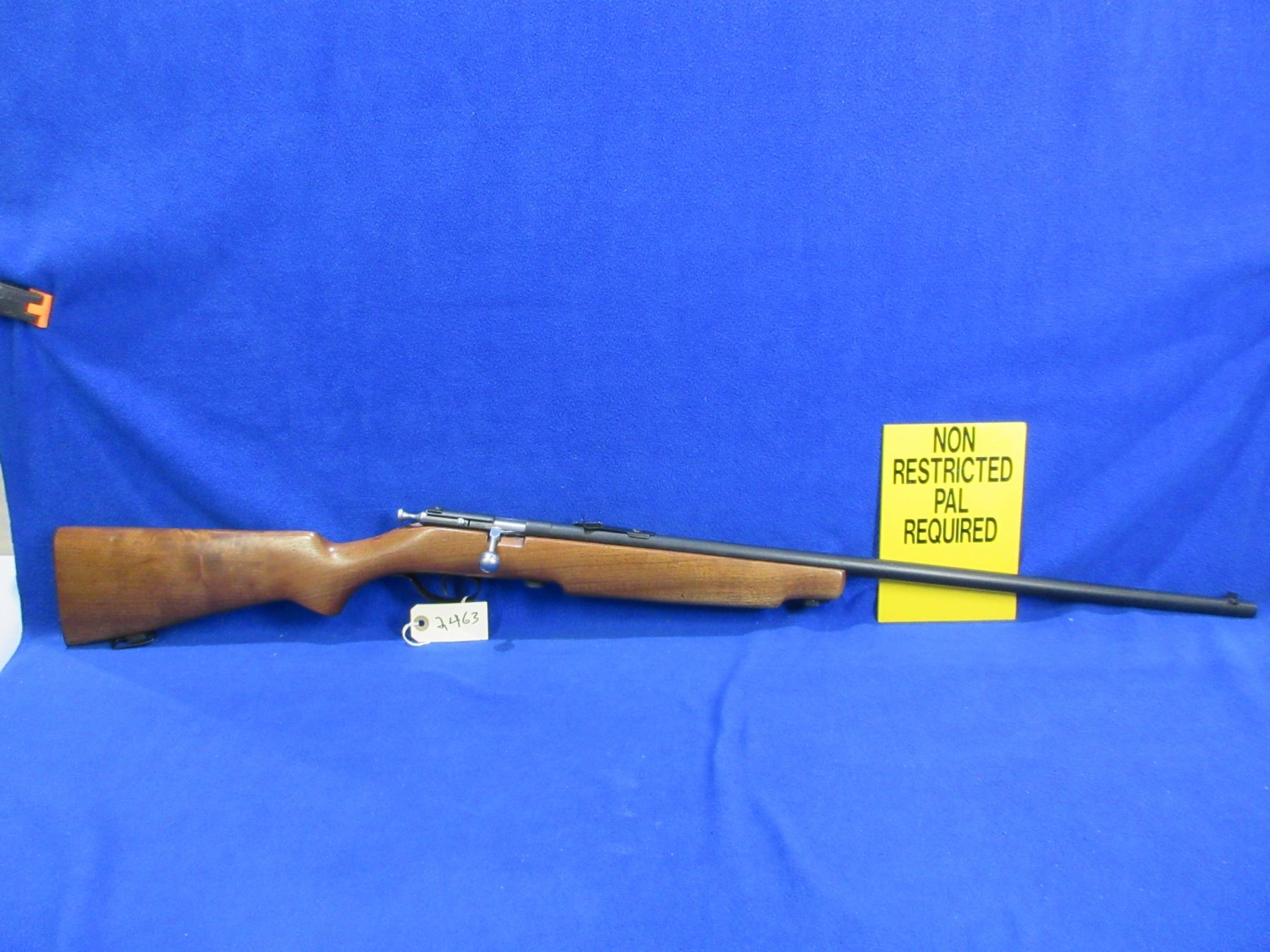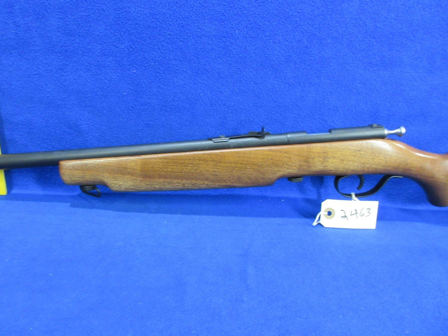 Non-Restricted - Cooey Model 82 in 22 LR - This is a single shot bolt action rifle, action appears to be in good to very good working order. Barrel is 27", rifling is good to very good, bluing refinished to matte black finish over top of some pitting, has both sights, stock has been refinished and is good to very good, metal butt plate good, comes with swivels. Ser # None