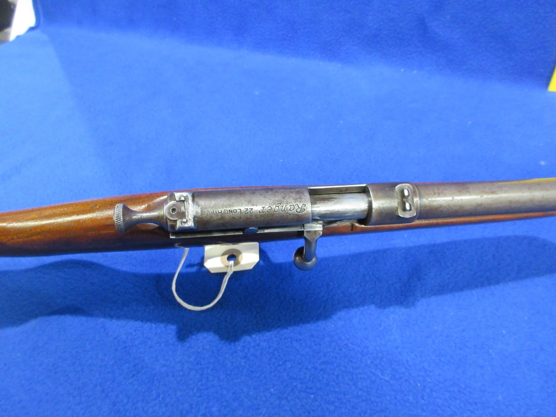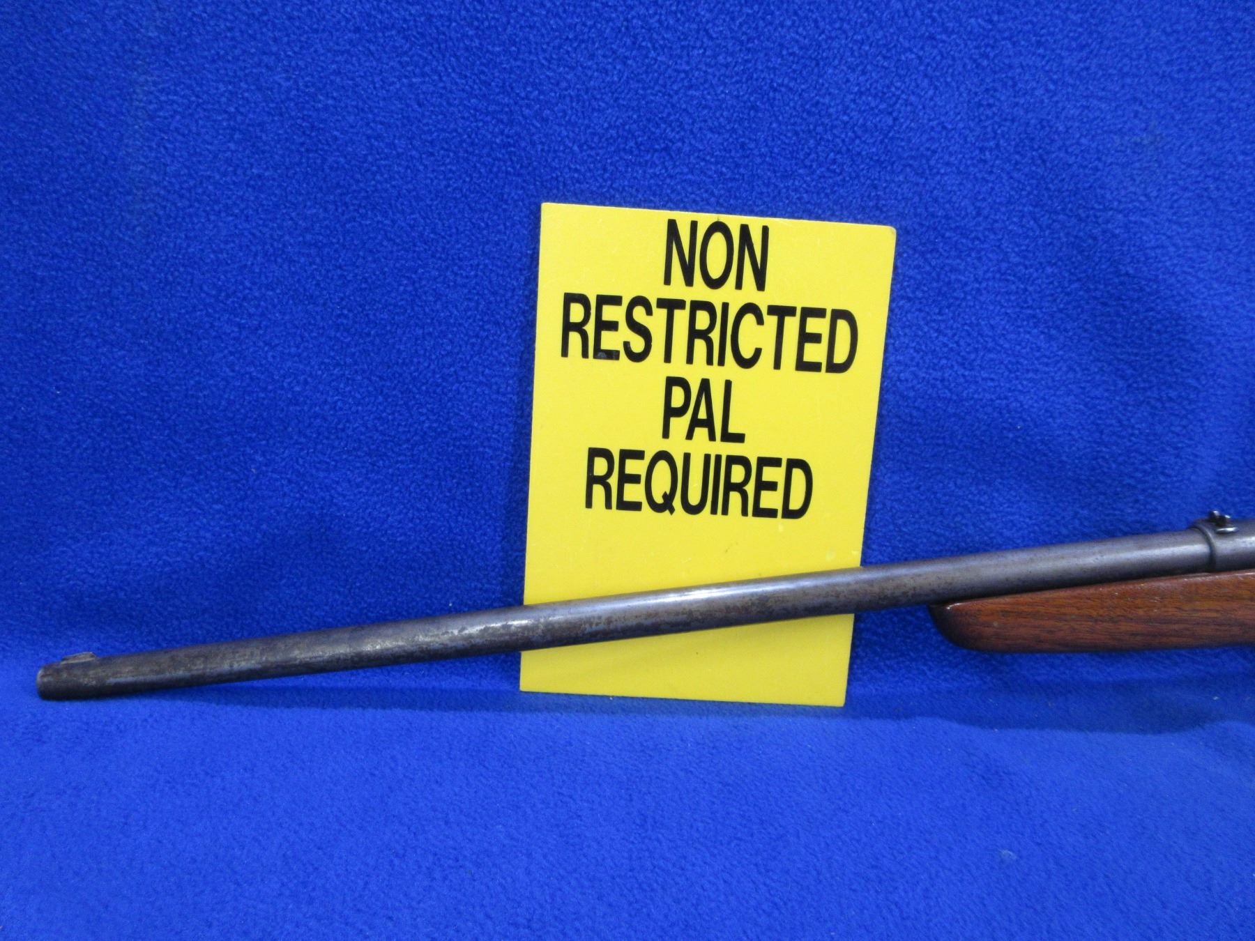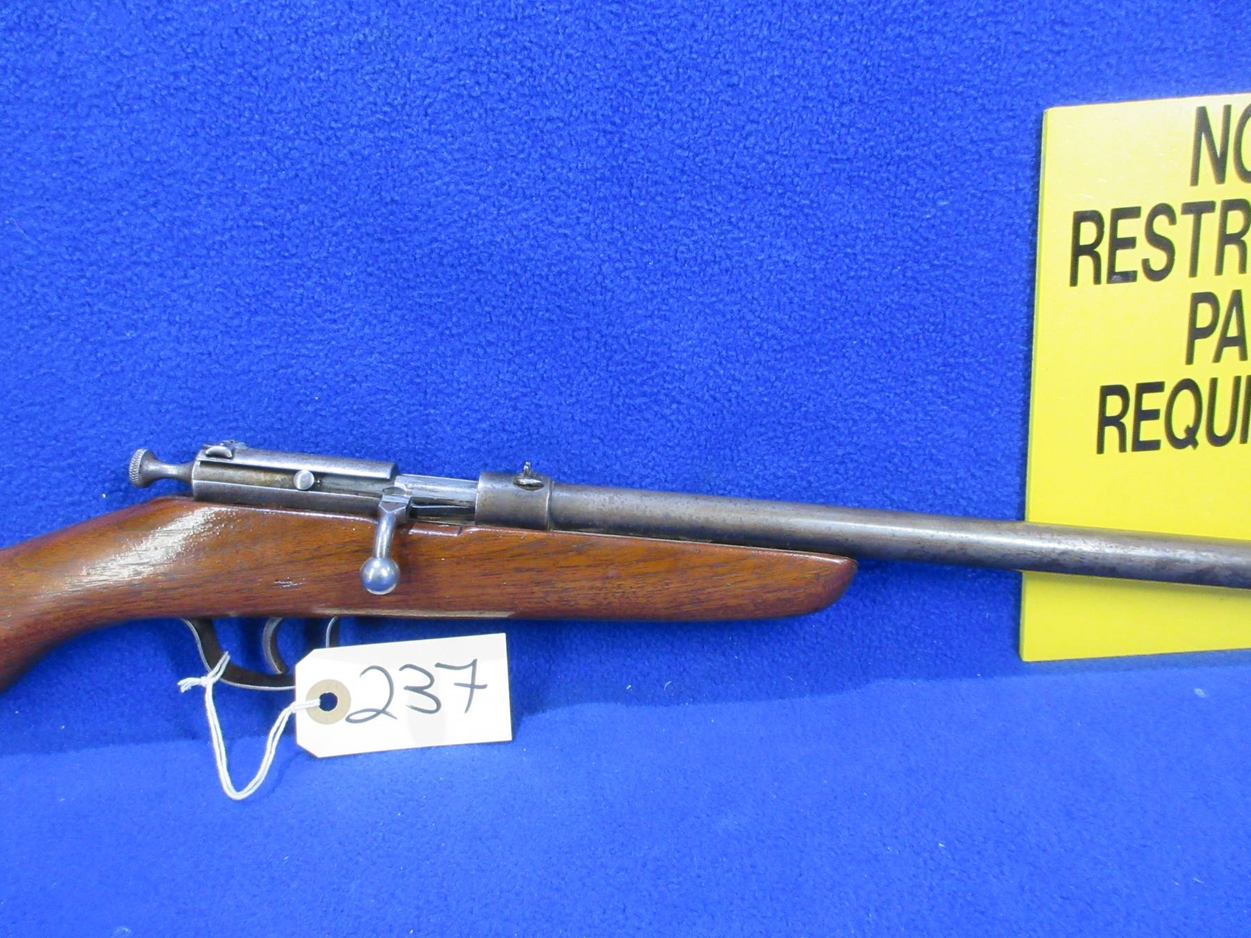 Non-Restricted - Cooey Ranger in 22 LR - This is a single shot bolt action rifle, action appears to be in good working order. Barrel is 18", rifling is good to very good, bluing is gone and has pitting, has both sights and rear flip up peep sight, stock is good with usage marks, length of pull is 13", metal butt plate good. Ser # None