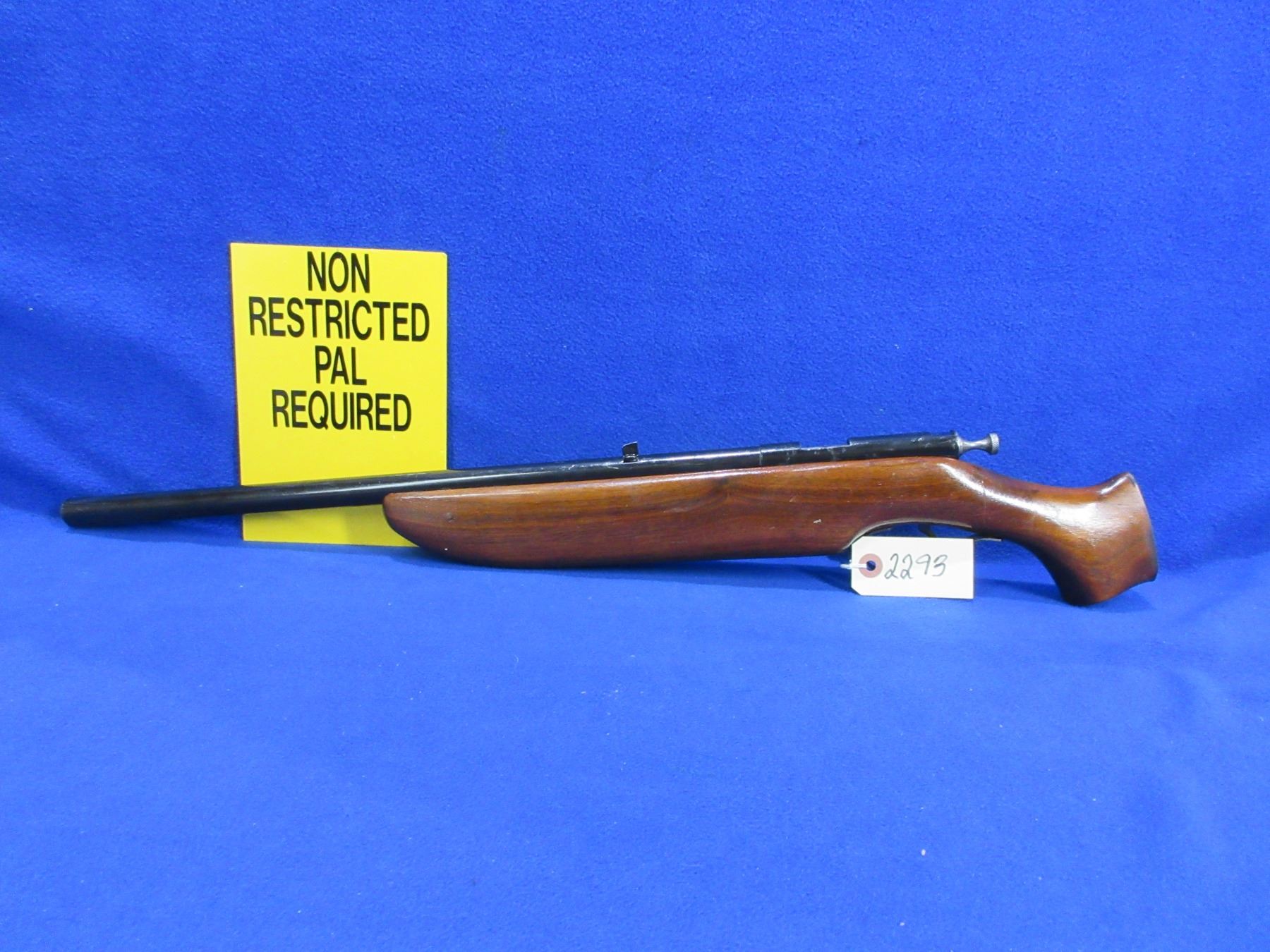 Non-Restricted - Cooey Sureshot Model 75 in 22 LR - This single shot bolt action rifle appears to be in working order. Barrel has been shortened to 18", rifling is good to very good, bluing has been painted black, rear sight has been replaced with a front sight, stock has been shortened to a pistol grip style, total length of gun is 26". Ser # None
