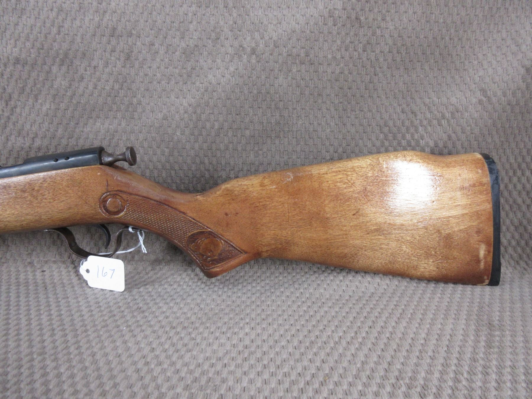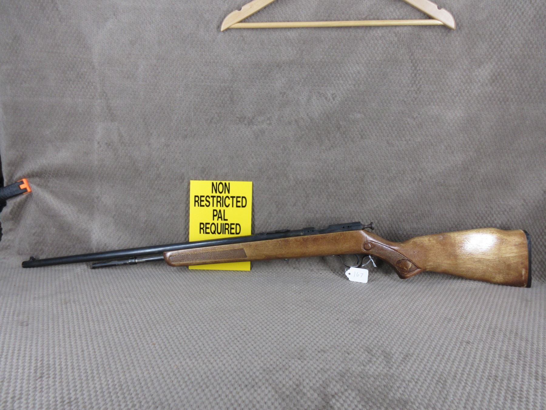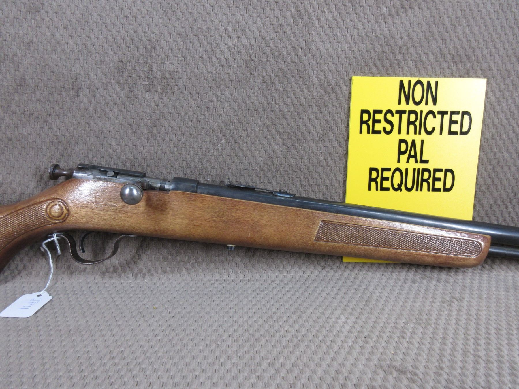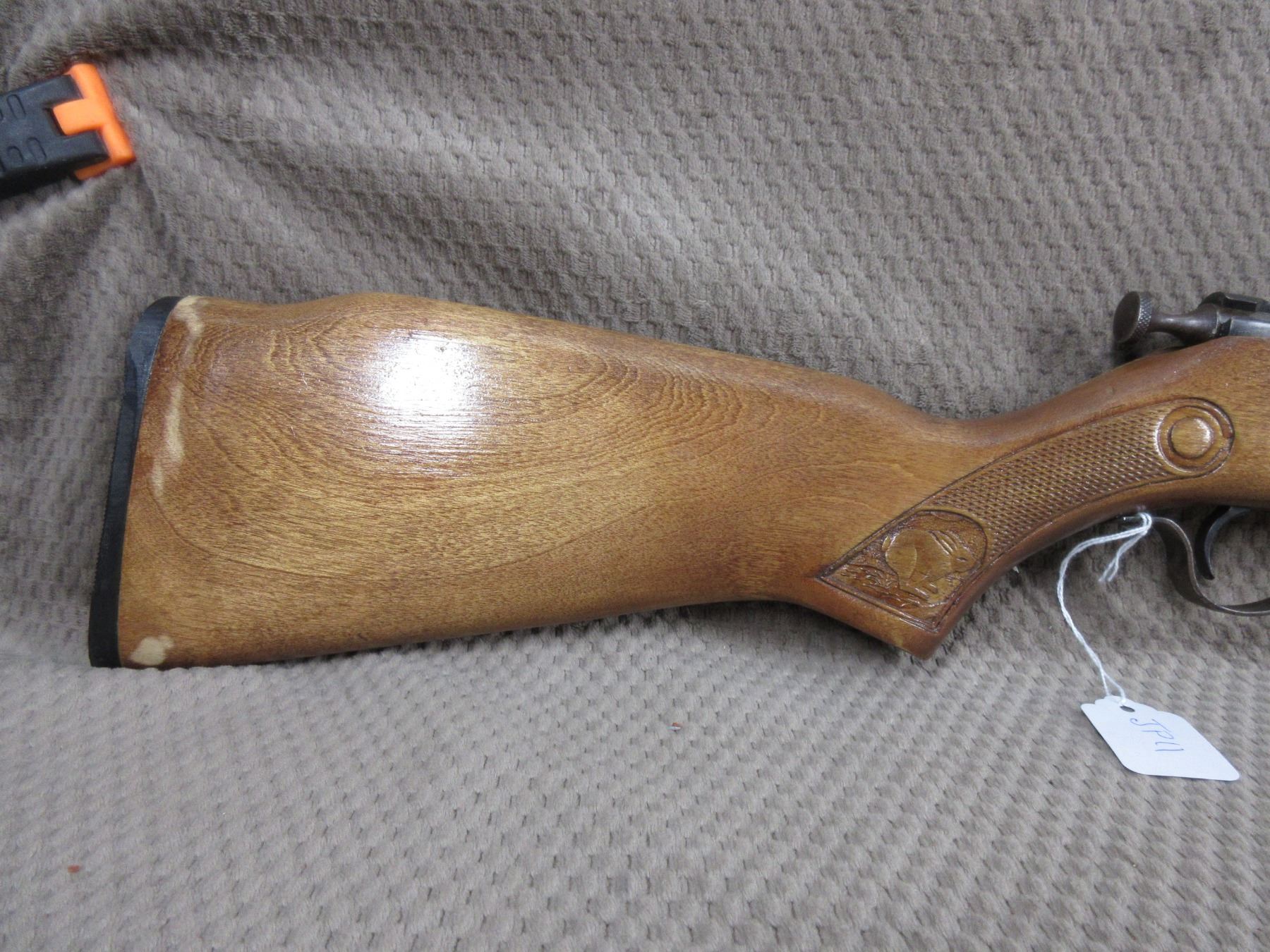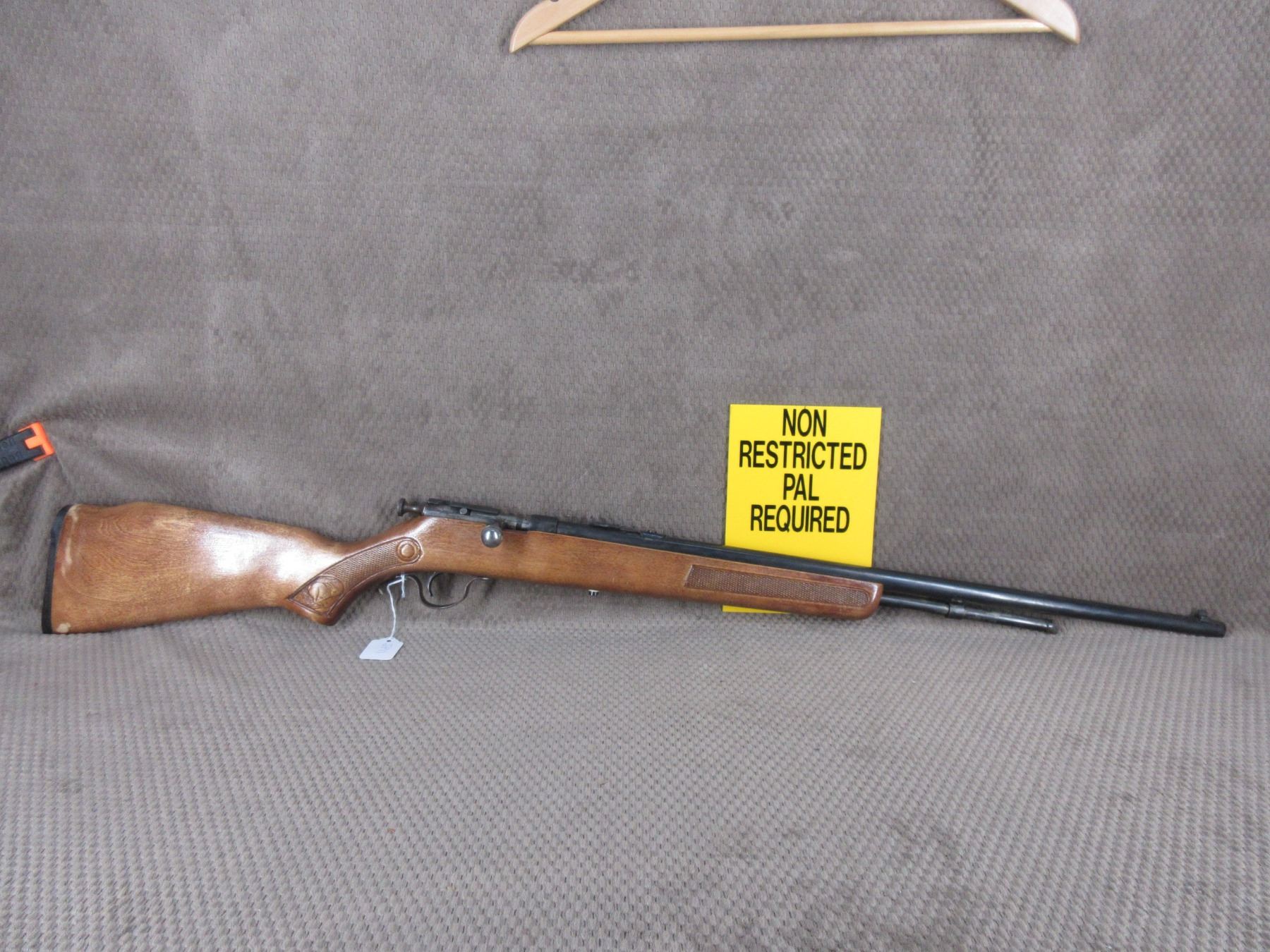 Non-Restricted - Cooey by Winchester Model 600 in 22 LR - This bolt action tube magazine rifle appears to be in good to very good working order. Barrel is 24", rifling is good to very good, bluing is good may have been reblued, has both sights, stock has crack at back of receiver and appears refinished, good butt plate not original. Ser # None