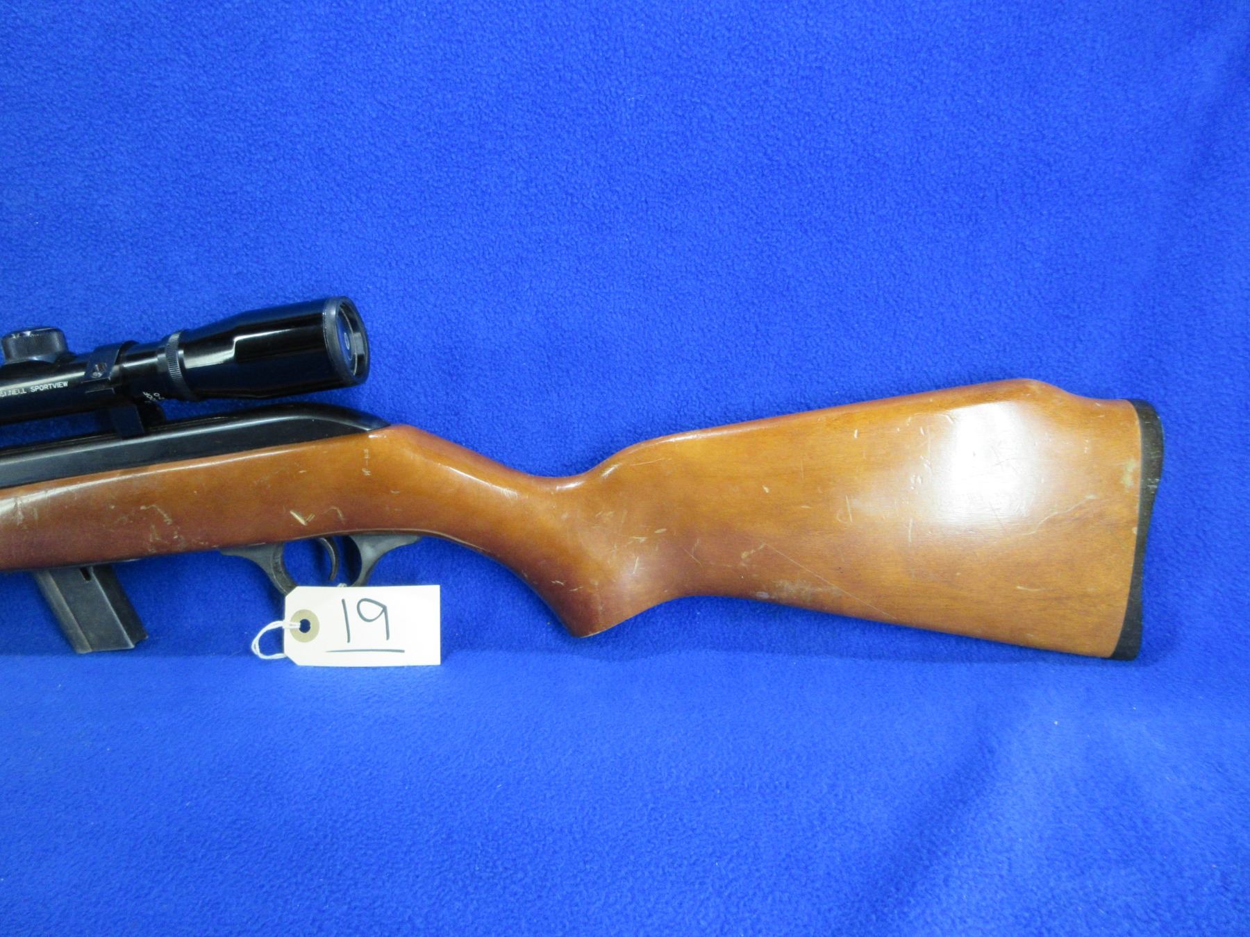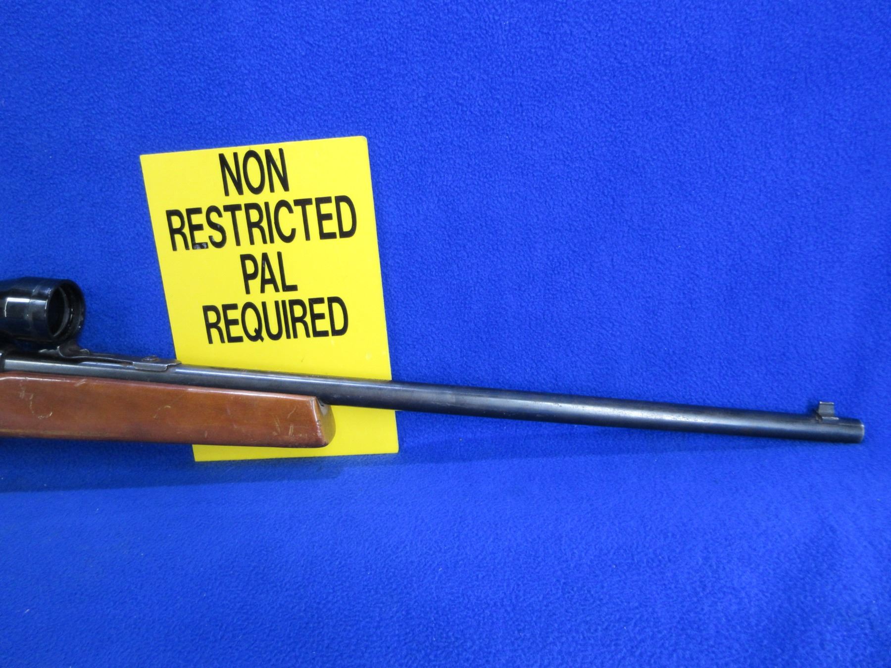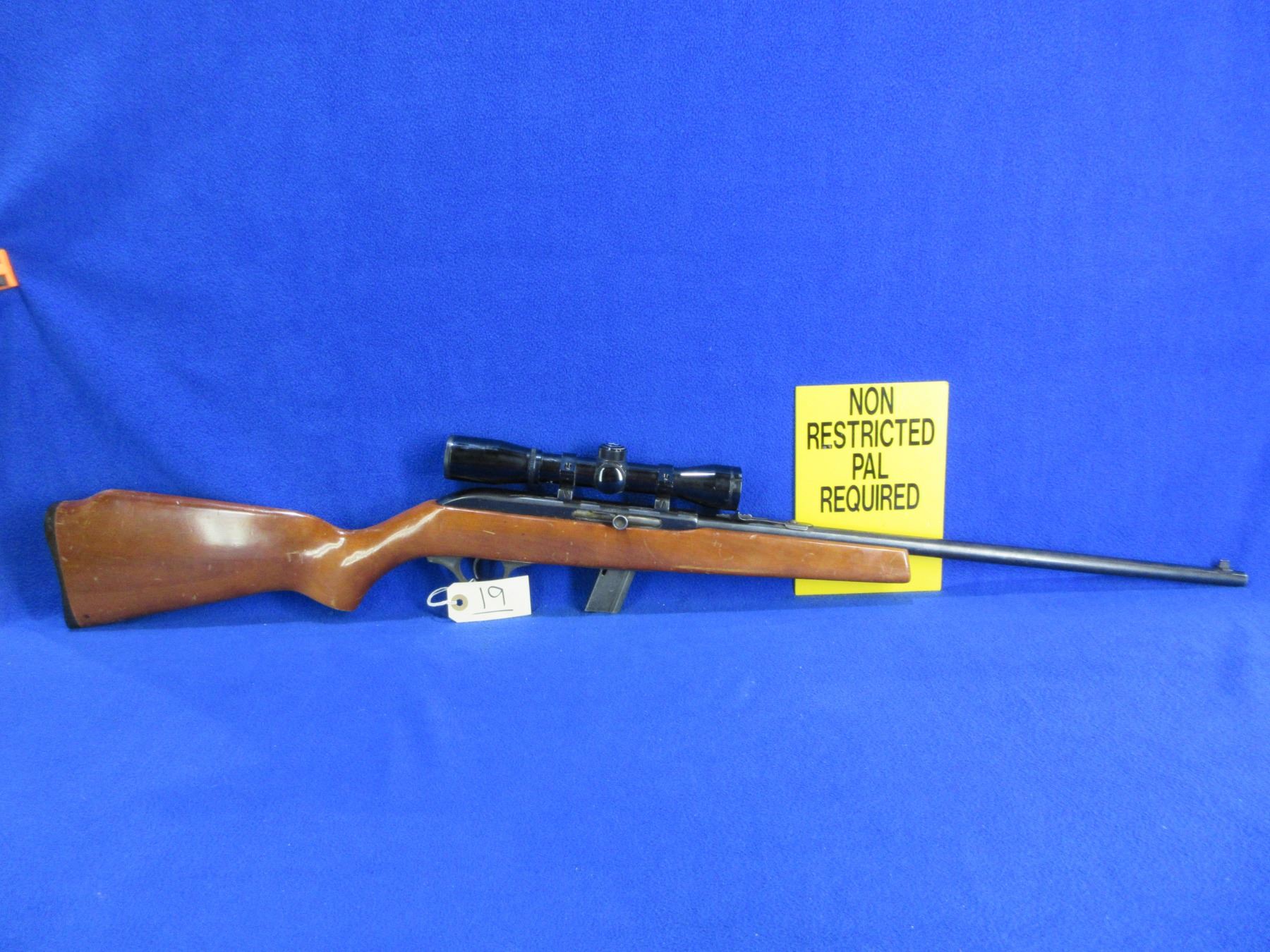Non-Restricted - Savage Model 64 in 22 LR - This is a semi-auto rifle with removable magazine and action appears to be in good to very good working order. Barrel is 20 1/4", rifling is good to very good, bluing is good with some light pitting, has both sights and Bushnell Sportview 4x32 Scope - appears clear - duplex reticle, stock is good with many usage marks, butt plate good. Ser # None