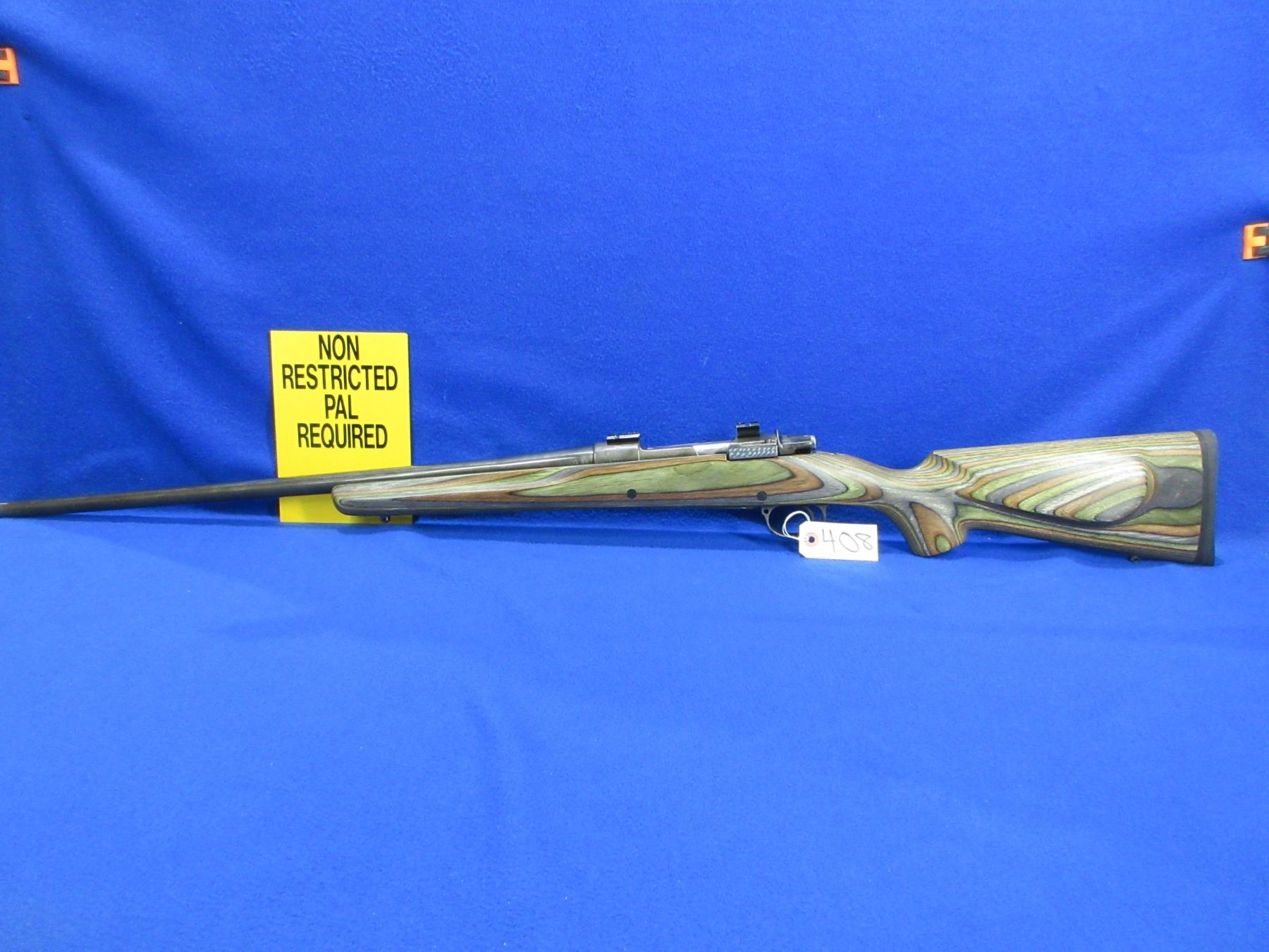 Non-Restricted - Customized Mauser M98 in 35 Whelen - This bolt action rifle with floor plate magazine appears to be in good to very good working order. Barrel is 24", rifling is very good, bluing is good as it is grey in some spots, has no sights but has Weaver style bases, Boyd laminated stock is good to very good, rubber recoil pad good, has a butter knife bolt handle, comes with swivel studs. Ser # 913