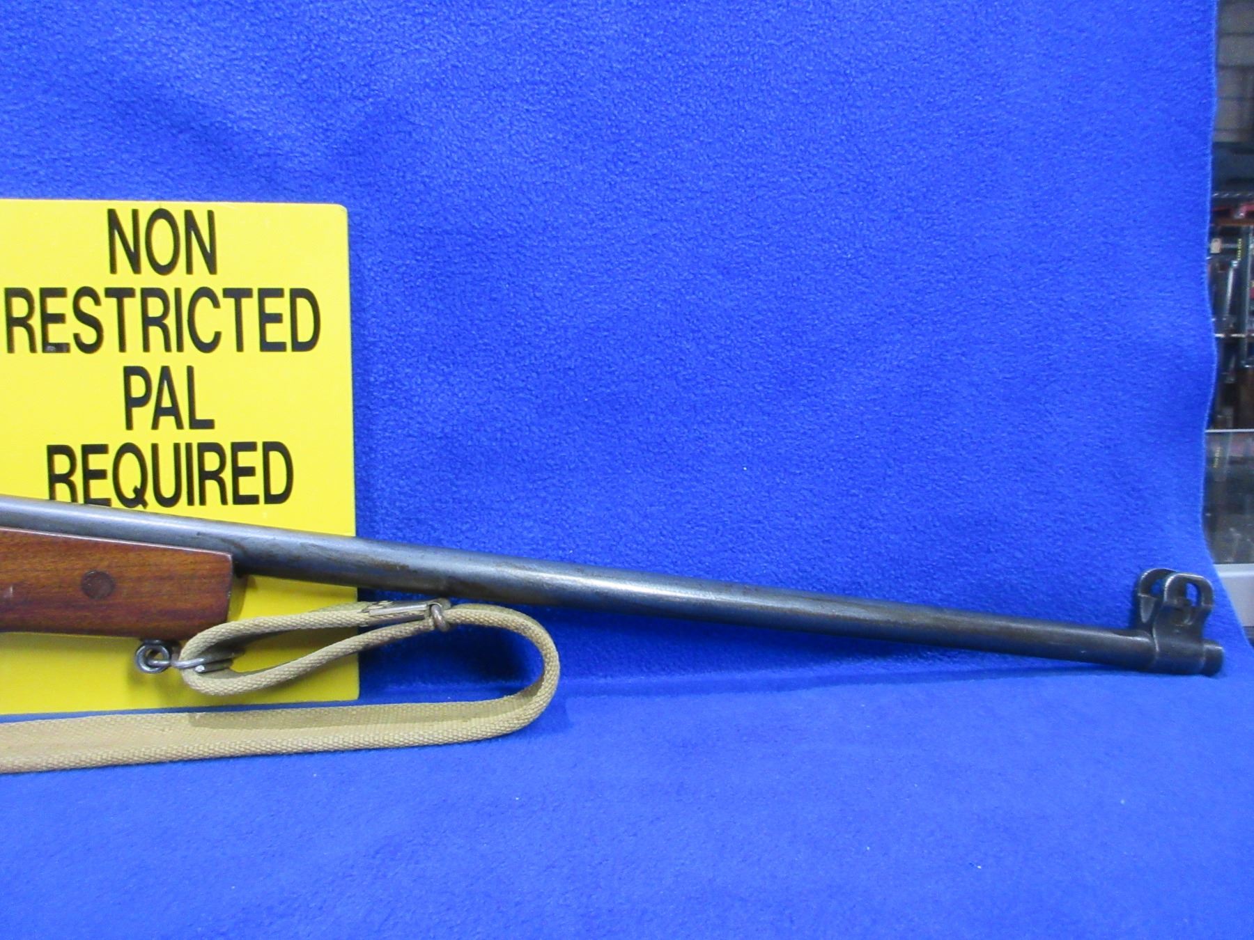 Non-Restricted - Enfield Model P14 in 303 British - This is a bolt action rifle with floor plate magazine, action appears to be in good to very good working order. Barrel is 26", rifling is fair to good, bluing is mostly grey, has both sights, stock is good with usage marks and a chip on the left side tip of the forearm, length of pull is 13 1/2", metal butt plate good, comes with swivels and a strap. Ser # 183328