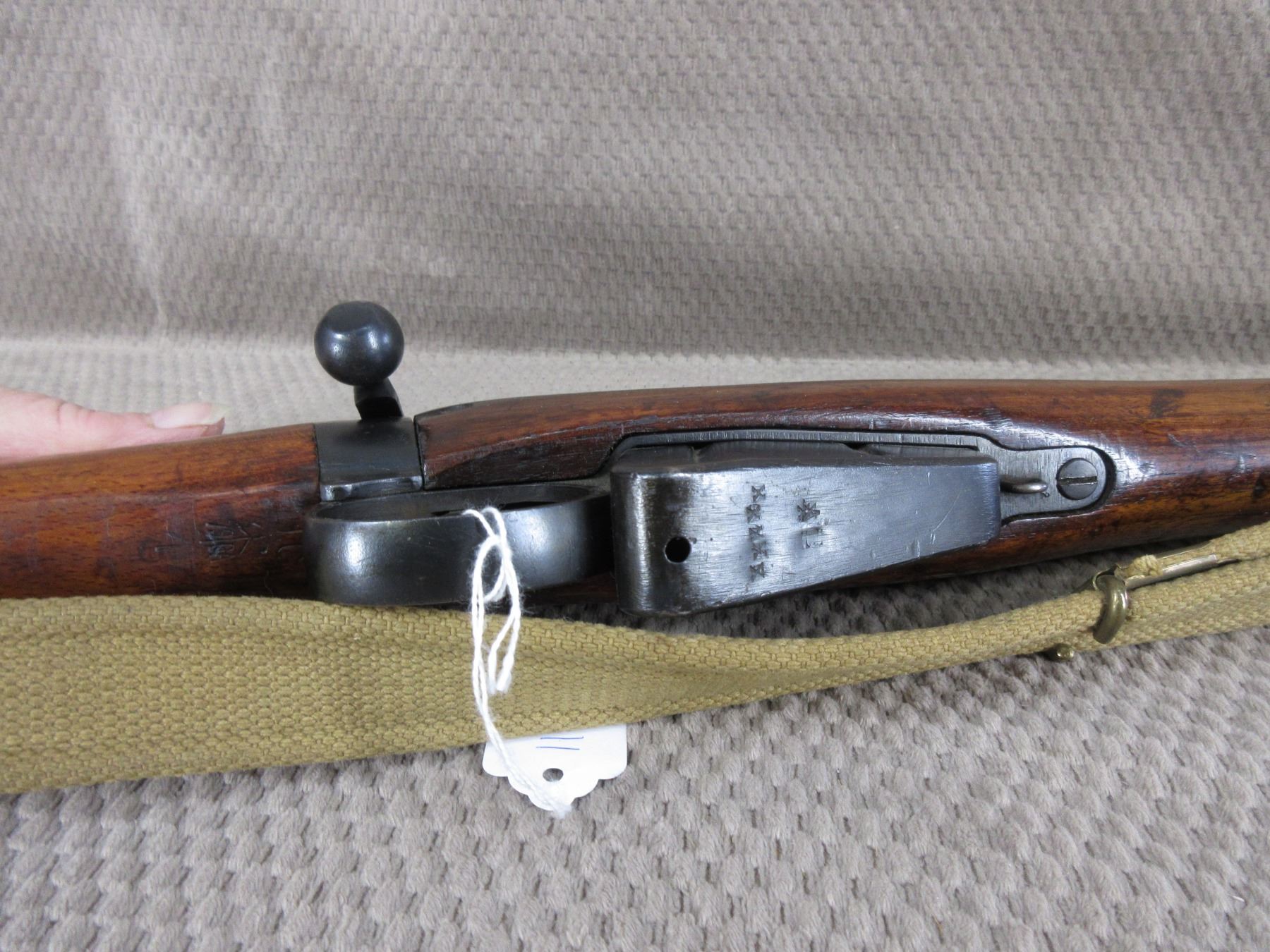Non-Restricted - Enfield No. 9 MK I in 22 Rim Fire - This single shot bolt action training rifle appears to be in good to very good working order. Barrel 25 1/4", bluing is good to very good, rifling is good to very good, has both sights, full wood is good to very good with usage marks, brass butt plate, swivels & strap, and has P-H' 59 stamped on side by model # stamping, bolt is has matching serial number, Ser # A2439