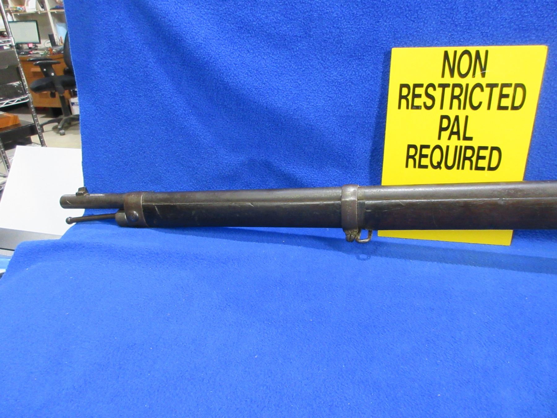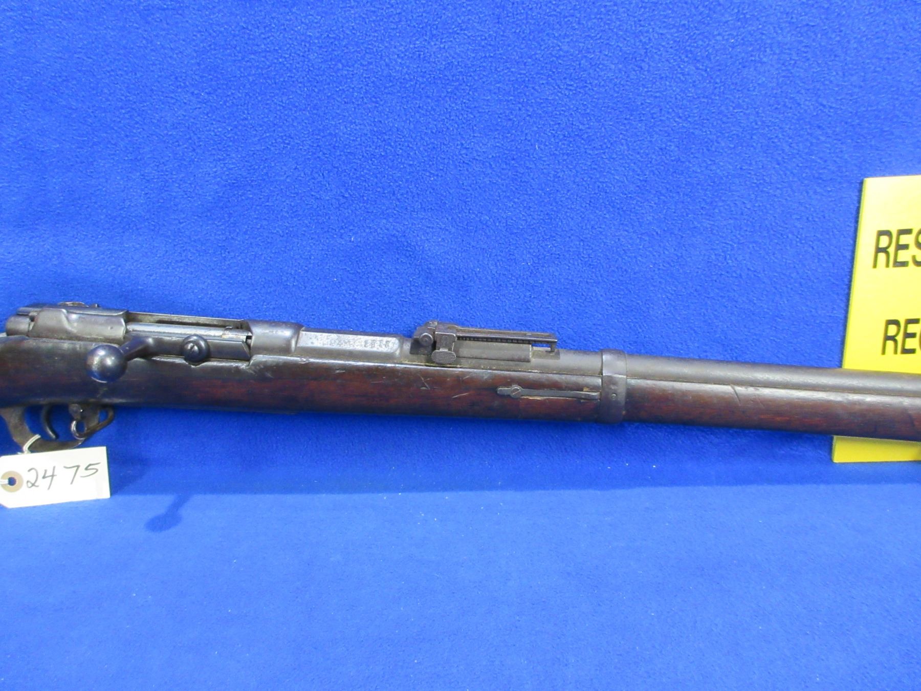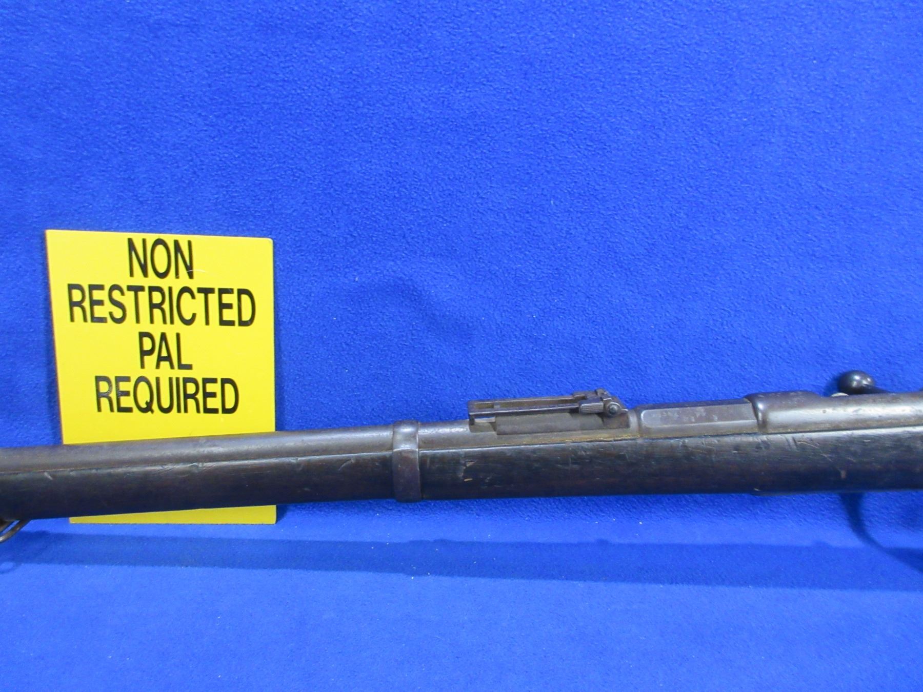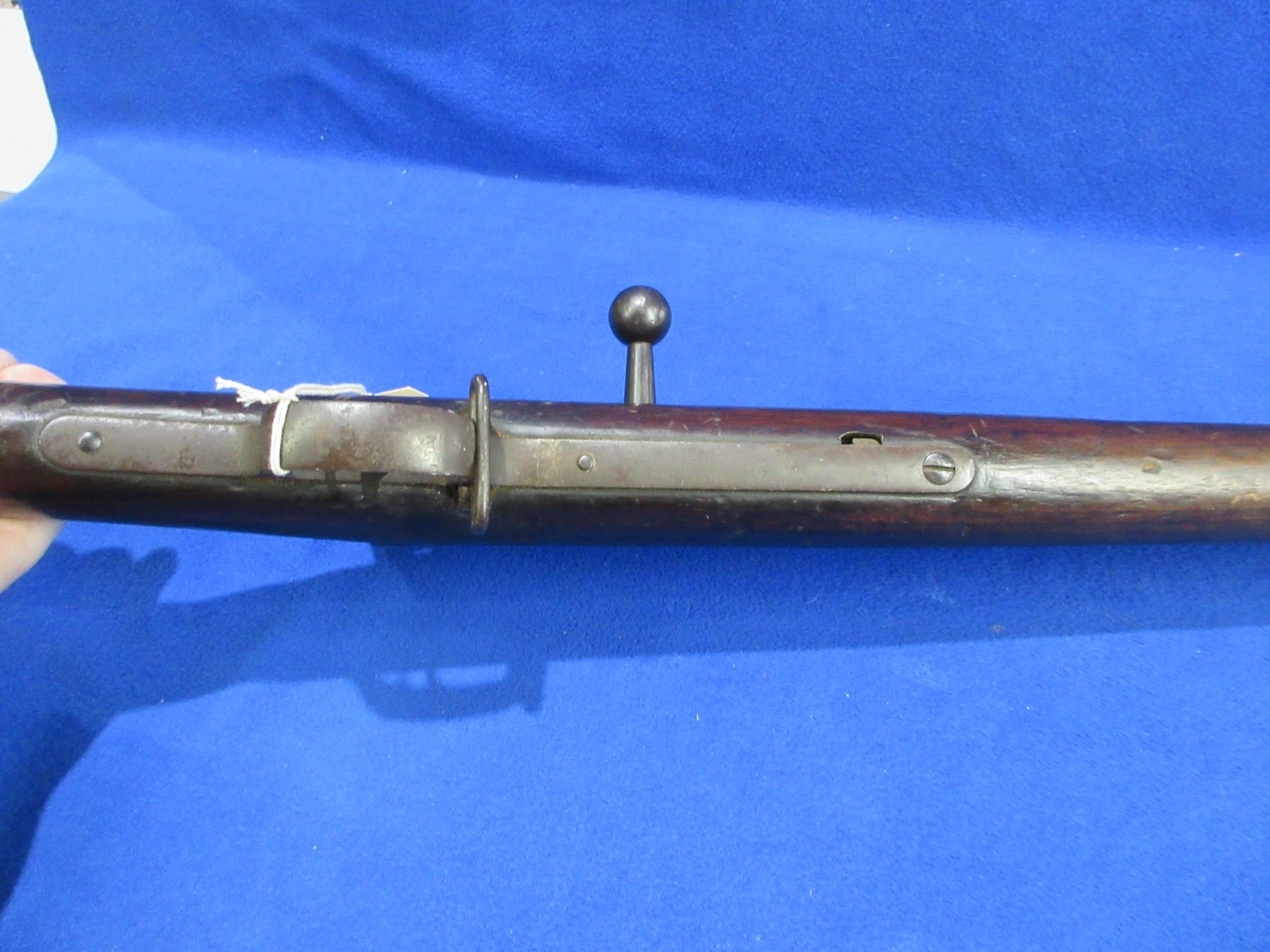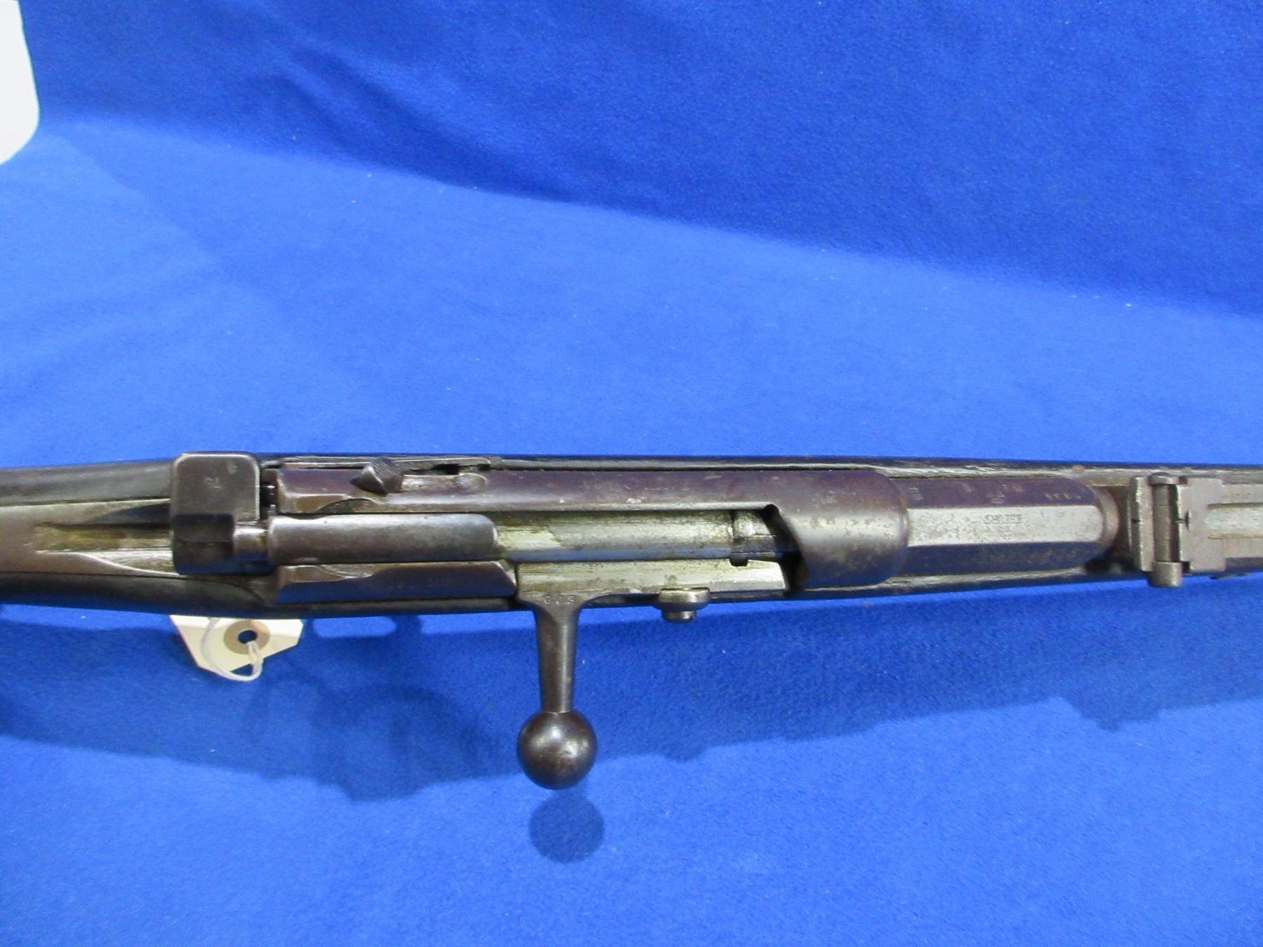 Non-Restricted - Erfurt 71/84 believed to be in 11x60mm Black Powder - This is a bolt action rifle with internal magazine, action appears to be in good working order. Barrel is 31 1/2", rifling is poor to fair and very dark, bluing is turning brown and pitted, has both sights, stock is good but oil soaked, metal butt plate good, comes with front swivel. Ser #9334
