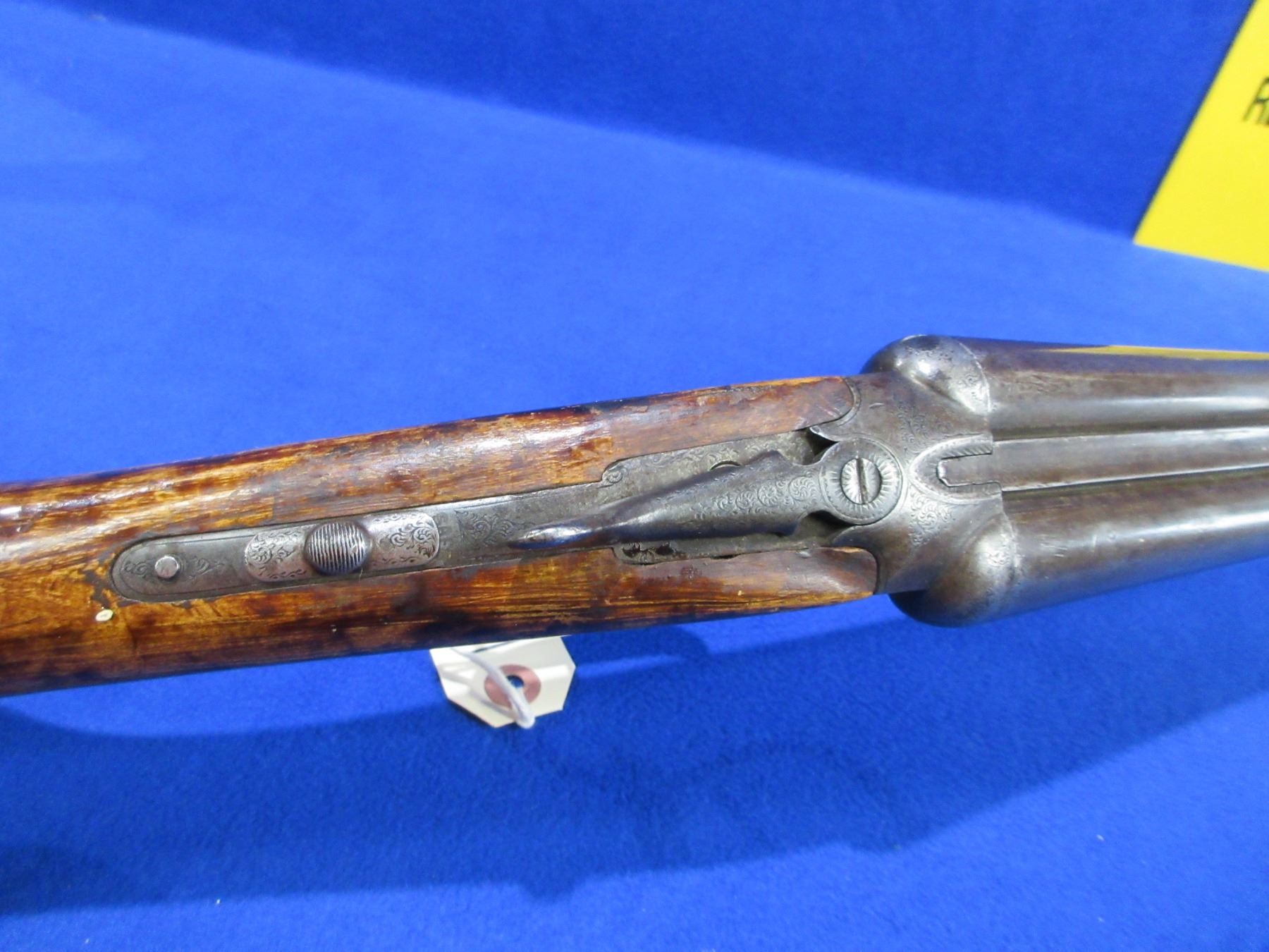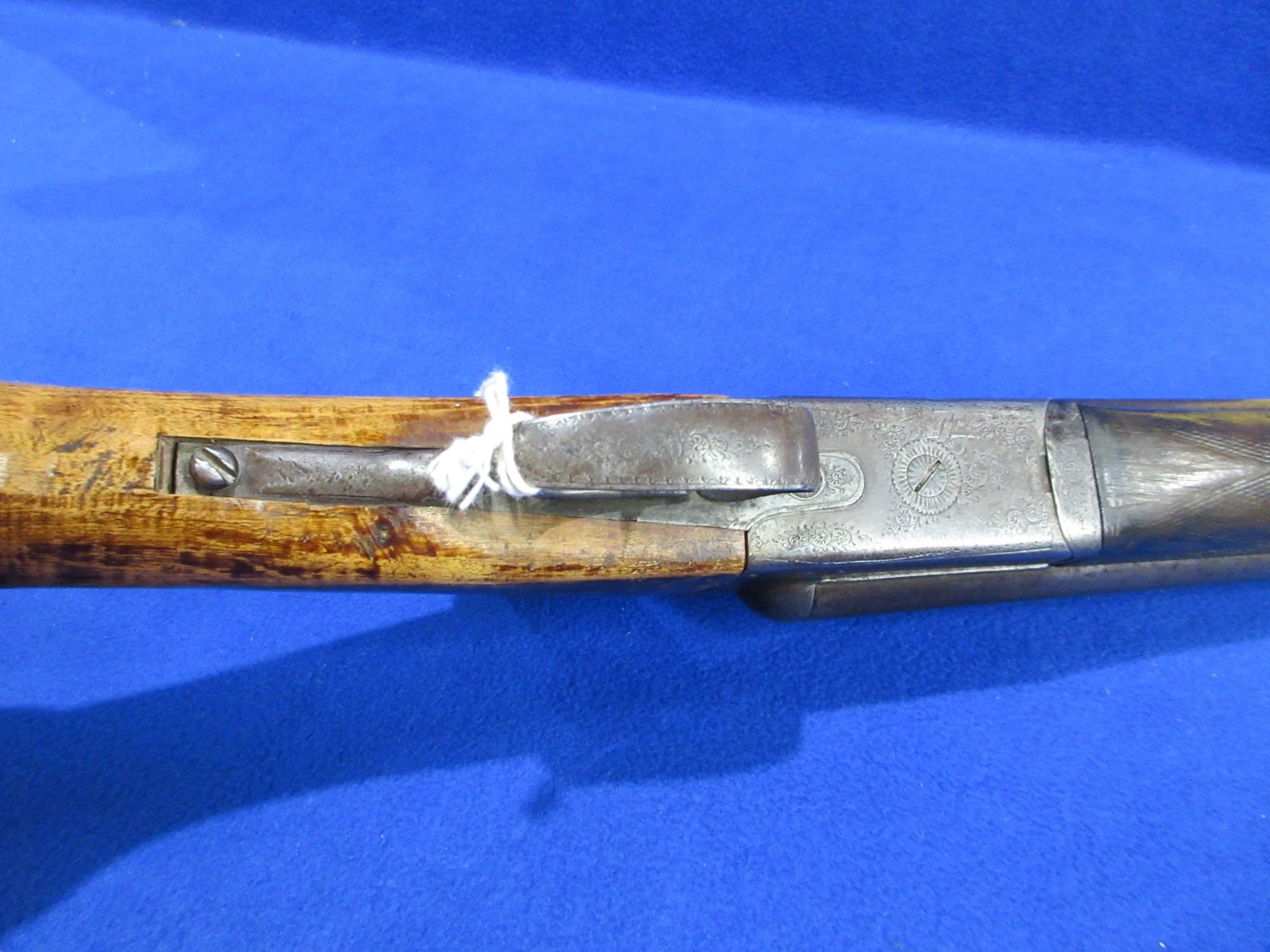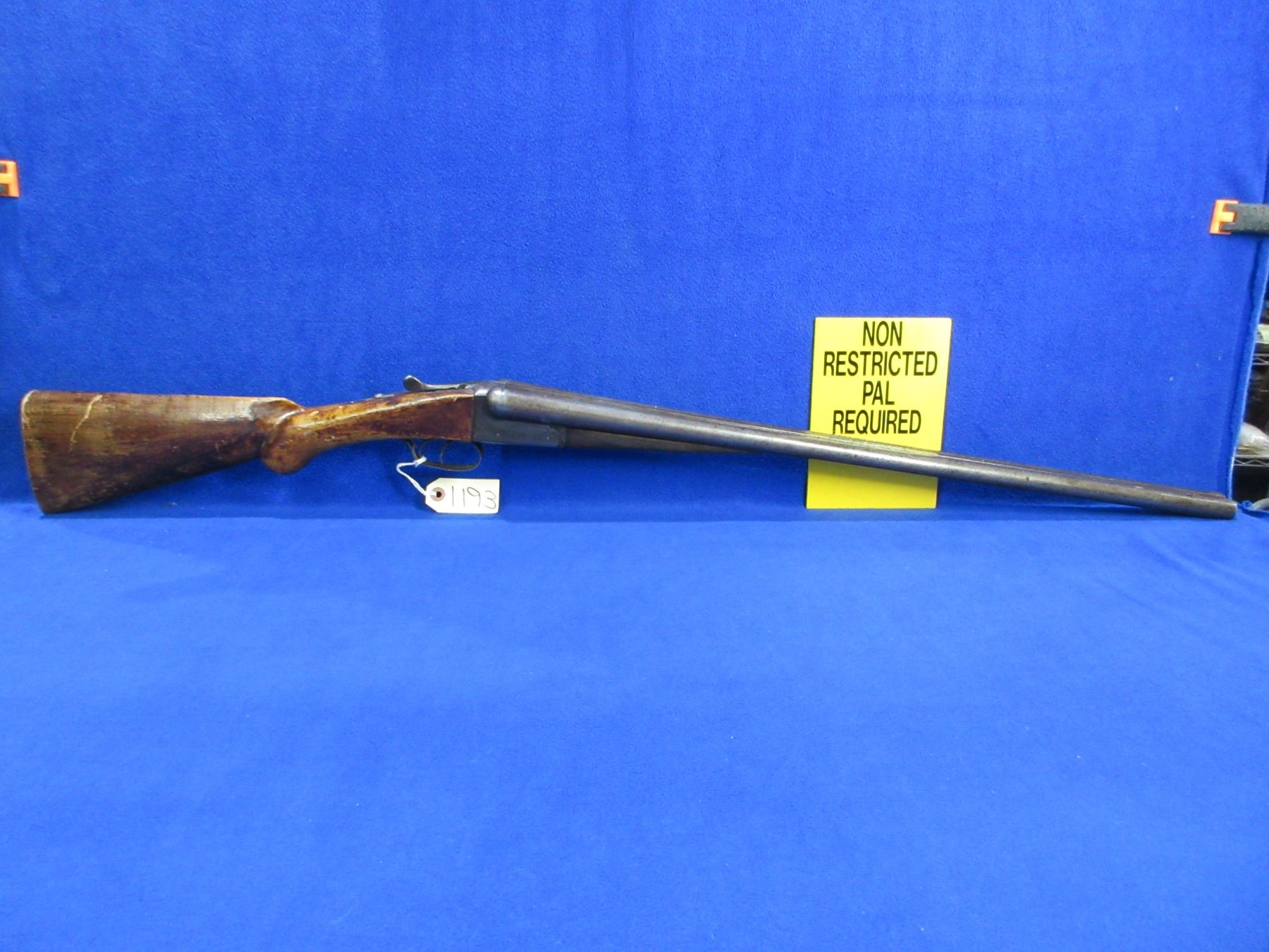 Non-Restricted - G.E. Lewis in 12 Ga. 2 1/2" - This tip up SXS shotgun appears to be in non working order as the action is loose and the action release lever spring is not working. Barrels are 28", bores are fair to good, bluing is mostly gone, left barrel is bulged at muzzle, has bead front sight, stock is good for age with finish flaking and usage marks, forearm has a chip in the front and is missing the cap. Ser # 10757