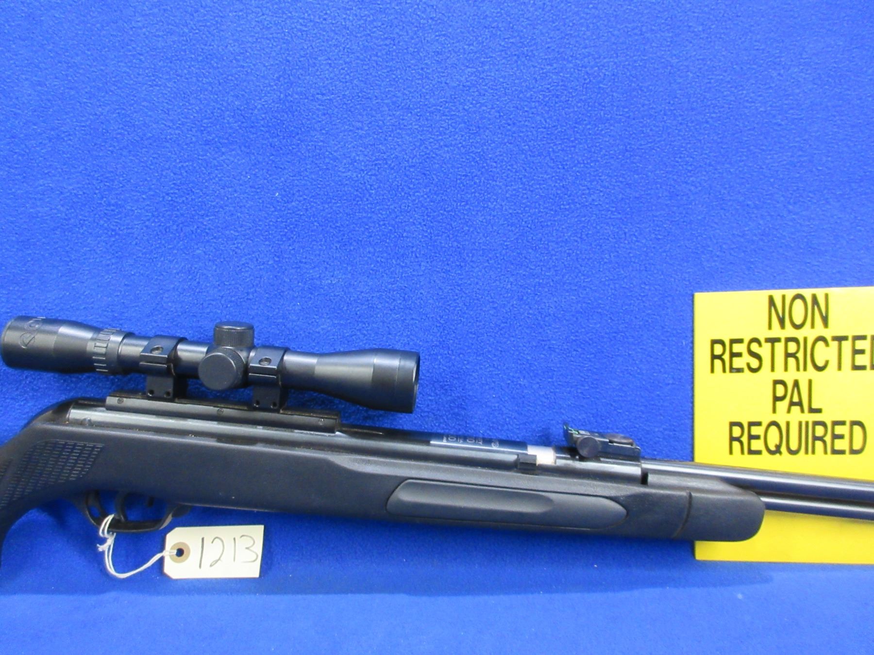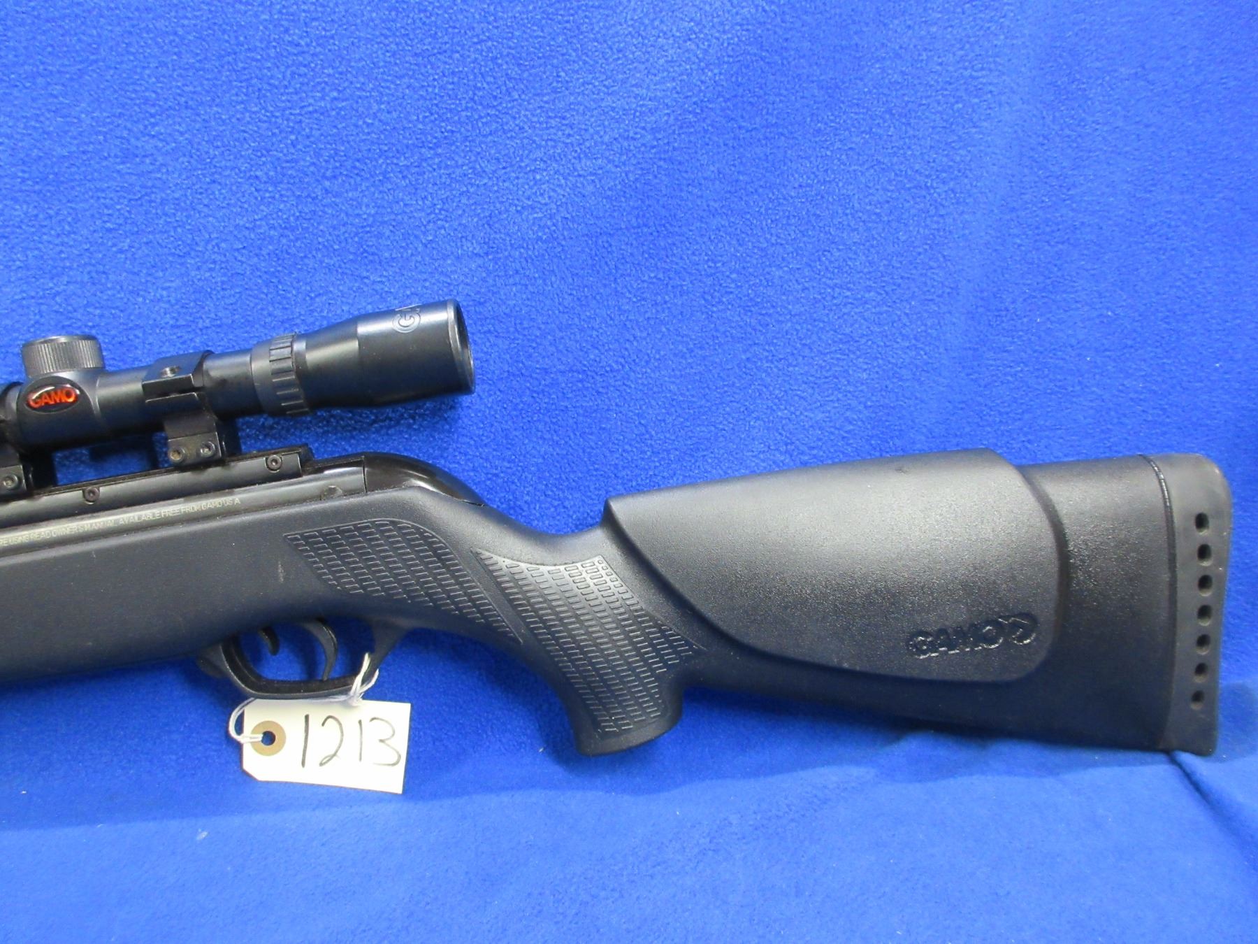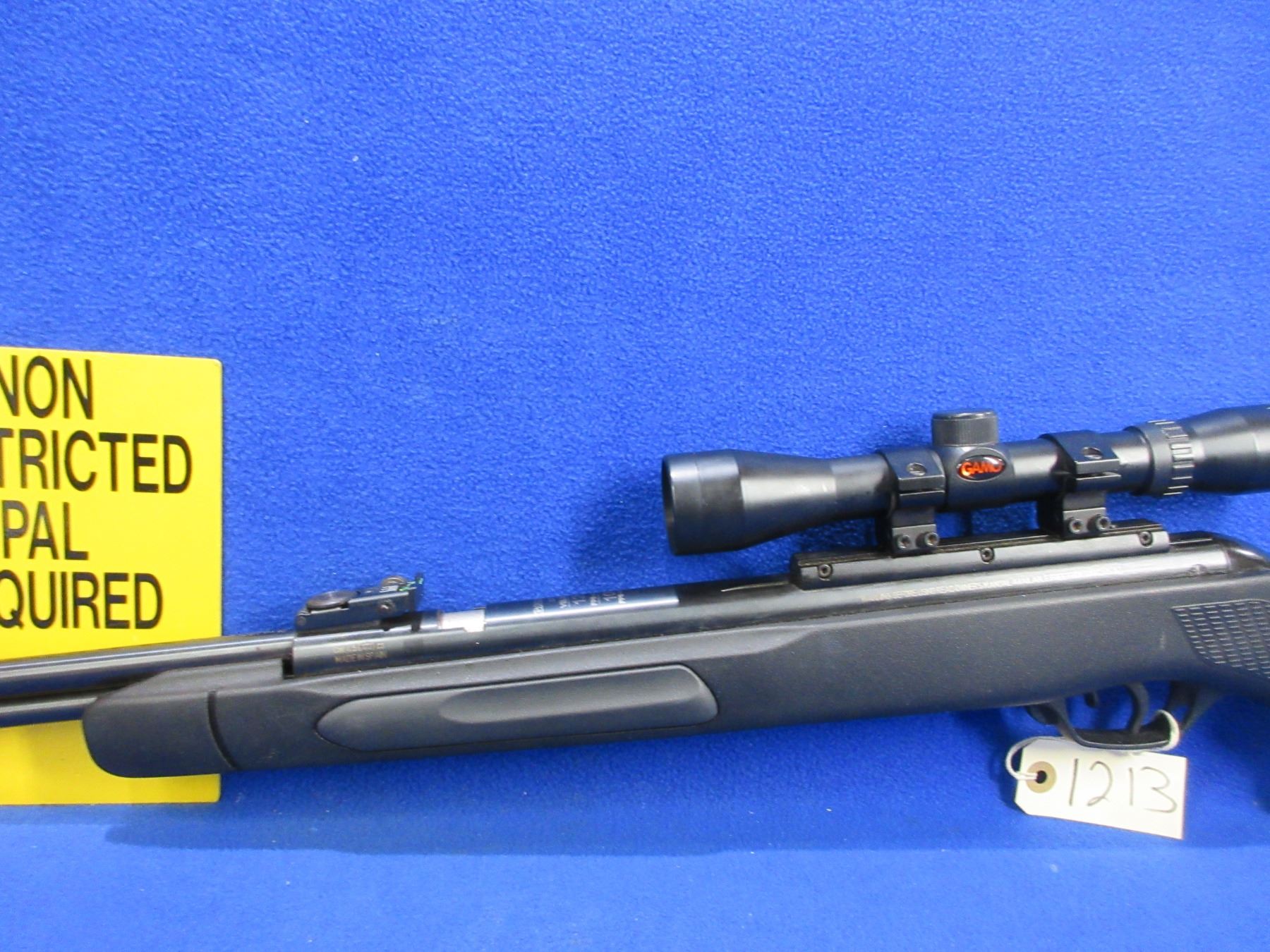 Non-Restricted - Model Air Rifle in 177 Cal. - This is a single shot air rifle with under lever, action appears to be in good to very good working order. Barrel is 16 1/2", rifling is good to very good, bluing is good to very good, has both fiber optic sights and Gamo scope - appears clear - duplex reticle, synthetic stock is good to very good, length of pull is 14", rubber recoil pad good. Ser # O4-1C-832879-10