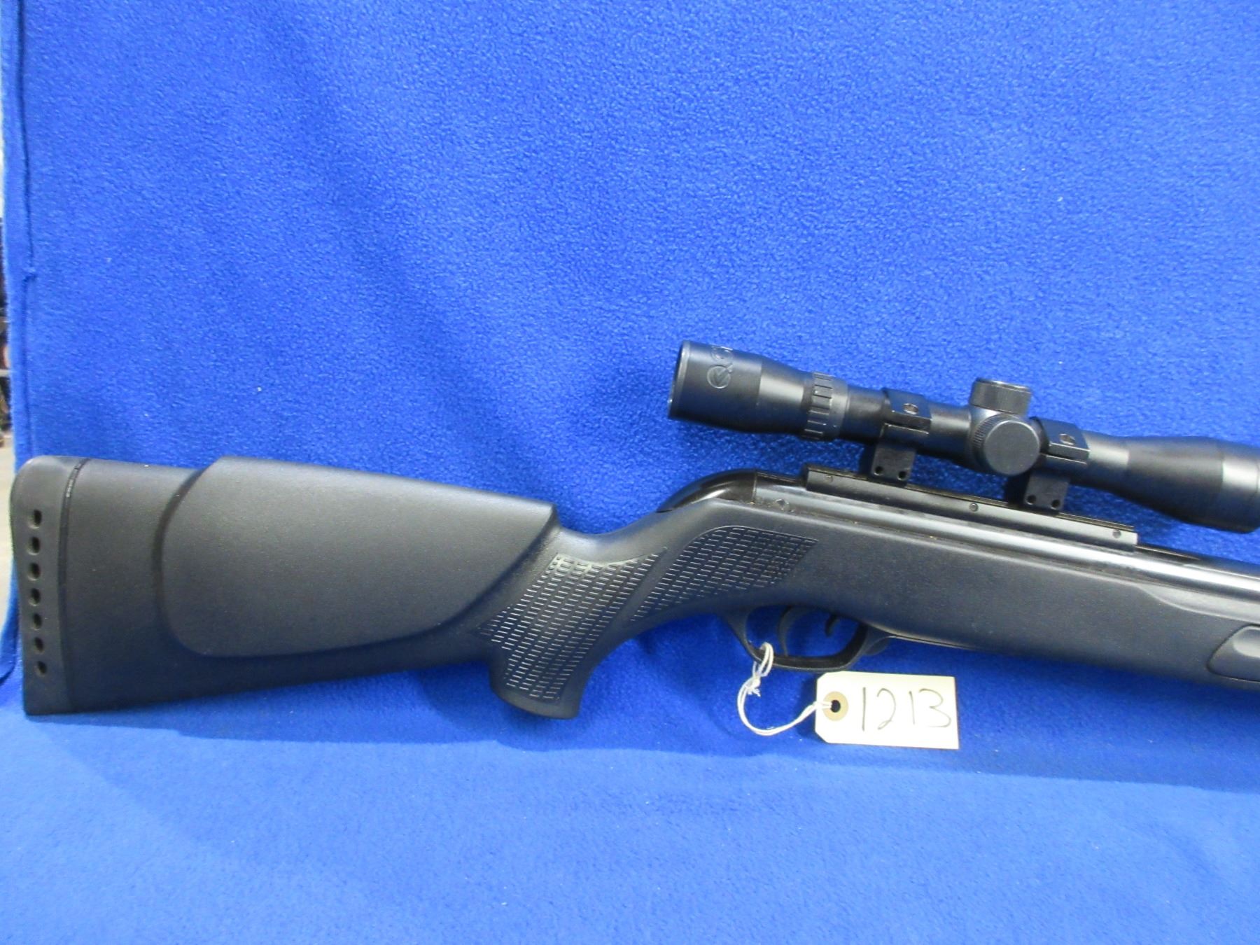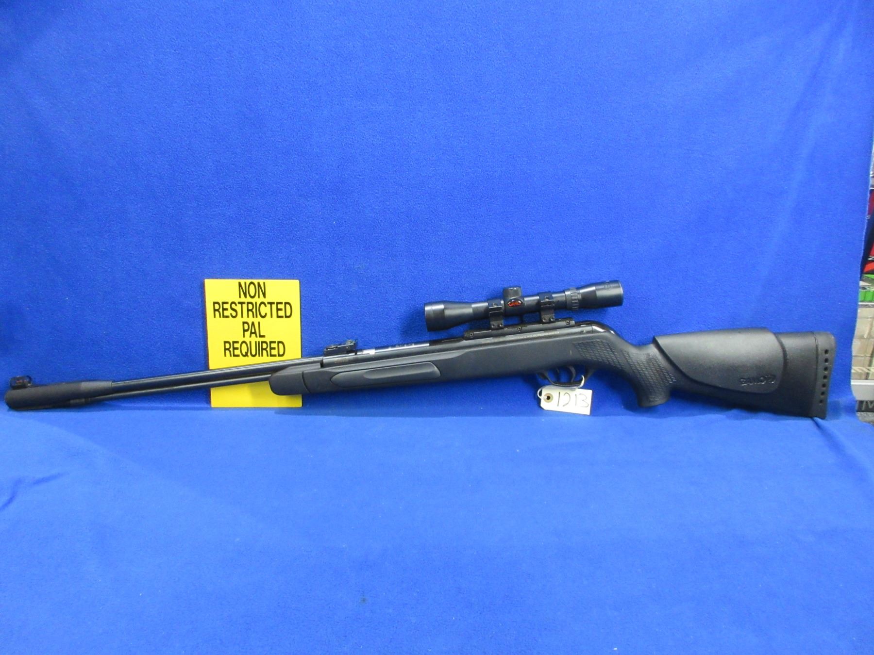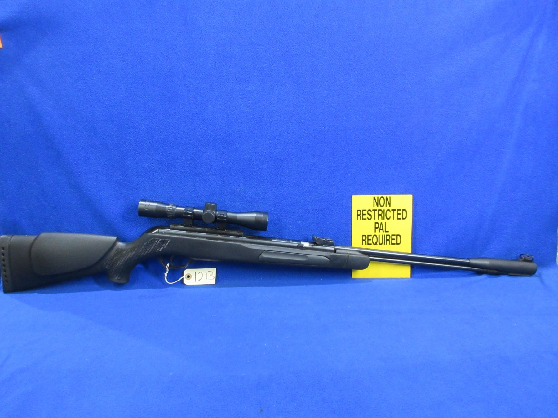 Non-Restricted - Model Air Rifle in 177 Cal. - This is a single shot air rifle with under lever, action appears to be in good to very good working order. Barrel is 16 1/2", rifling is good to very good, bluing is good to very good, has both fiber optic sights and Gamo scope - appears clear - duplex reticle, synthetic stock is good to very good, length of pull is 14", rubber recoil pad good. Ser # O4-1C-832879-10
