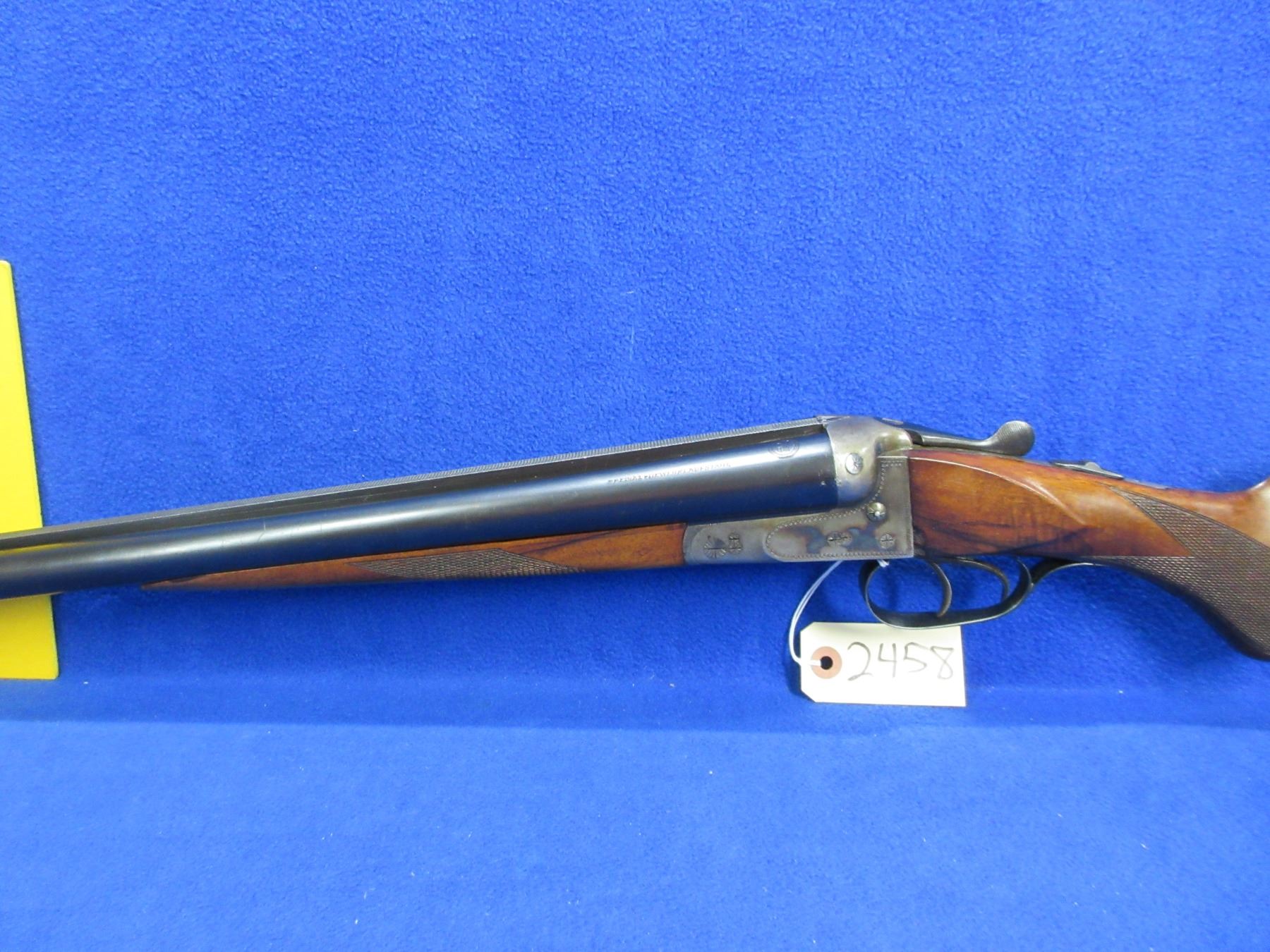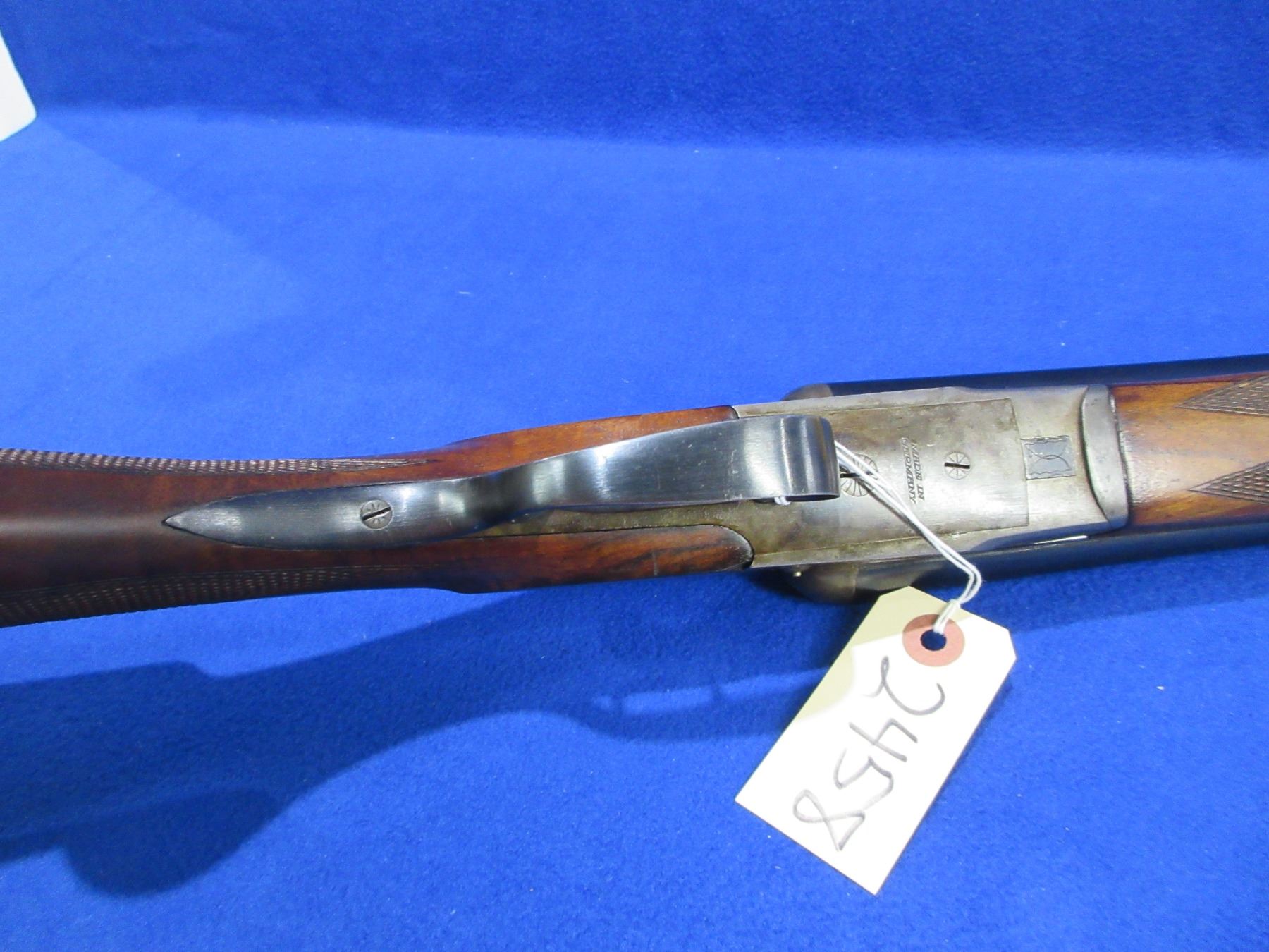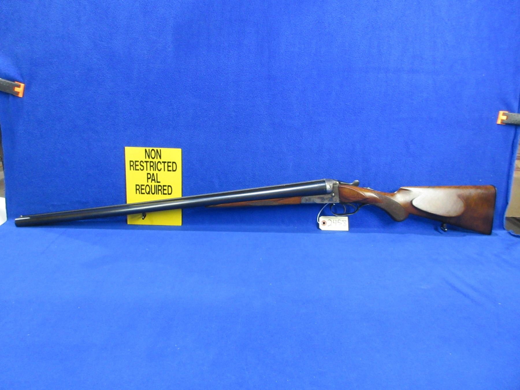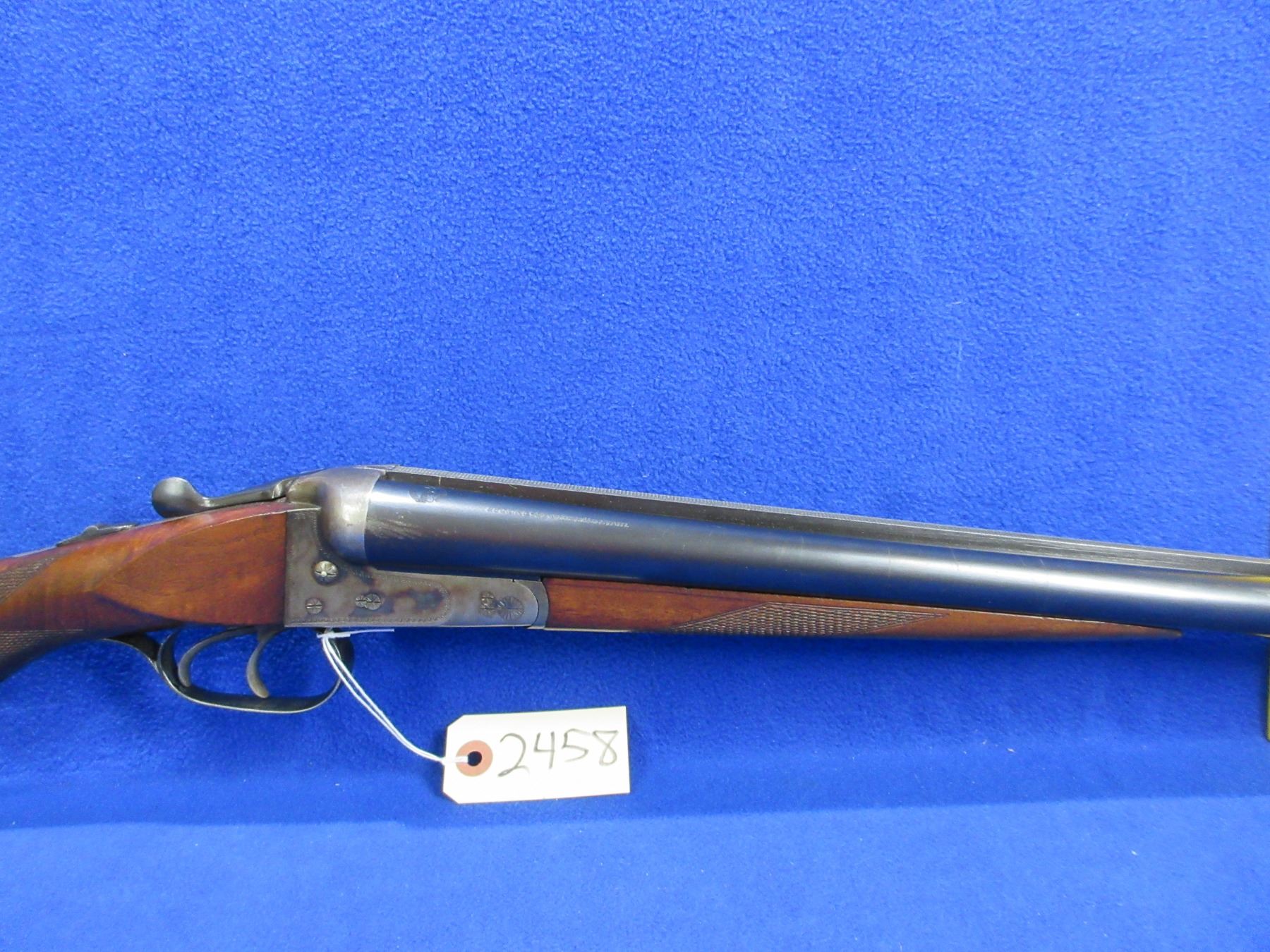 Non-Restricted - Geco Sauer in 12 Ga. 2 3/4" - This tip up SXS shotgun appears to be in good to very good working order, action is tight. Barrels are 28 1/4"", case hardened action is good, bores are good to very good, bluing is good with some light scratches, has bead front sight, stock is good with usage marks and a small chip on left side of action, forearm is good to very good, butt plate good. Comes with swivels. Ser # 11520