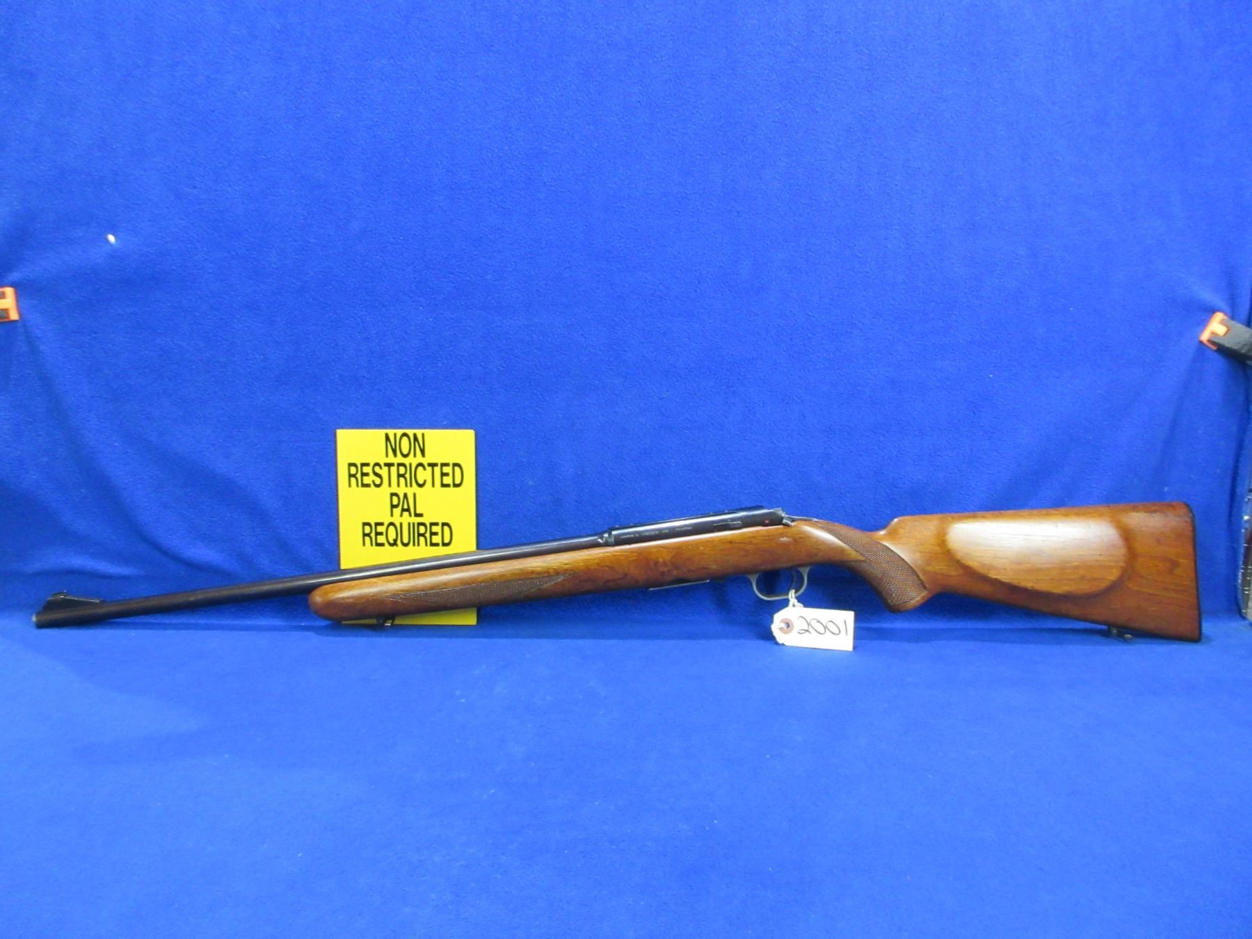 Non-Restricted - Gevarm Carbine in 222 Rem - This bolt action rifle with removable magazine appears to be in good to very good working order. Barrel is 22 1/2", rifling is good to very good, bluing is good, has front sight, missing rear sight but is drilled and tapped, stock is good to very good with usage marks, butt plate good, comes with swivels. Ser #None