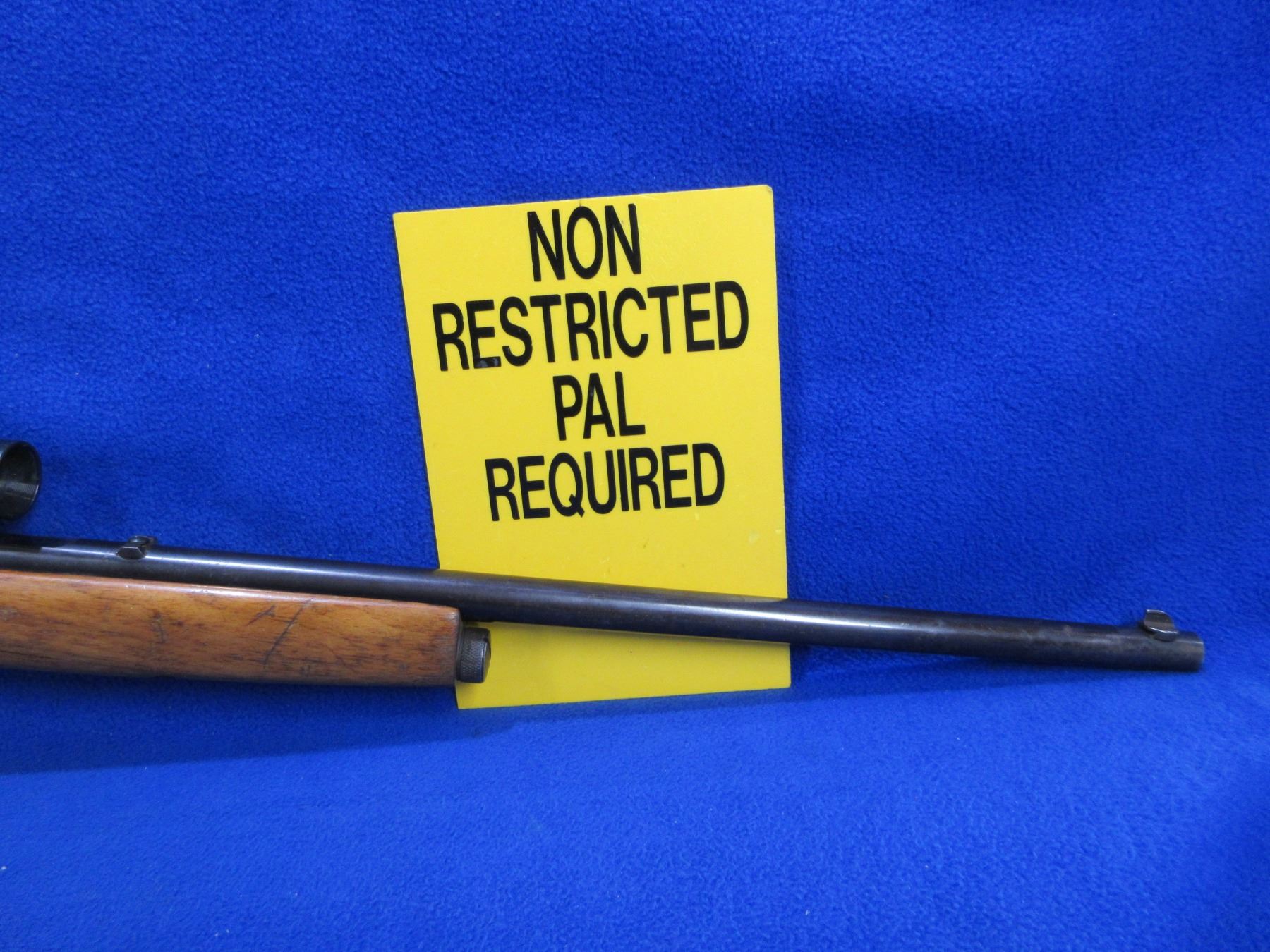 Non-Restricted - Gevarrm Carabine in 22 LR - This is a semi-auto rifle with removable magazine, action appears to be in good working order. Barrel is 19 3/8", rifling is fair to good as may need wet cleaning, bluing is good, has front sight, missing rear sight but has Weaver scope mount and Weaver C6 scope - appears clear - standard reticle (scope and mount have some fine pitting), stock and forearm good with finish flaking, butt plate good. Ser # 113888