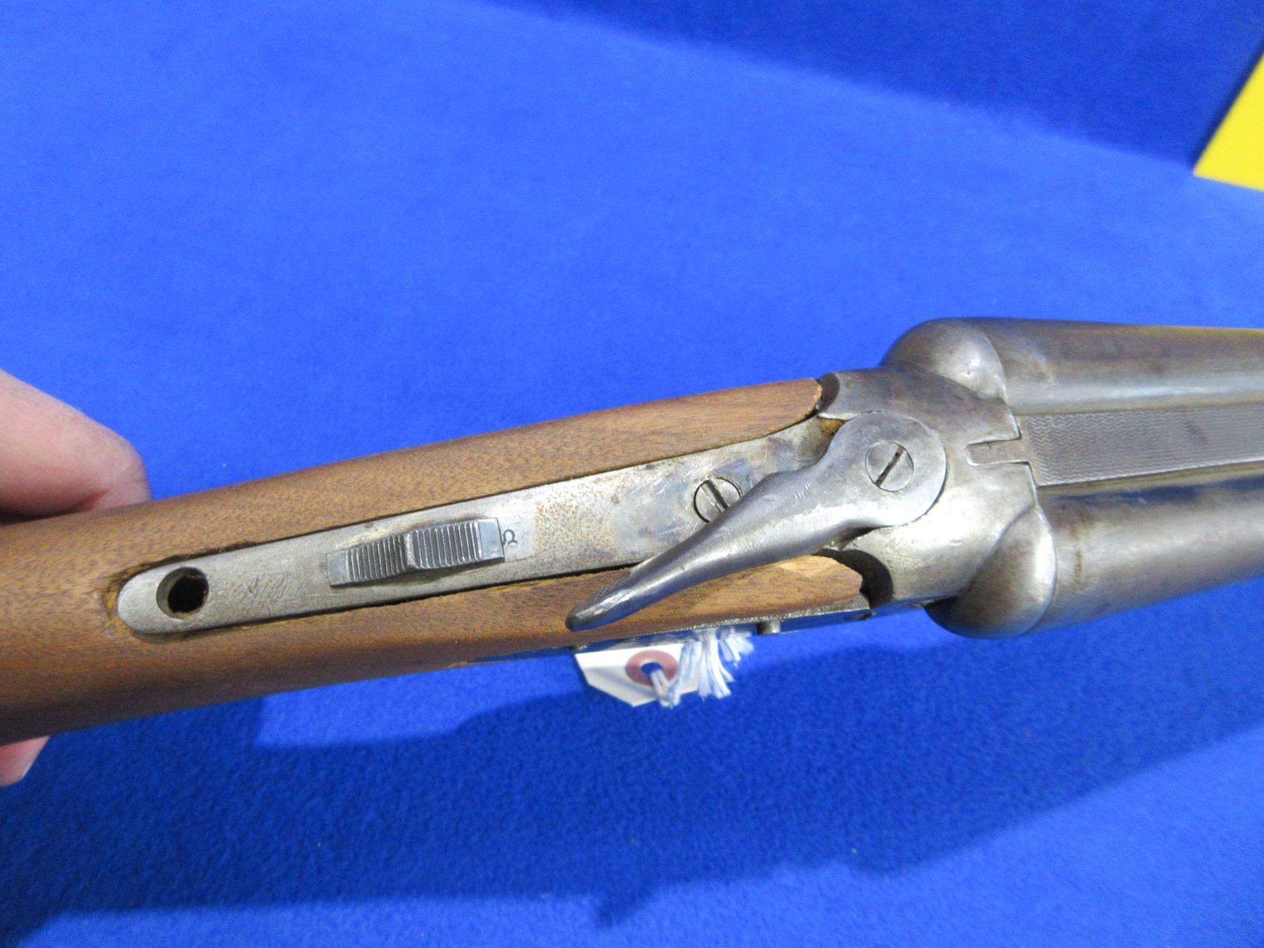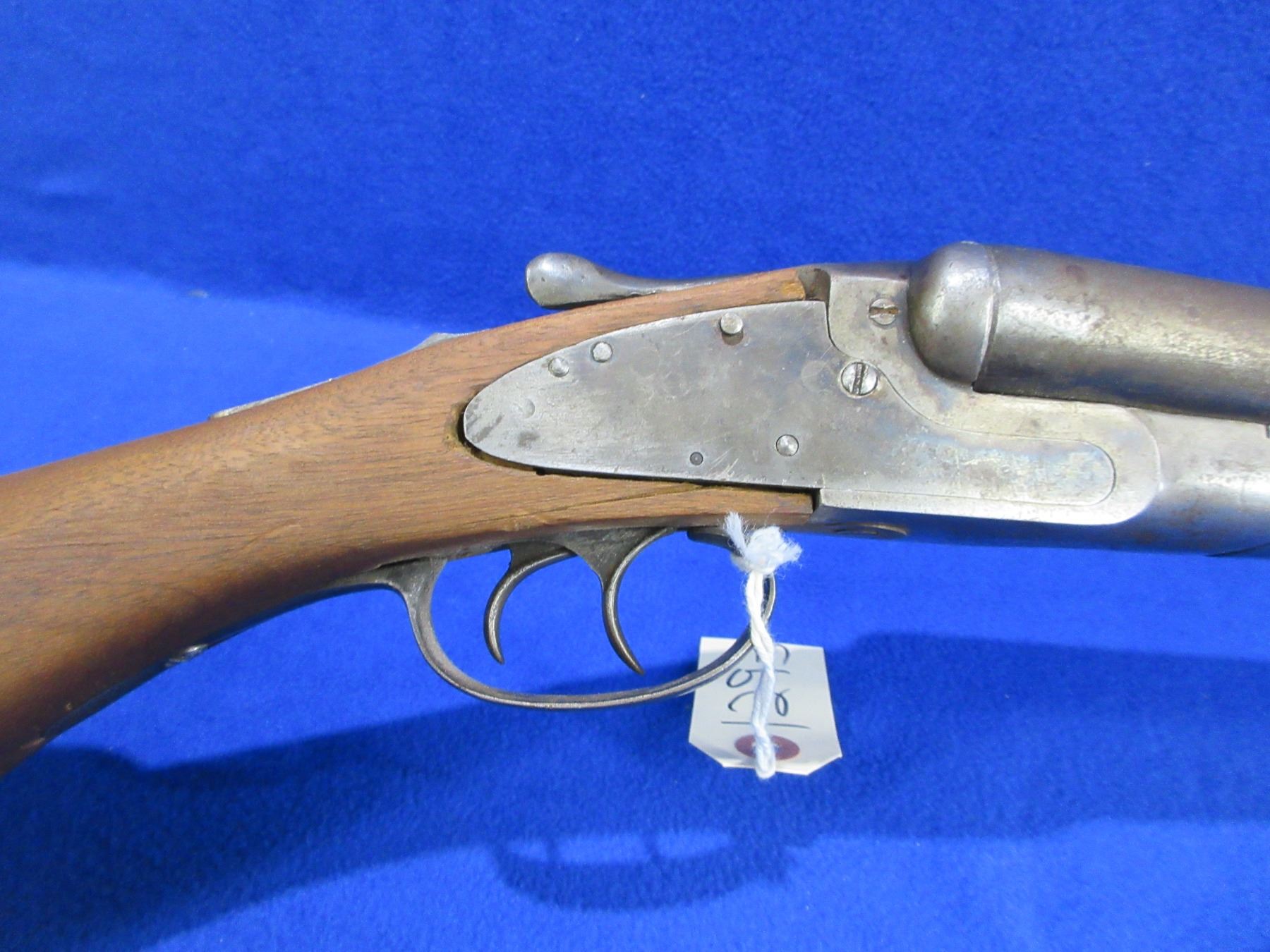Non-Restricted - Hartford Fire Arms Co. SXS in 12 Ga. 2 3/4" - This tip up SXS shotgun is in non working order as action is loose and stock is not fitted correctly. Barrels are 30", bores are good, bluing is mostly gone and has some light pitting, has bead front sight, stock has been replaced but is not fitted correctly, has a crack on the right side by the trigger guard and is missing the top tang screw, forearm is good for age with usage marks and small chips, butt plate is good. Ser # 49426