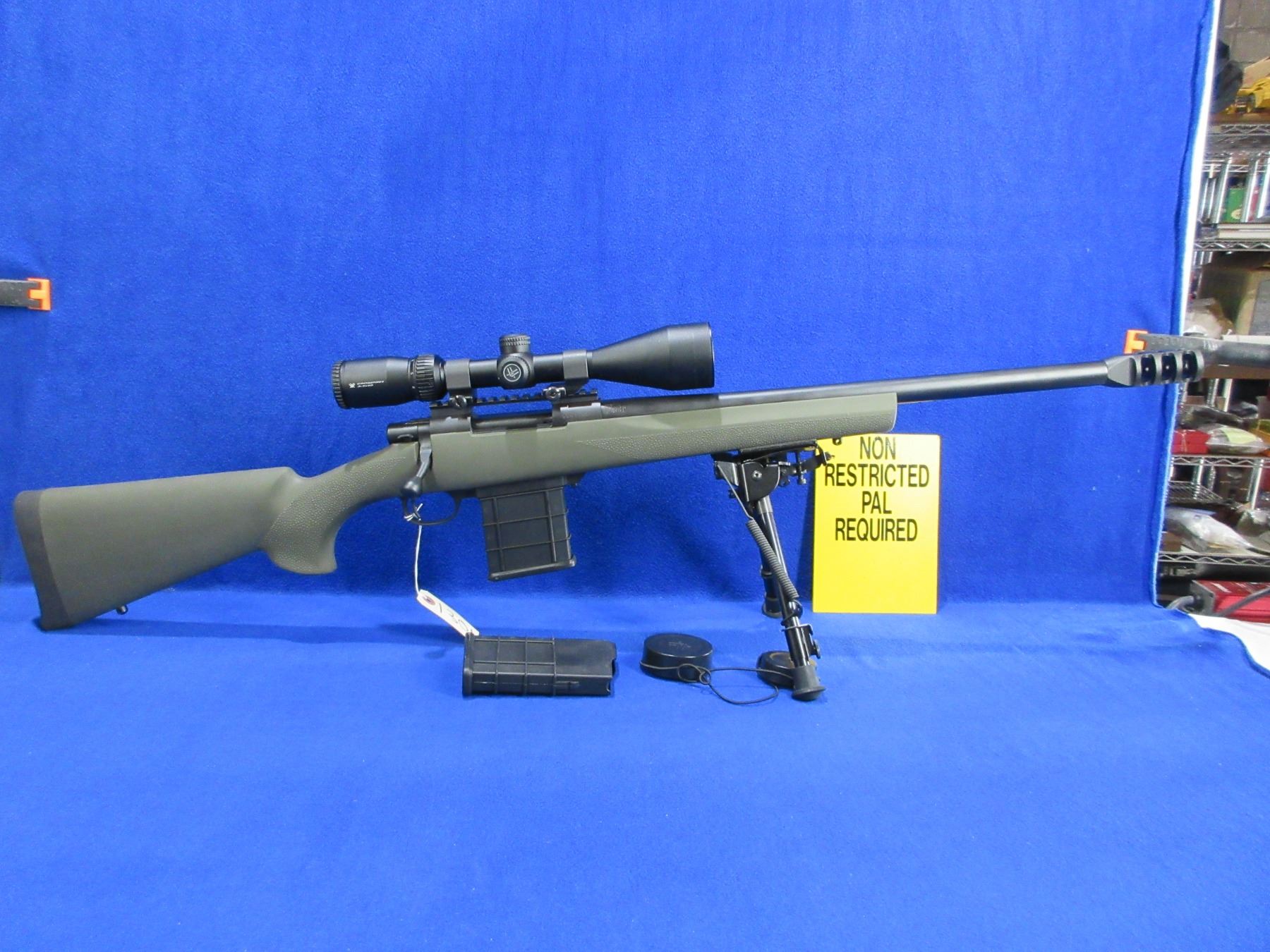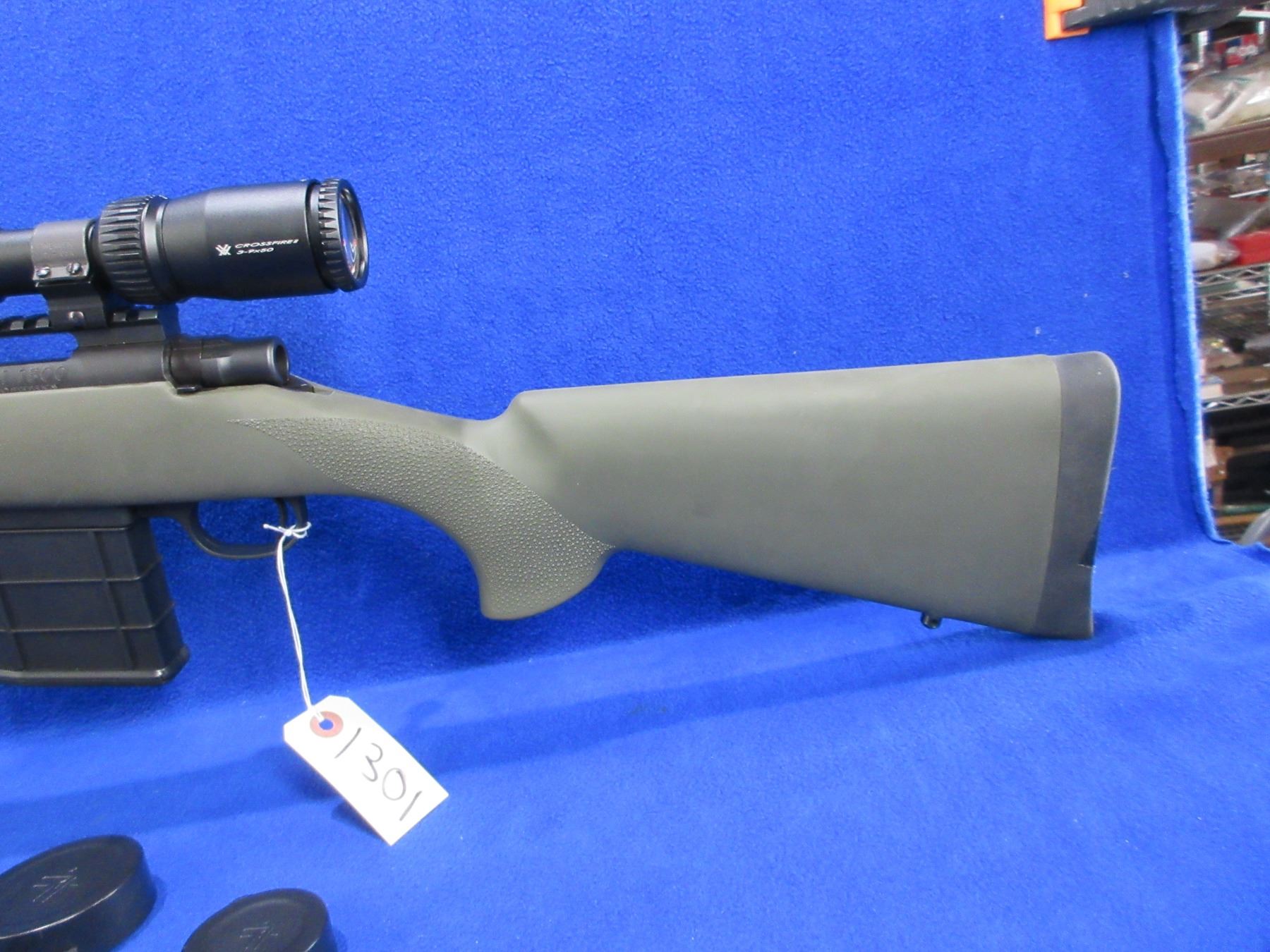 Non-Restricted - Howa Model 1500 in 308 Win - This bolt action rifle with 2 removable magazines appears to be in very good working order. Barrel is 19", rifling is very good, black finish is very good, has no sights but has a Vortex Crossfire 3-9x50 scope with lens covers - appears clear, duplex crosshair, Weaver rings, synthetic stock is good to very good, rubber recoil pad good, comes with swivel studs, muzzle brake and Harris SL bipod. Ser #B601104