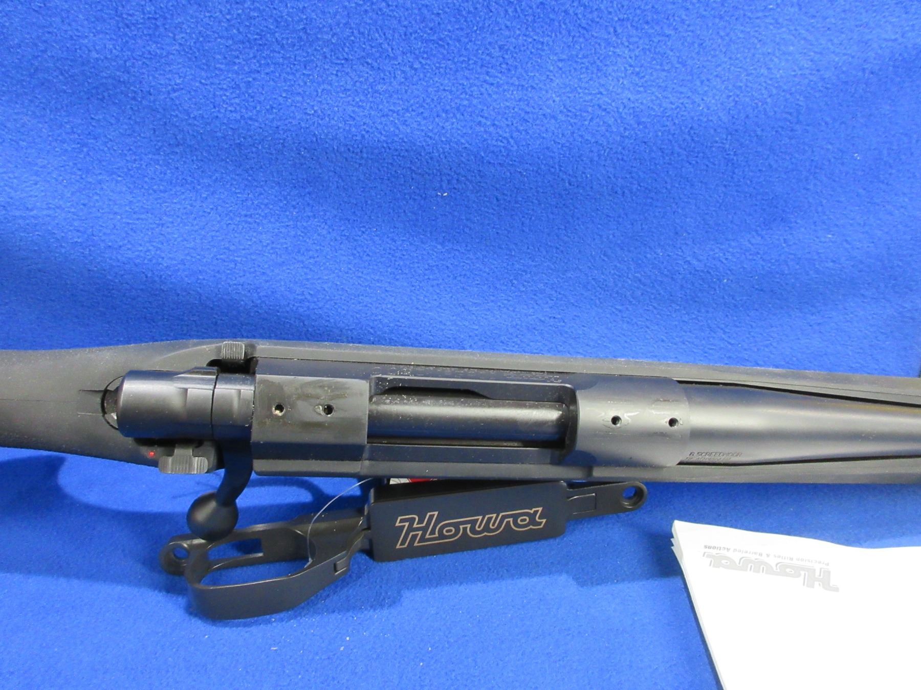 Non-Restricted - Howa Model 1500 in 6.5 Creedmoor - This bolt action rifle with removable magazine appears to be in very good working order. Barrel is 20", rifling is very good, bluing is very good, has no sights but is drilled and tapped, synthetic stock is good to very good, rubber recoil very good, comes with swivel studs, comes with removable magazine and floorplate magazines and original user manual. Ser #B570706