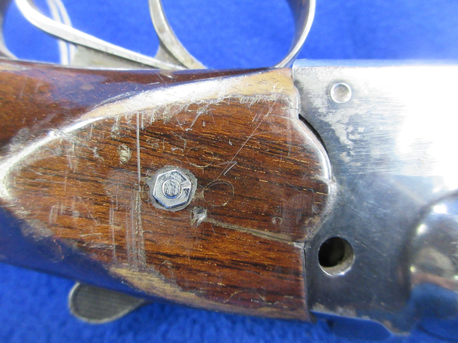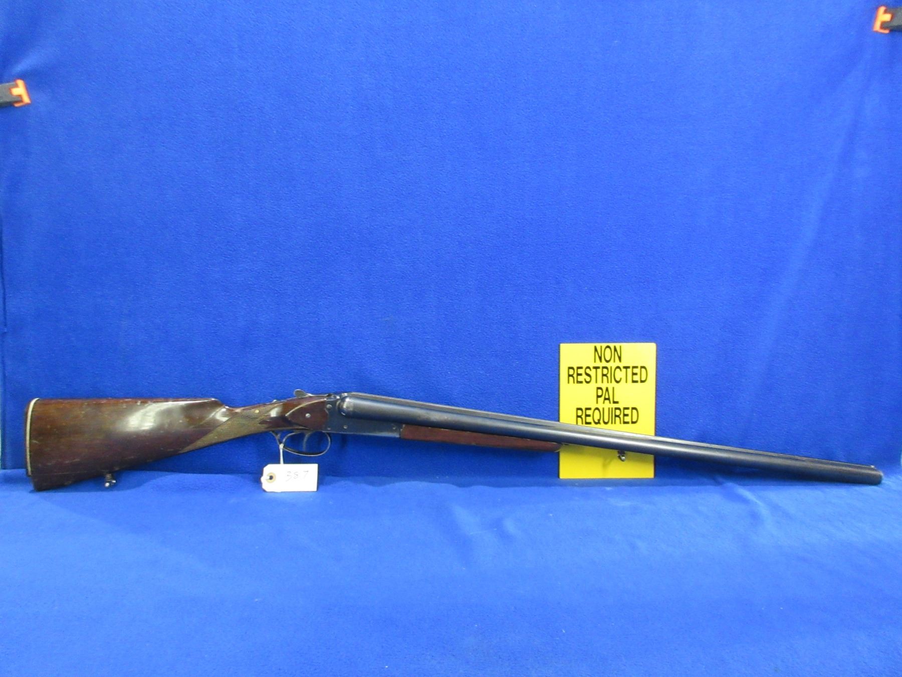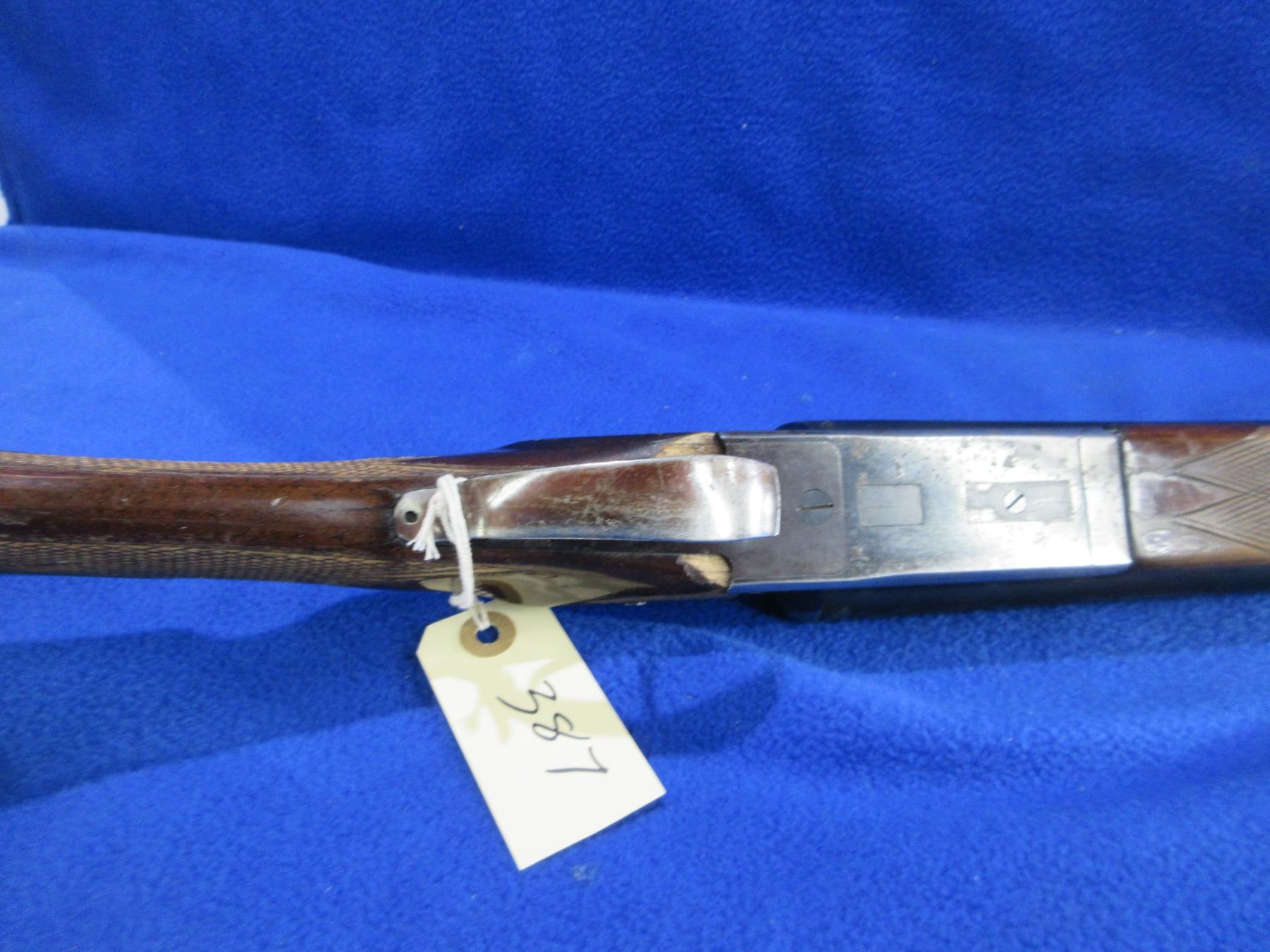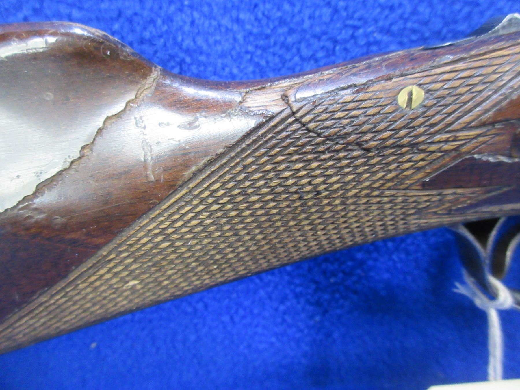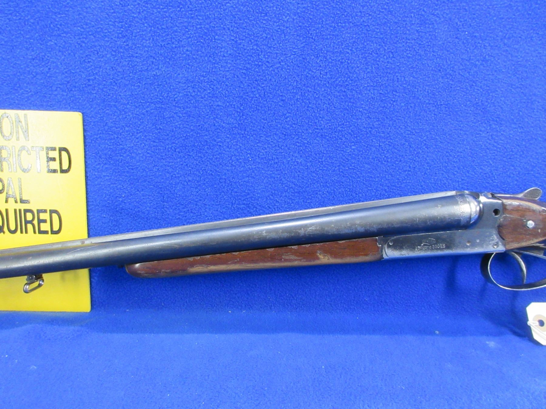 Non-Restricted - Hungarian Model 550ES in 12 Ga. 2 3/4" - This is a tip up SXS shotgun, action is tight and appears to be in good working order but stock is damaged and repaired and should not be fired. Barrels are 28", bores are good to very good, bluing is good with wear spots, has bead front sight, stock is damaged in the wrist area and the toe has a large chip and has been amateur repaired , forearm is good wuth finish wear, length of pull is 14", butt plate has a chip on the toe. Ser # G4034