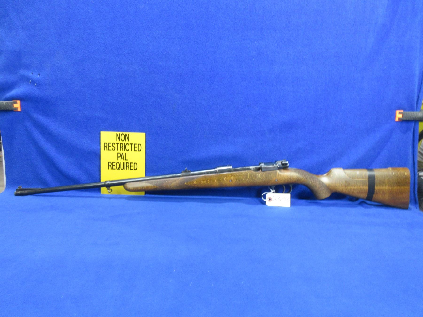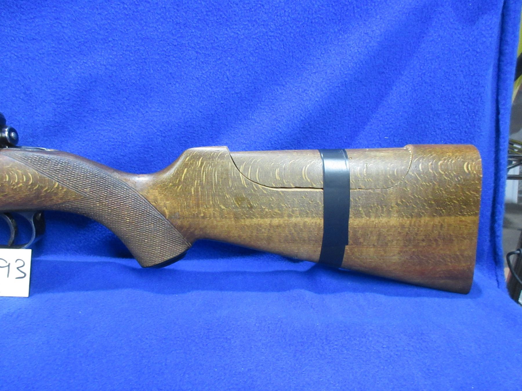 Non-Restricted - Husqvarna M96 in 9.3X57 - This bolt action rifle with floor plate magazine appears to be in good to very good working order but should not be fired as the stock is cracked. Barrel is 23 3/4", rifling is good to very good, bluing is good with some light pitting and wear marks, has both sights and is drilled and tapped, stock has a crack from the upper tang back to where stock has been cut to install a cheek rest (not completed), butt plate is missing, comes with front swivel. Ser # 93445