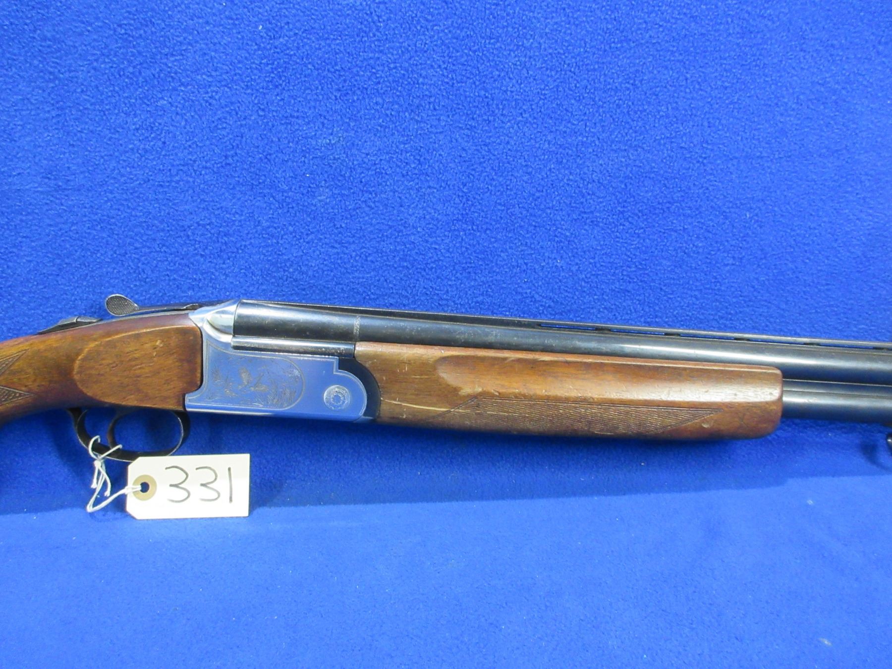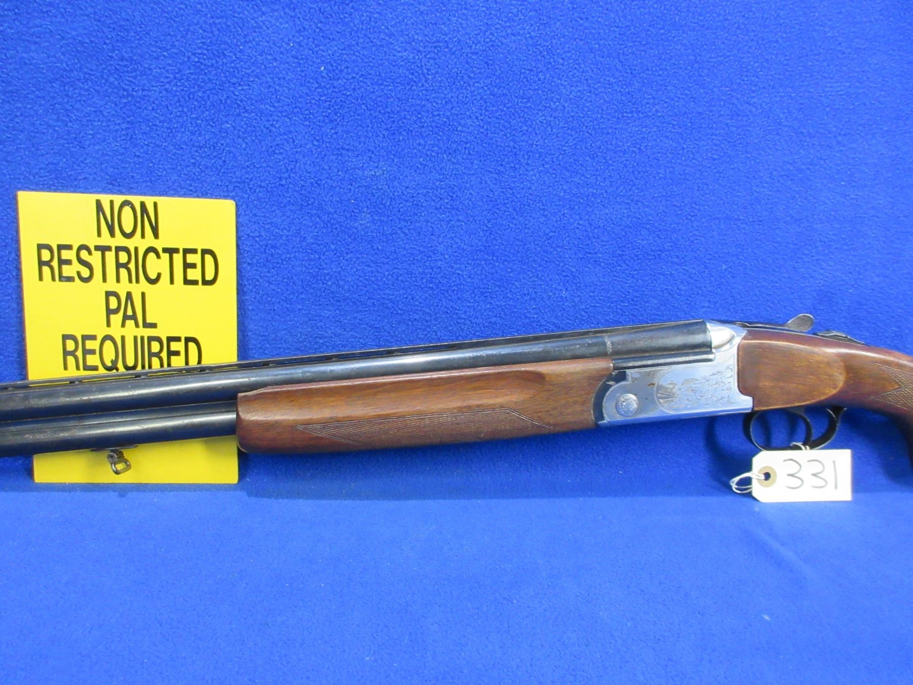 Non-Restricted - Husqvarna Model 300 in 12 Ga.2 3/4" - This is an over/under shotgun, action is tight and is in non working order as will not cock. Vent rib barrels are 26 3/4", bores are good but bottom barrel has a small dent approx 8" from muzzle, bluing is fair to good with light pitting, has bead front sight, stock is good with usage marks, forearm is good with many usage marks and a small chip on left side at top, length of pull is 14", butt plate good, comes with swivels. Ser # 82619