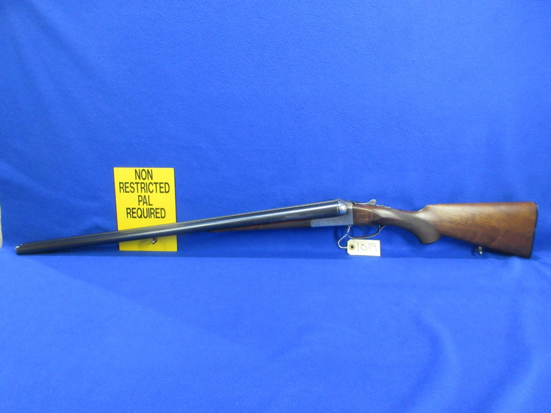 Non-Restricted - Husqvarna Model 350 in 12 Ga. 2 3/4" - This is a tip up SXS shotgun, action is tight and appears to be in good working order. Barrels are 27 5/8", bores are good, bluing is good with a wear spot on right side of barrel, front sight missing, stock and forearm are goodwith usage marks, length of pull is 14", butt plate good, comes with swivels. Ser # 236776