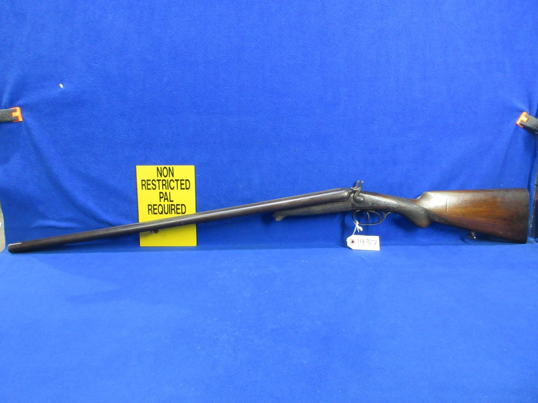 Non-Restricted - Husqvarna SXS in 12 Ga. 2 1/2" - This under-lever tip up SXS hammer shotgun appears to be in good working order, action is tight. Damascus barrels are 29 1/2", bores are fair to good but left barrel has a small dent approx 10 1/2" from muzzle, browning is fair to good, has bead front sight, stock is good for age with usge marks, metal butt plate good, comes with swivels. Ser # 49729