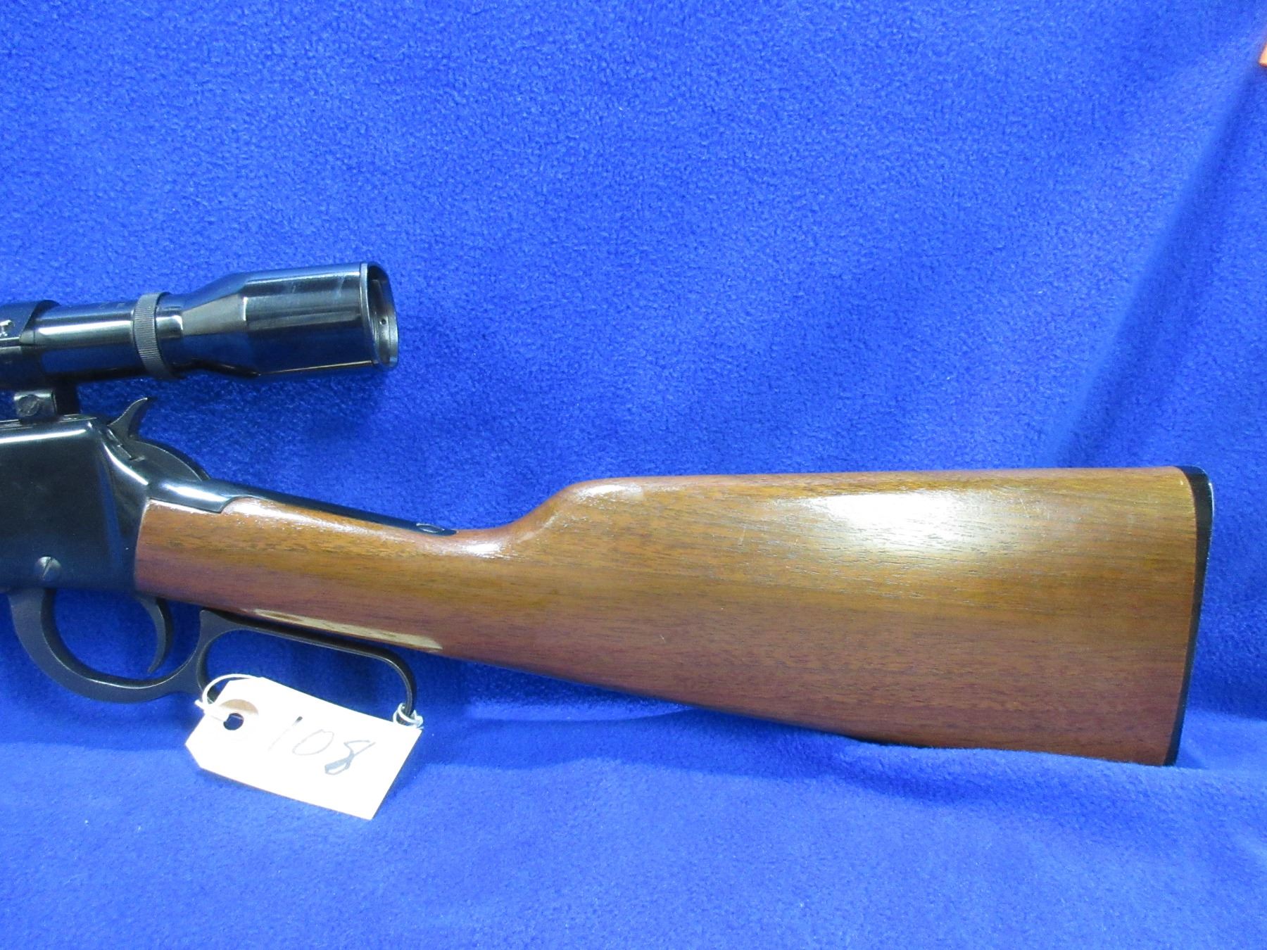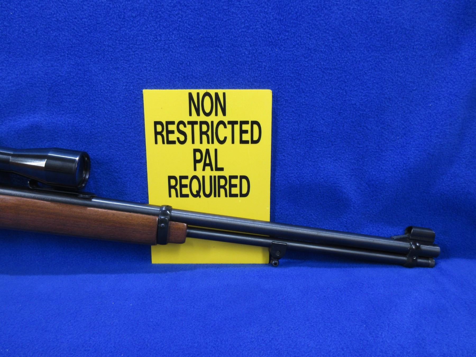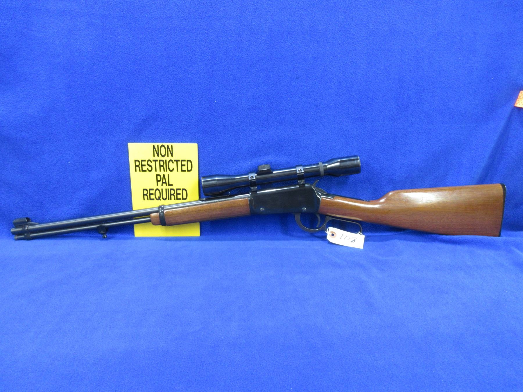 Non-Restricted - Ithaca Model 72 Saddlegun in 22 WMR - This lever action rifle with tube magazine appears to be in very good working order. Barrel is 18 1/2", rifling is very good, bluing is very good, has both sights but is missing the rear ramp and has a Weaver Challenger C4W widefield riflescope - appears clear, duplex crosshair, stock and forearm are very good, butt plate good, comes with swivel studs. Ser # 73009207