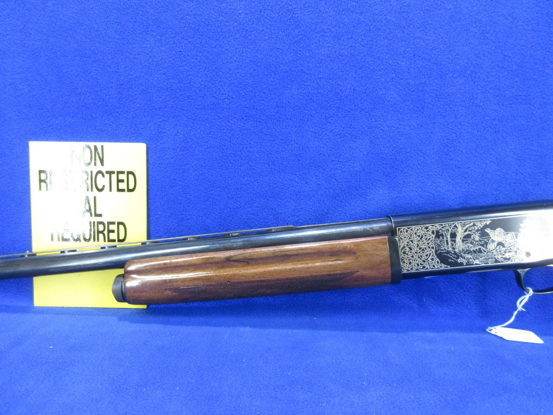 Non-Restricted - Ithaca Model 900 in 12 Ga. 2 3/4" Full - This semi-auto shotgun appears to be in good to very good working order. Vent rib barrel is 30", bore is shiny, bluing is good, has bead front sight and bead mid sight, stock is good to very good but has been refinished, forearm is good to very good but has been refinished, butt plate good. Ser # S54829