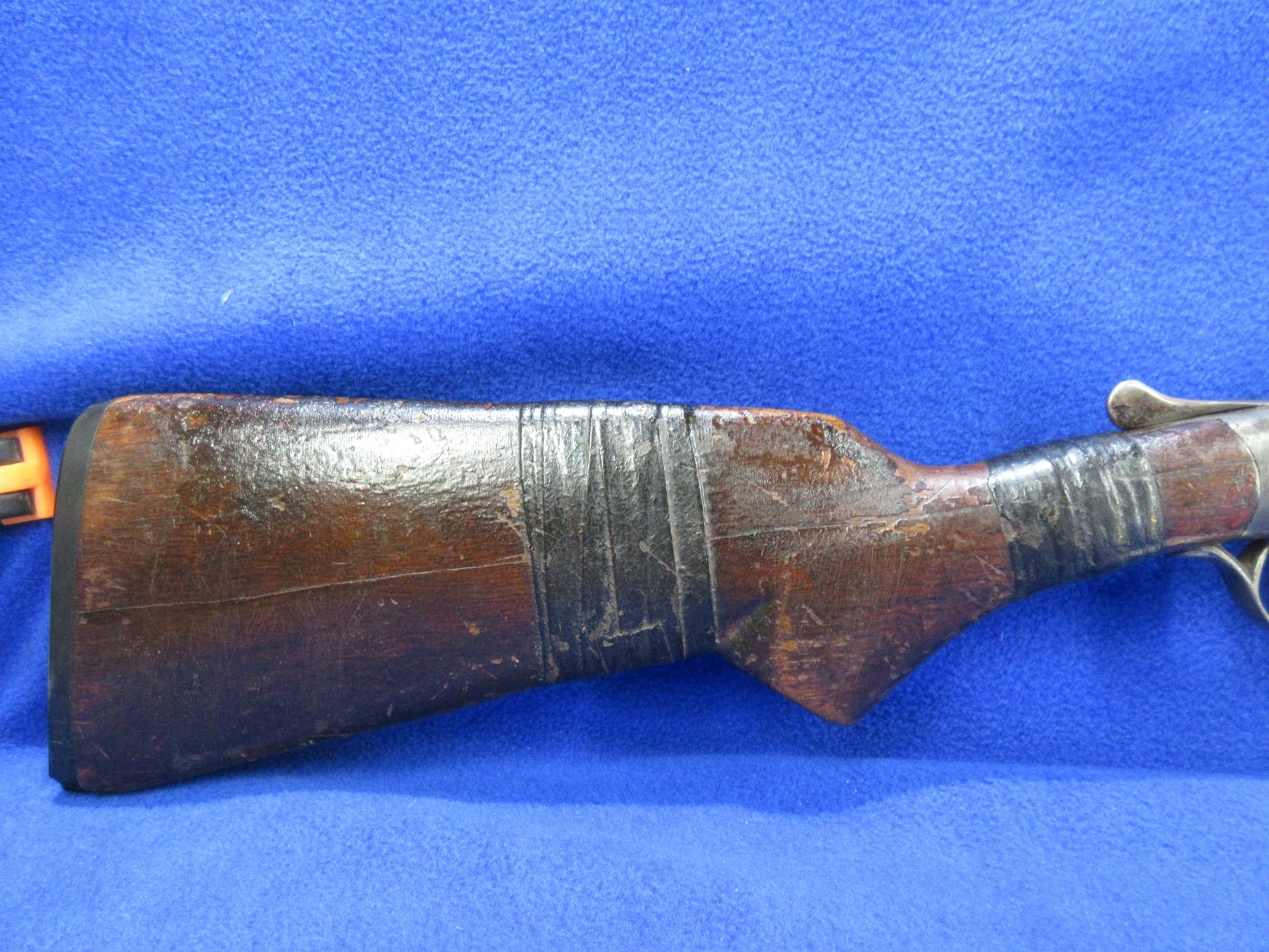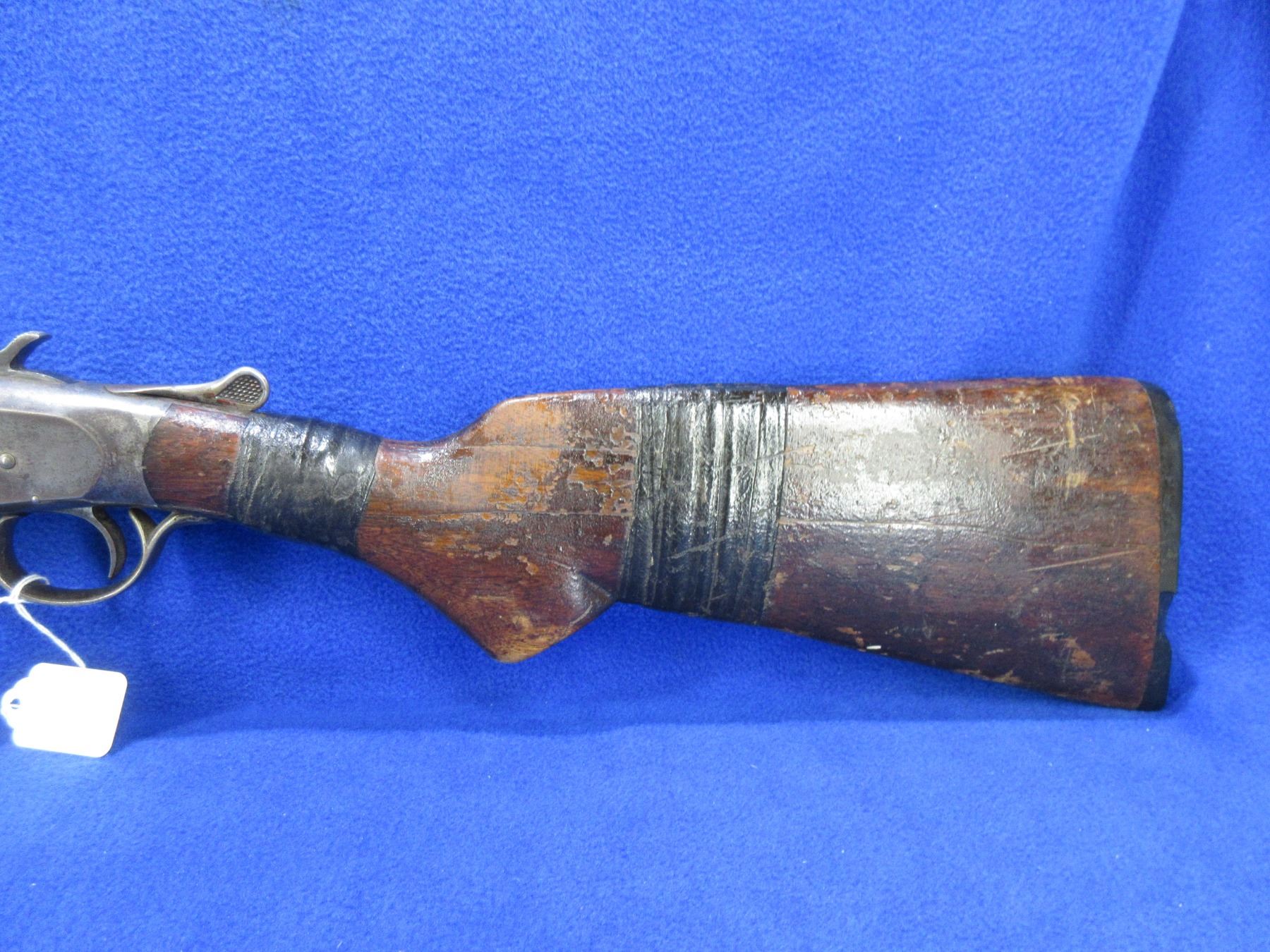 Non-Restricted - Iver Johnson Model Champion in 410 Ga. - This single shot tip barrel shotgun appears to be in good to very good working order. Barrel is 26", bore is shiny, bluing is gone, has bead front sight, stock is poor as it may have been repaired and appears to be held together with tape, forearm is good, butt plate is chipped. Ser # None