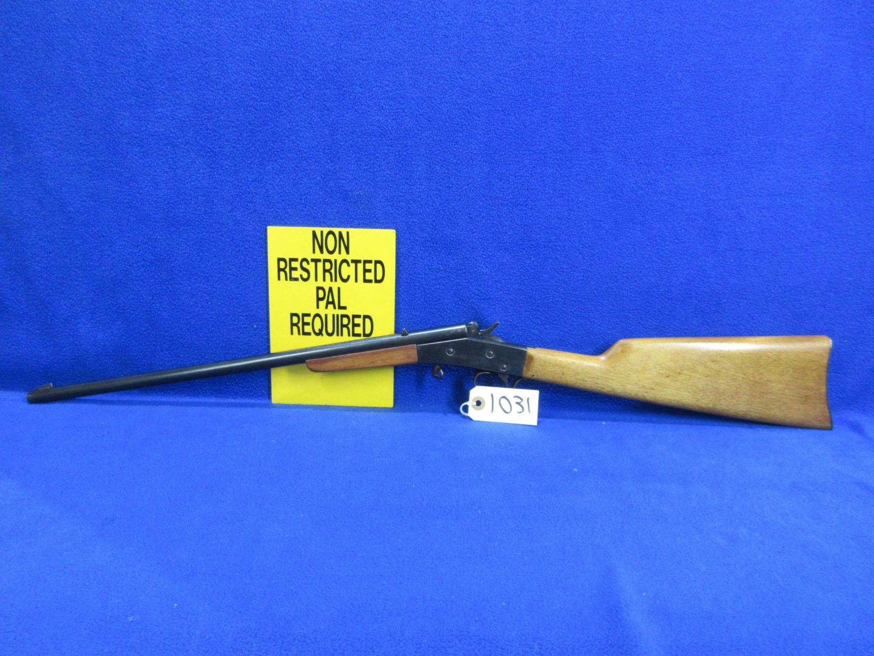 Non-Restricted - J. Stevens Little Scout 14 1/2 in 22 LR - This is a single shot falling block rifle in overall very good condition for age, action appears to be in good working order. Barrel is 18", rifling is fair to good for age, bluing is good to very good with light scratches and appears reblued, has both sights, stock has a hairline crack on top of wrist area, forearm is good with usage marks, length of pull is 13", metal butt plate good, comes with a swivel. Ser # None