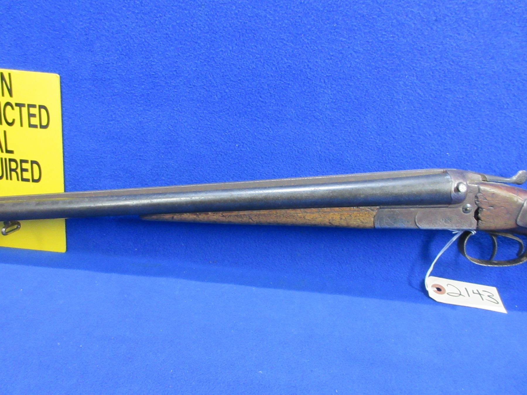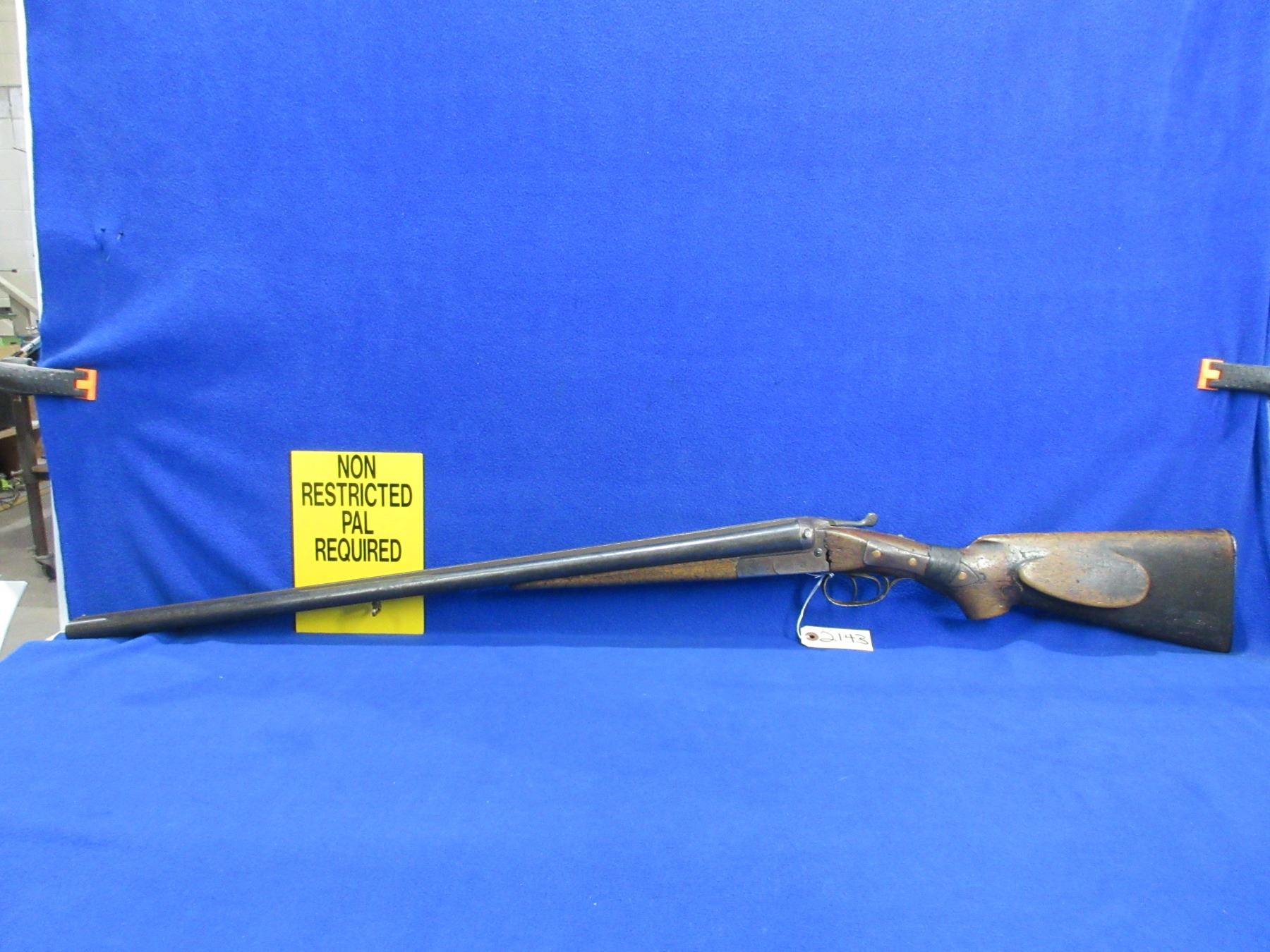 Non-Restricted - JP Sauer & Sons Suhl in 12 Ga. 2 3/4" - This tip up SXS shotgun appears to be in working order but should not be fired as the stock is broken. Solid rib barrels are 28 1/2", action is tight, bores are good, bluing is fair but pitted, has bead front sight, stock is broken and poorly repaired, forearm is poor but is not cracked, butt plate good, comes with front swivel. Ser # 475152