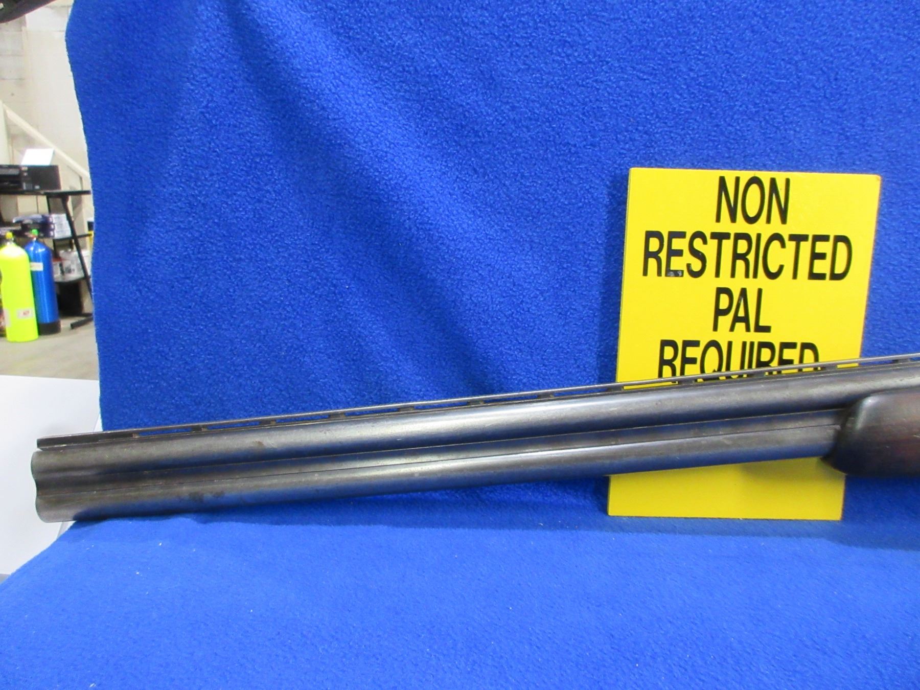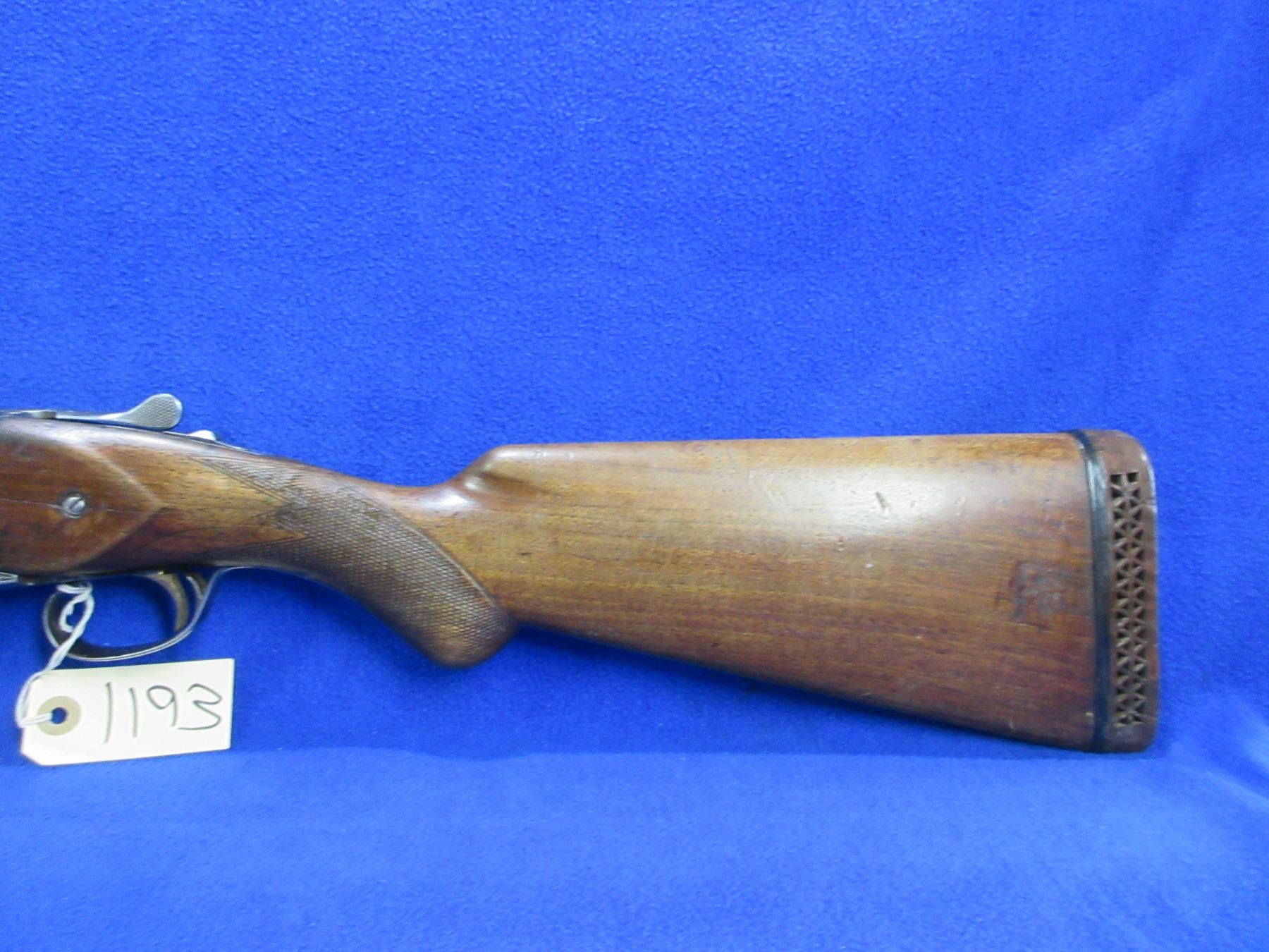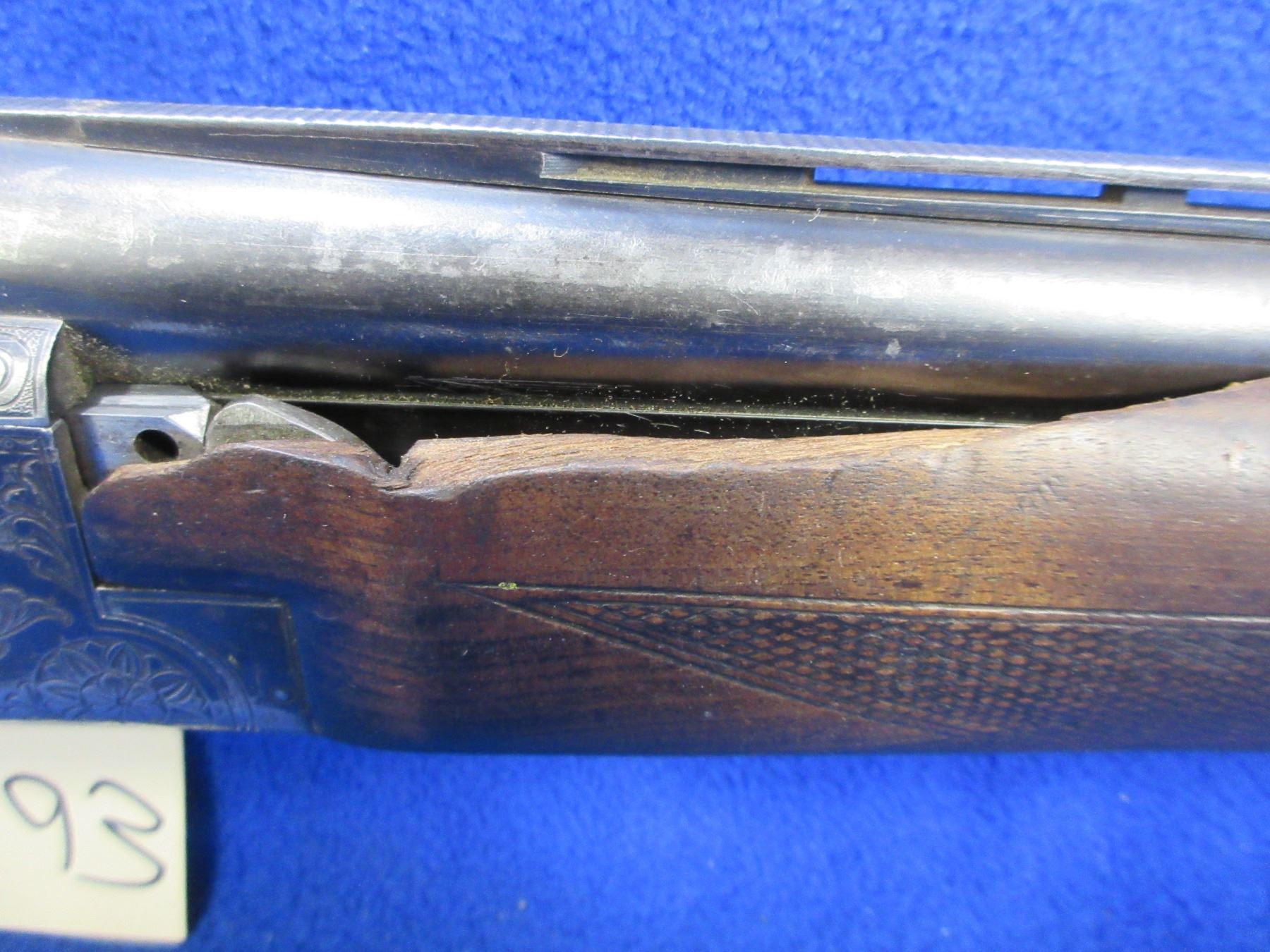 Non-Restricted - Kawaguchiya Firearms Company Model OS in 12 Ga. 2 3/4" - This is an over/under shotgun, action is tight and appears to be in working order but should not be fired as stock is broken. Vent rib barrels are 28", bores are good, bluing is turning grey or gone, bead front sight missing, stock is broken, forearm has a large chip on the right and a small chip on the left, rubber recoil pad poor. Ser # 371680