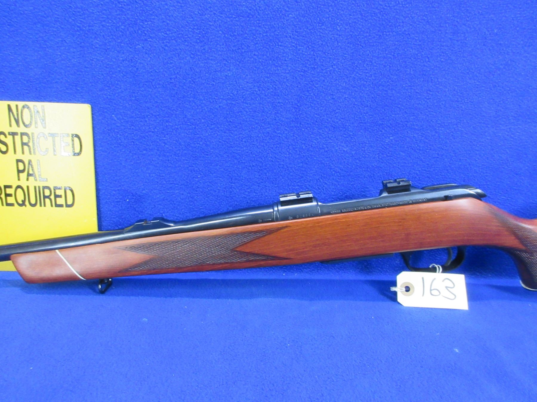 Non-Restricted - Krico in 222 Rem - This is a bolt action rifle with removable magazine in very nice clean condition, action appears to be in very good working order. Threaded barrel is 20", thread cap missing, rifling is very good, bluing is good to very good, front and rear sights missing and has Weaver style bases, stock is good to very good, length of pull is 13 1/2", butt plate incorrectly fitted, comes with swivels. Ser #608564