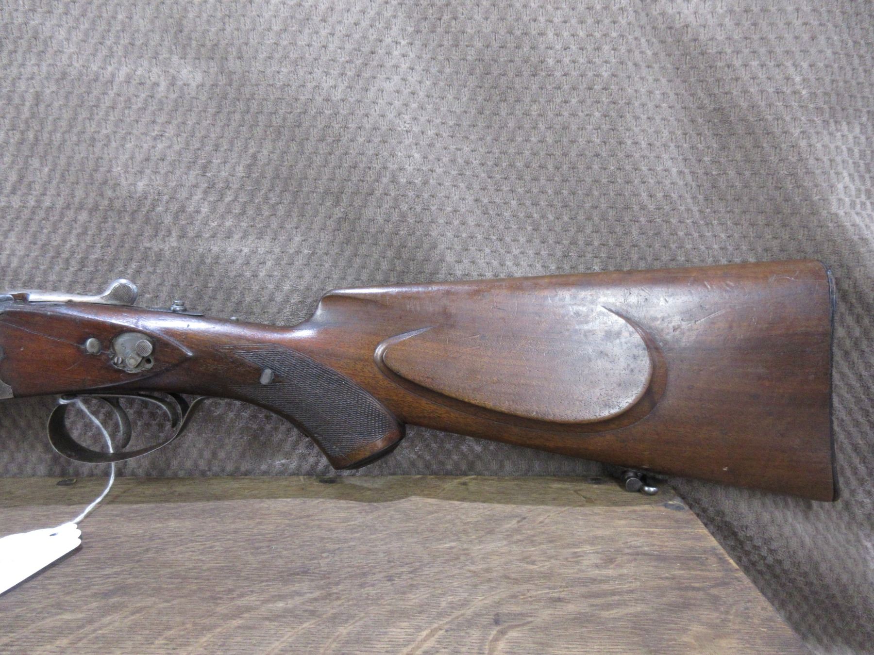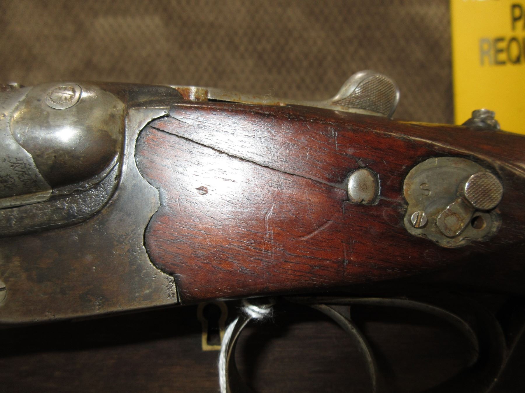 Non-Restricted - Krupp Stahl German Drilling with 3 Barrels in 16 Ga. & 8mm x 75R?? - This tip barrel shotgun/rifle appears to function but should not be shot without first taking it to a gunsmith. Barrels are 26 13/16", bores are somewhat shiny - right hand bore is dented at barrel tip, 8mm rifling is good but has some pitting, bluing is grey, has bead front sight, stock is cracked in 3 spots, forearm is poor to fair, butt plate is poor, safety for rifle flips up rear sight, comes with non original wood shotgun case/box with key, Ser # 2098