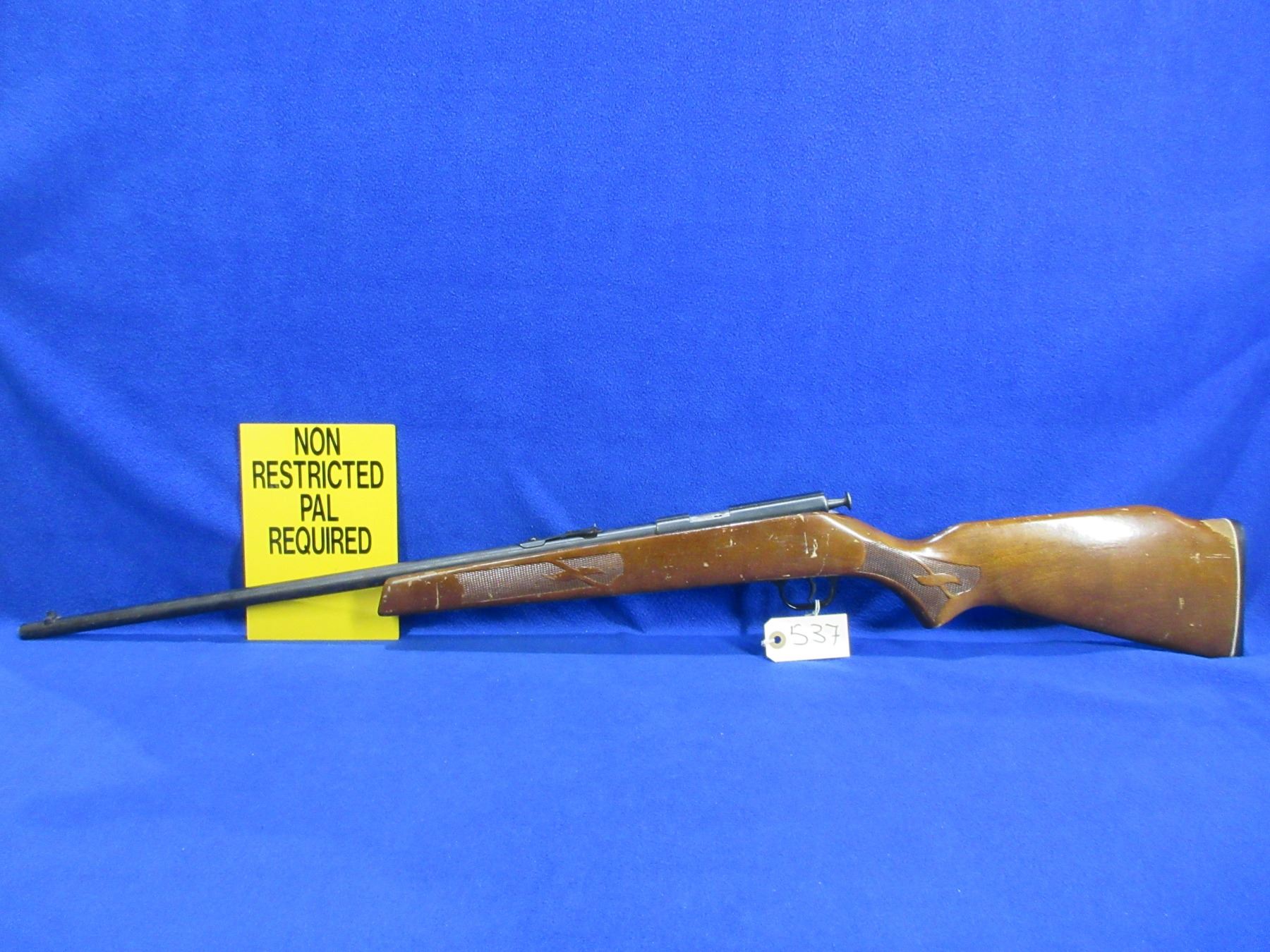 Non-Restricted - Lakefield Mk I in 22 S/L/LR - This is a single shot bolt action rifle, action is in non working order as trigger assembly appears broken (does not cock). Barrel is 23", rifling is good to very good, bluing has rust and pitting, has both sights, stock is good with many usage marks, butt plate good. Ser # 46956