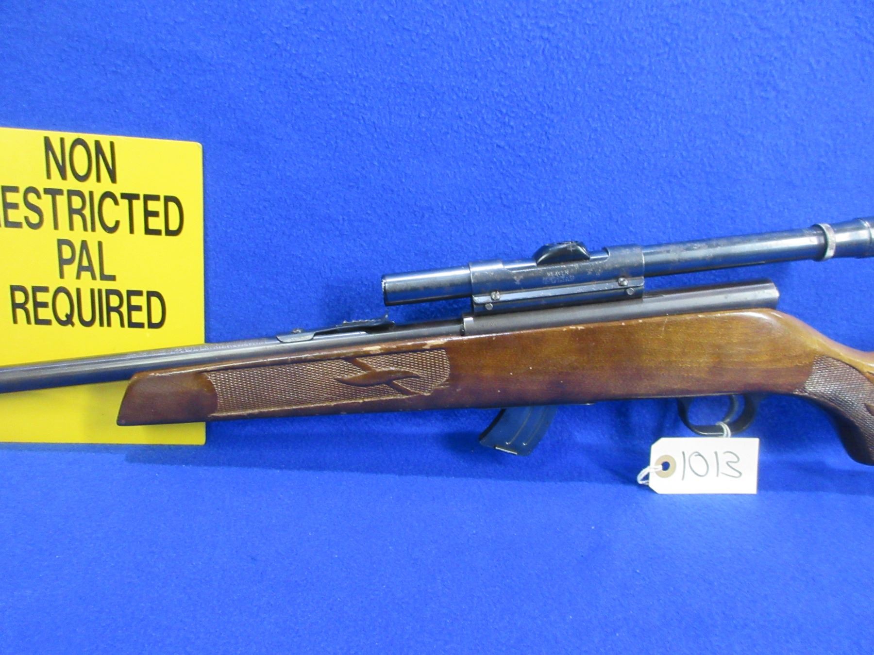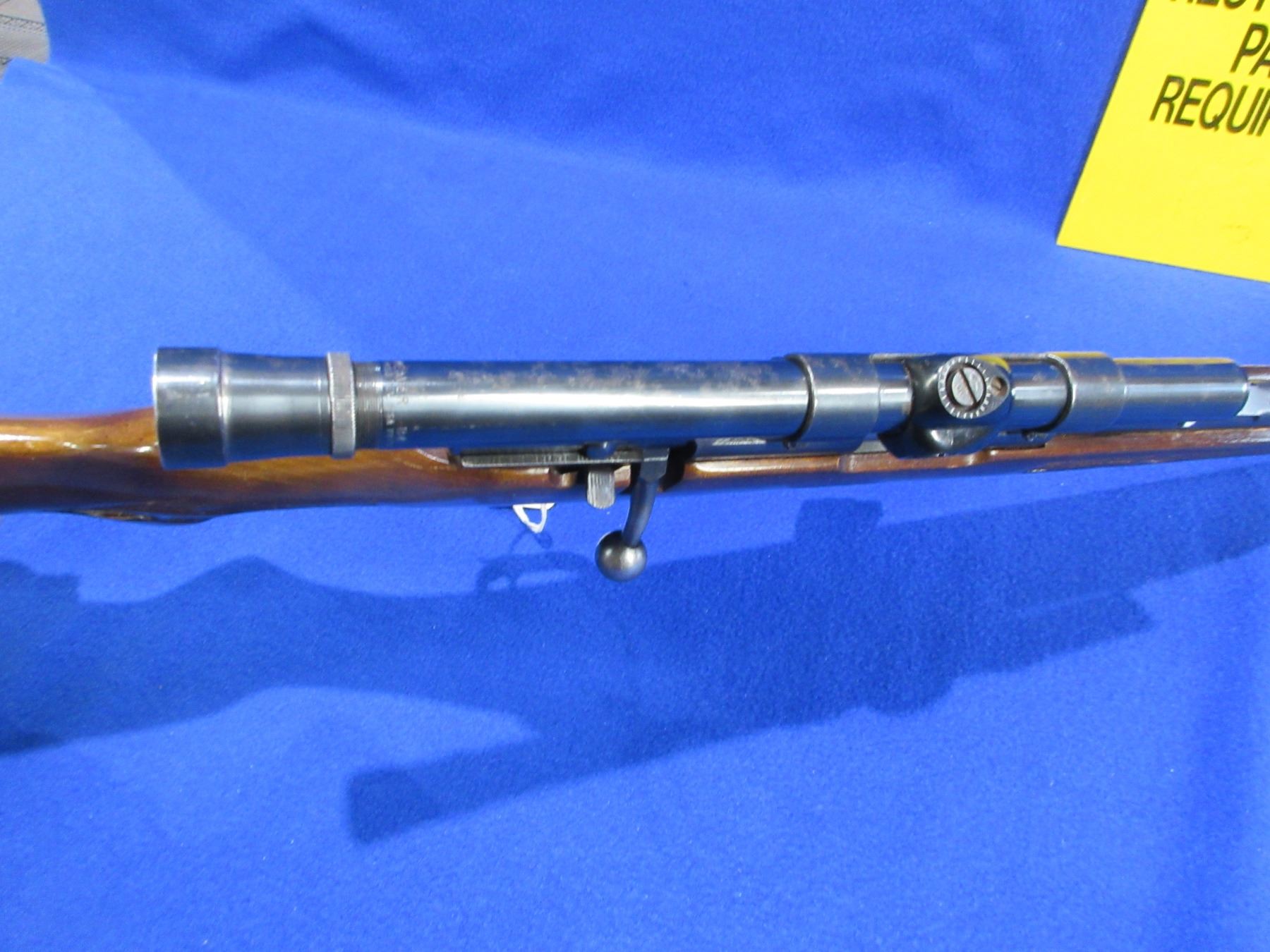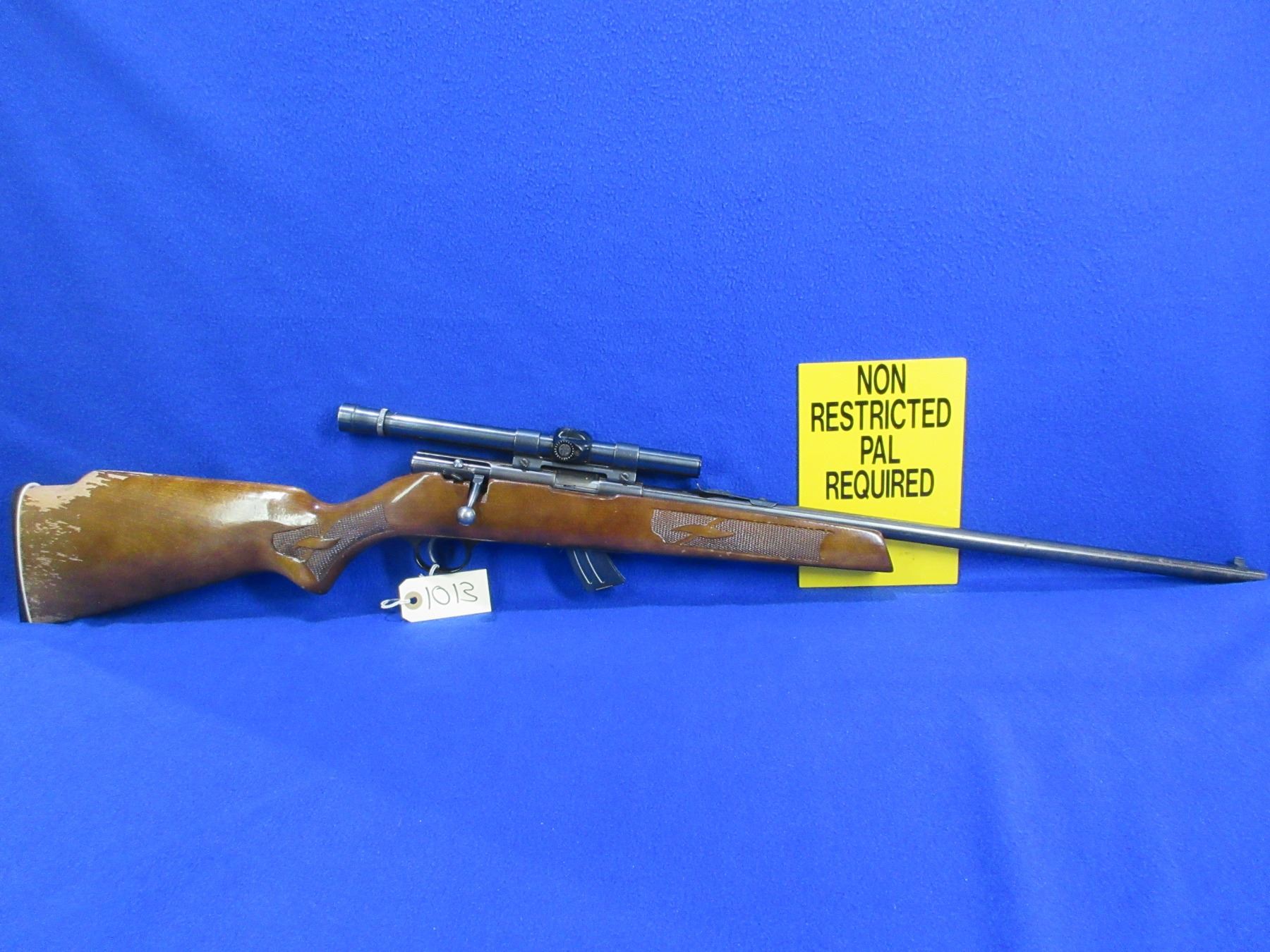 Non-Restricted - Lakefield Mossberg Mk II in 22LR - This is a bolt action rifle with removable magazine, action appears to be in good to very good working order. Barrel is 21", rifling is good to very good, bluing is good with some light pitting, has both sights and vintage Weaver B4 scope - appears clear - standard reticle, stock is good with usage marks and finish flaking/drying cracks on the butt, length of pull is 13 1/2", butt plate good. Ser # 47870