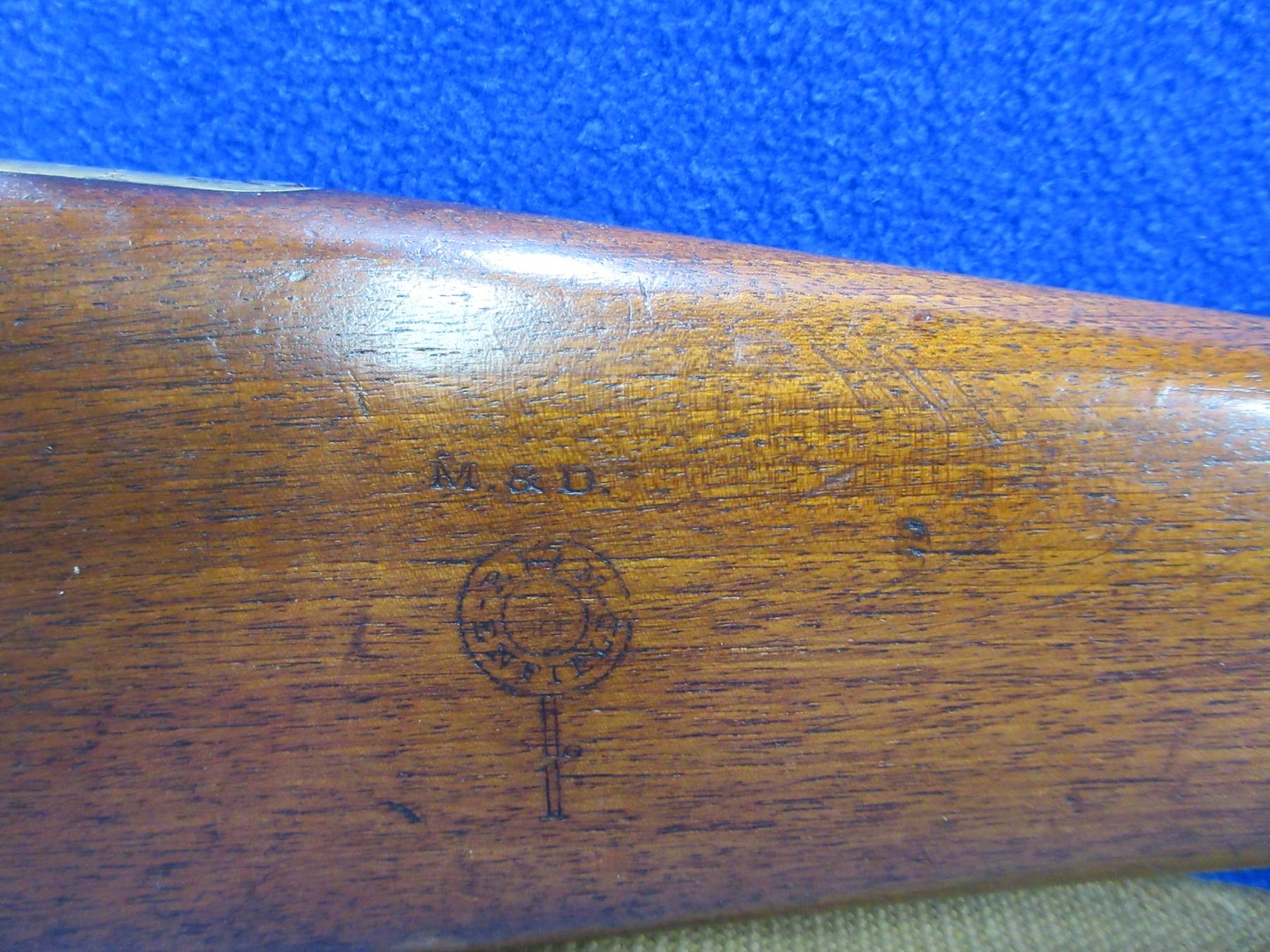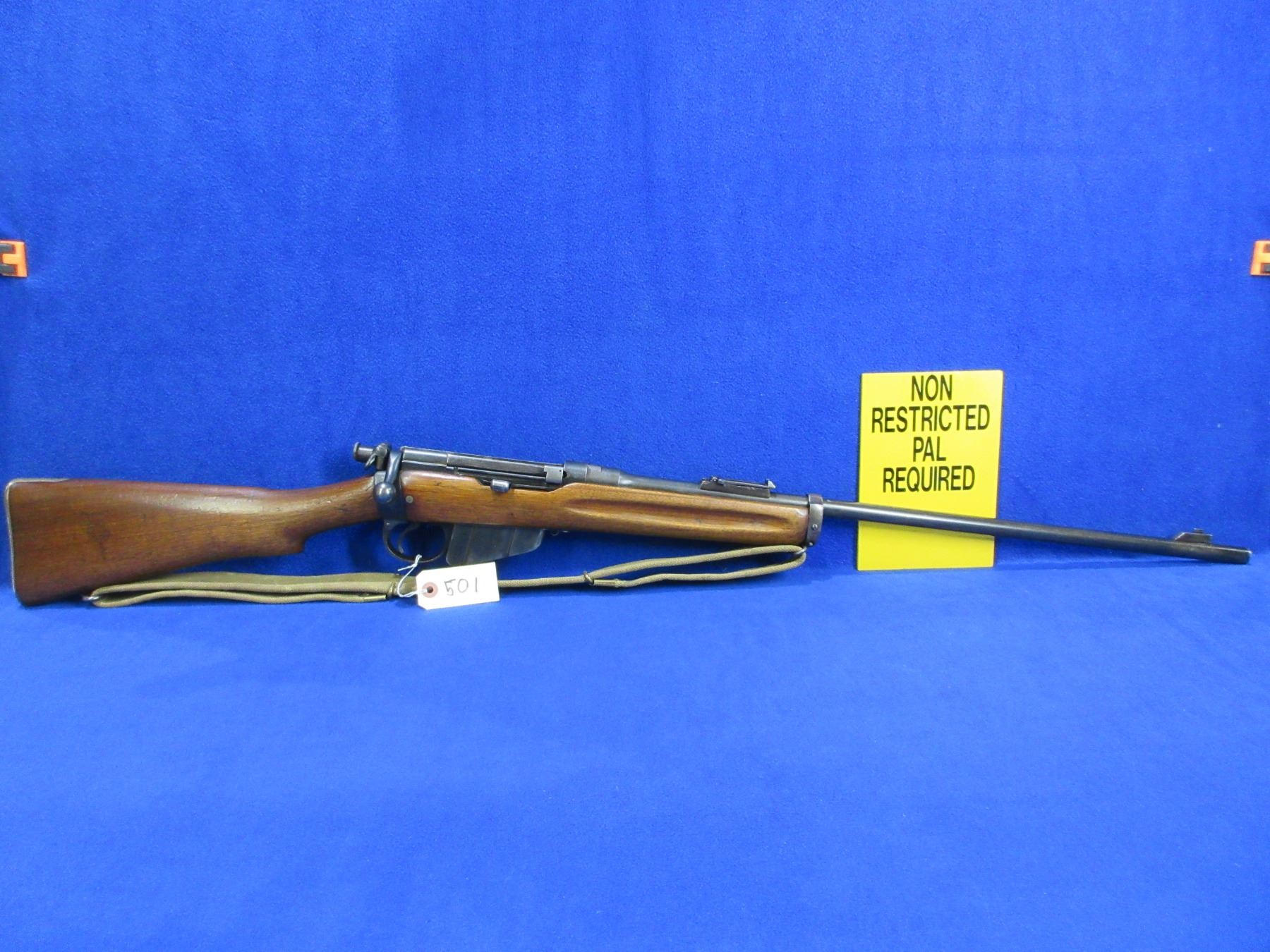 Non-Restricted - Lee Enfield 1896 L.E.I. in 303 British - This bolt action Long Lee Charger loading rifle with removable magazine appears to be in good to very good working order. Barrel is 25 1/2", rifling is good and a bit dark, bluing is good, has both sights, stock is good to very good, brass metal butt plate good. Comes with pull through in stock, swivels and sling. Numbers match on receiver, bolt and barrel. Ser #1028A