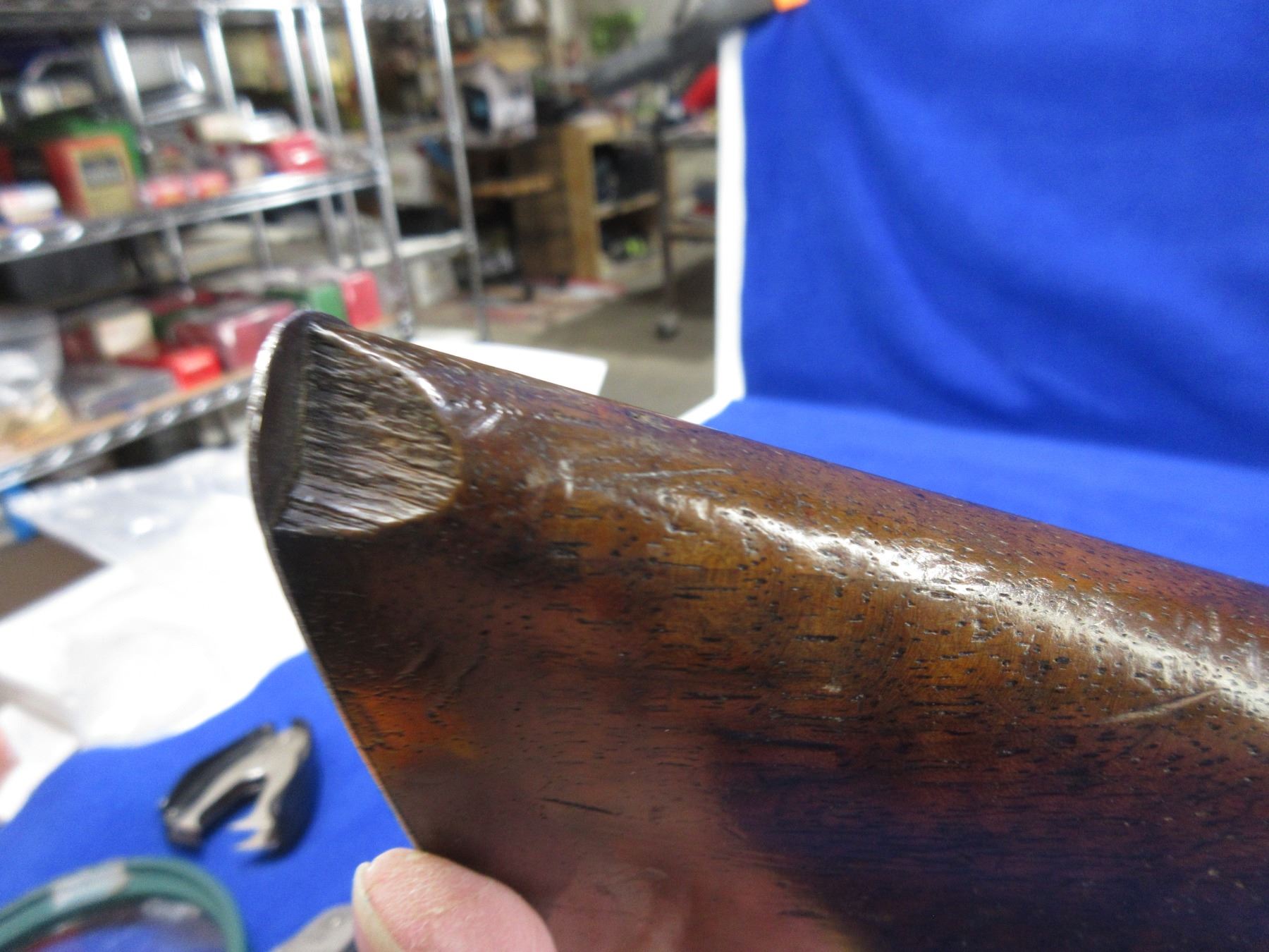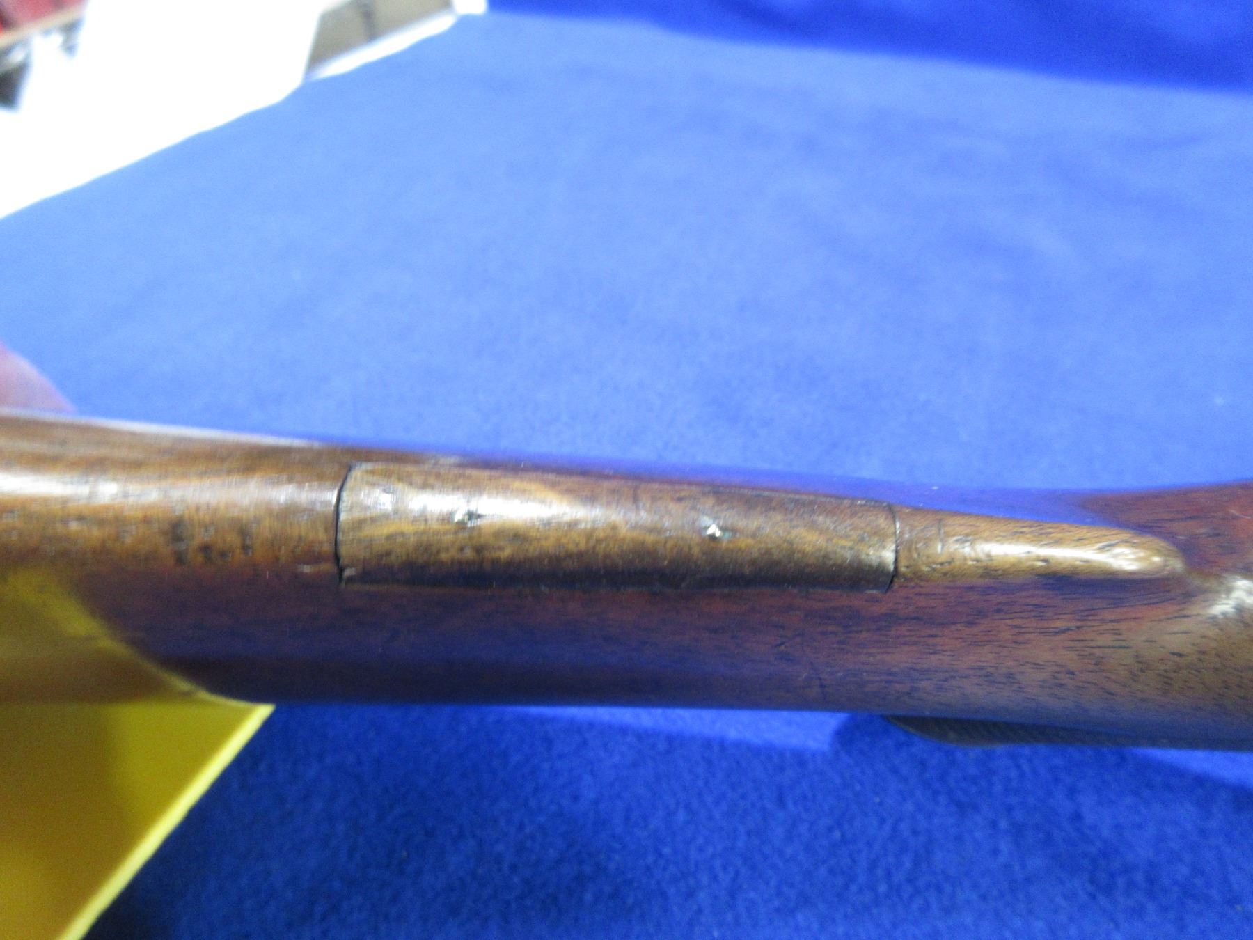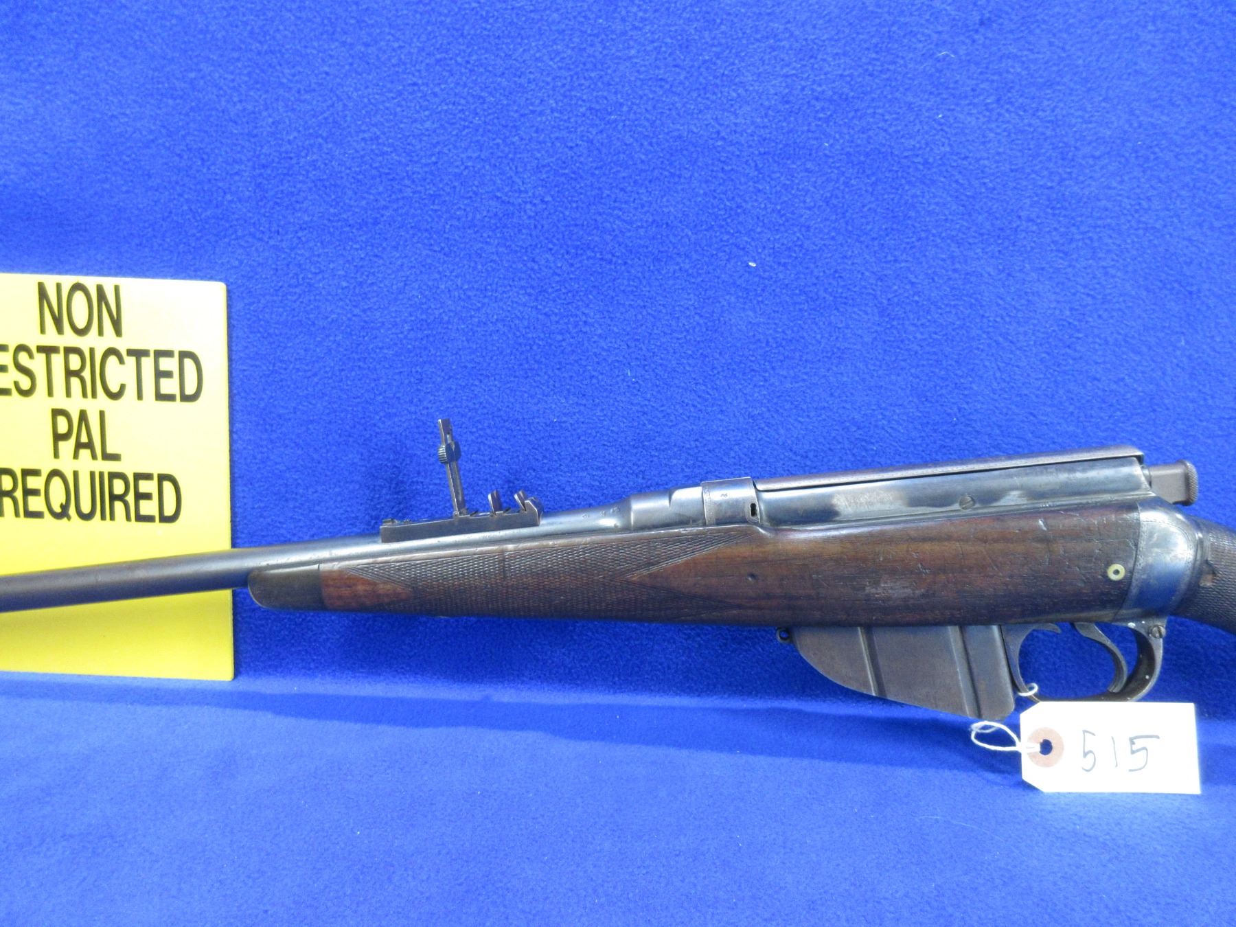 Non-Restricted - Lee Enfield Lee Speed in 303 British - This bolt action rifle with removable magazine appears to be in good to very good working order. Barrel is 23 1/2", rifling is fair to good, bluing is fair to good, has front sight and has 3 leaf folding rear sights, stock is good with usage marks but has a chip on bottom toe area and has a vintage repair on top of comb, metal butt plate good. Rifle has border engraving on trigger guard, magazine and other places. Cleaning pull through and original owner information under door in butt plate. Ser # 511 under bolt at back of action