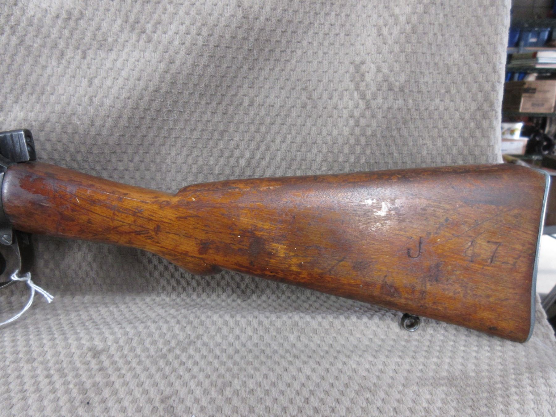 Non-Restricted - Lee Enfield No. 4 Mark I in 303 British - This bolt action rifle with 10 shot magazine appears to be in good working order. Barrel is 25", rifling is good to very good, bluing is fair to good, has both sights, stock & forearm are good with many marks, J 47 stamped in stock on left side, metal butt plate and has bayonet lug Ser # BZ13906