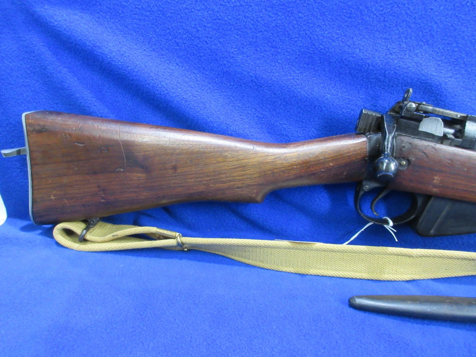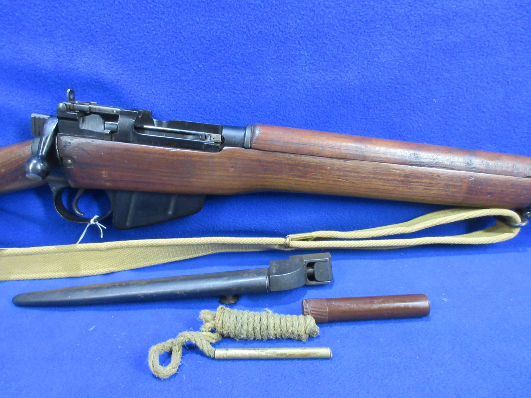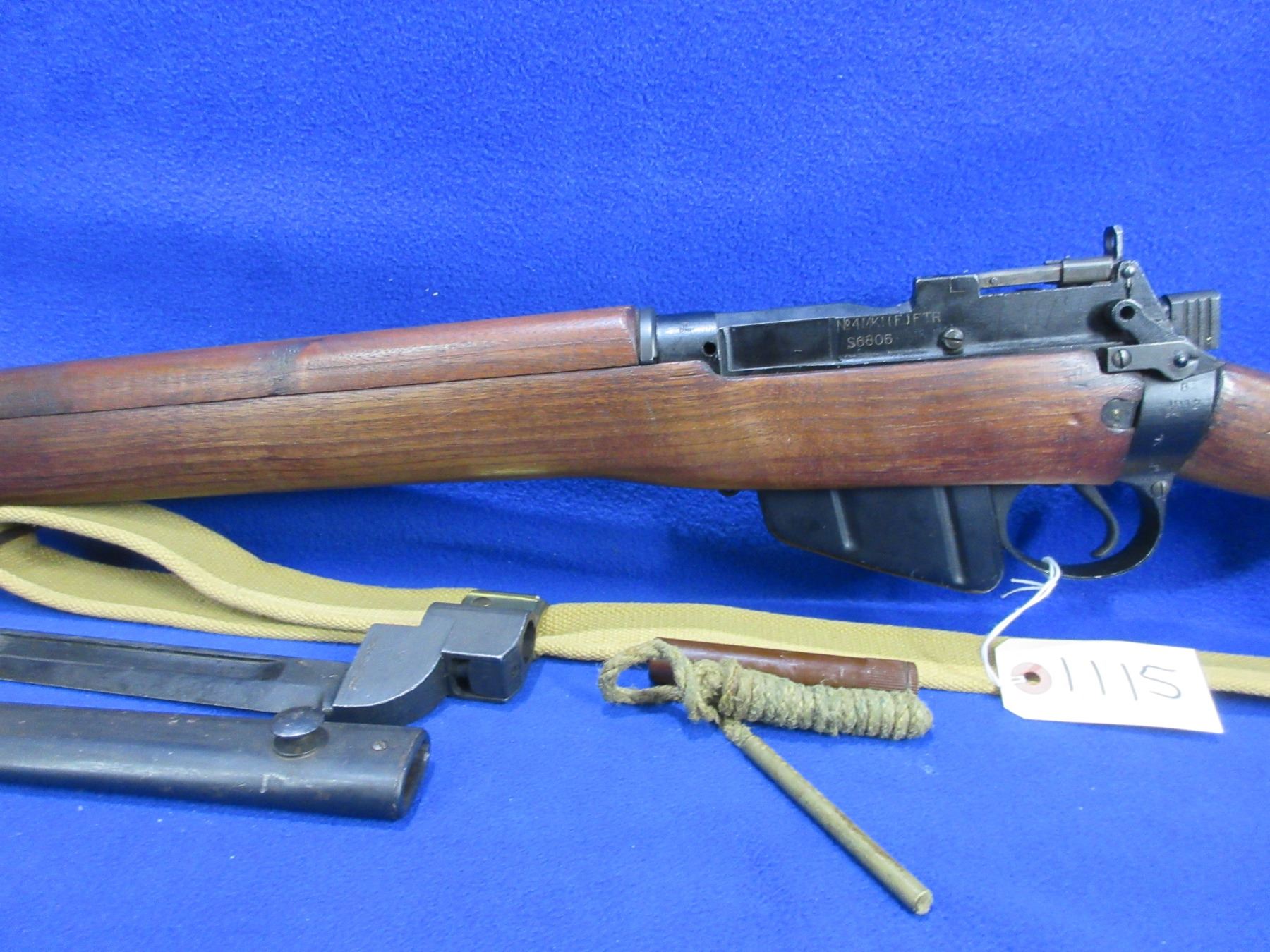 Non-Restricted - Lee Enfield No. 4 Mark I in 303 British - This bolt action rifle with removable magazine appears to be in good to very good working order. Barrel is 25", rifling is good to very good, bluing is good, has both sights, full wood stock is good with usage marks, butt plate good, comes with swivels, bayonet and sling, has oiler and cleaning rod in end of stock, rifle appears numbers matching. Ser #S6806