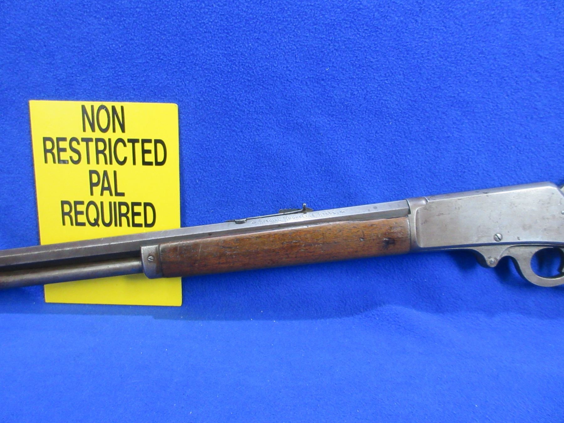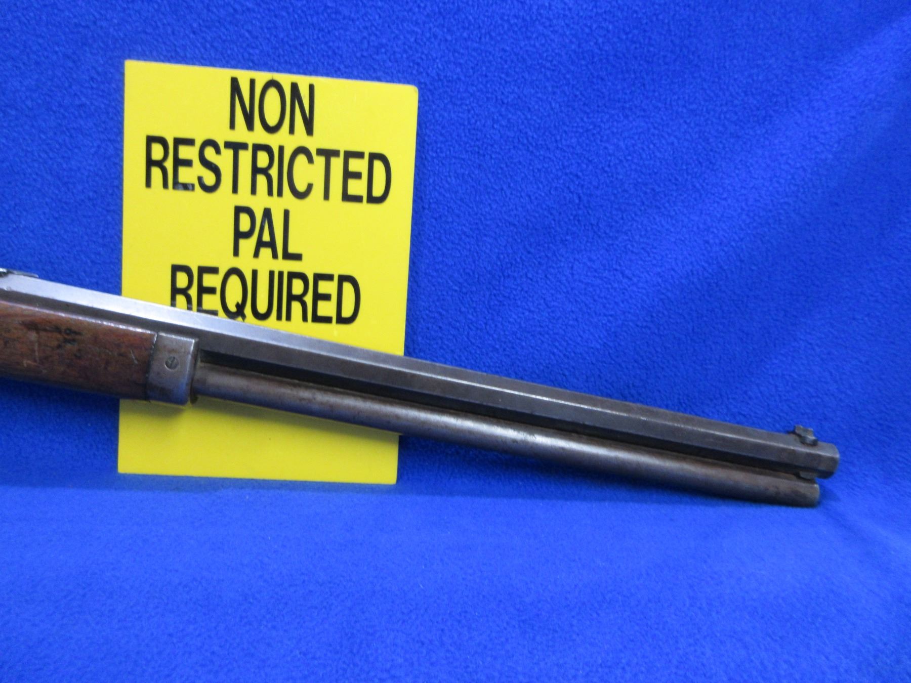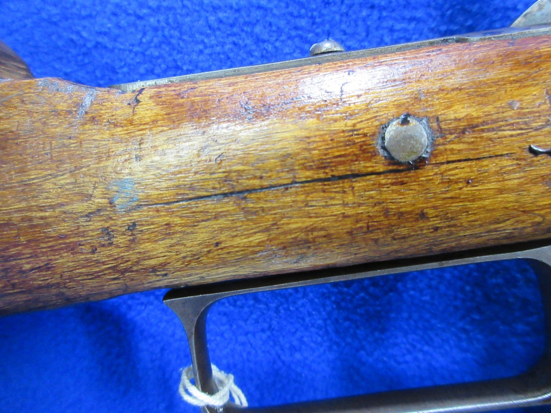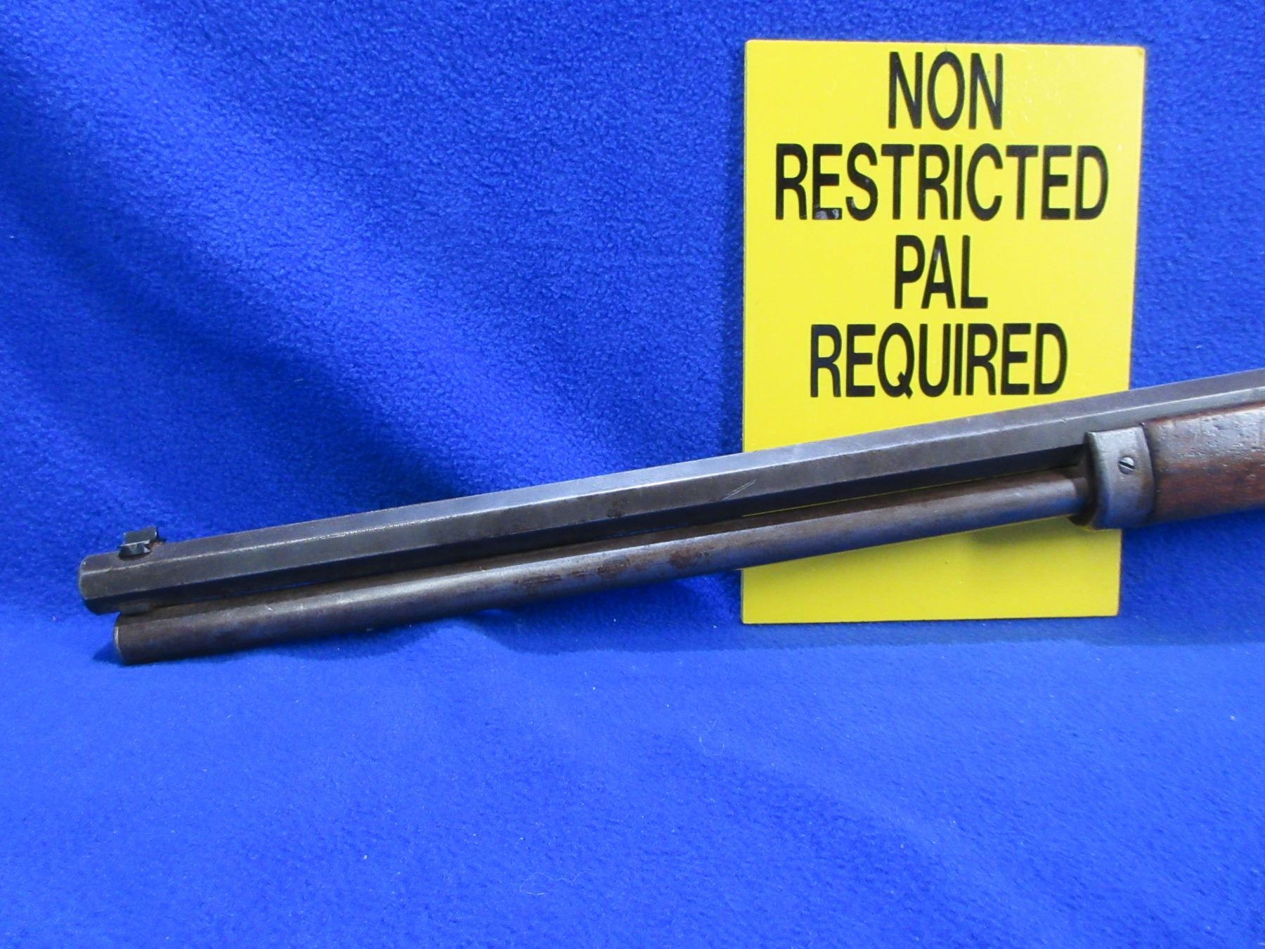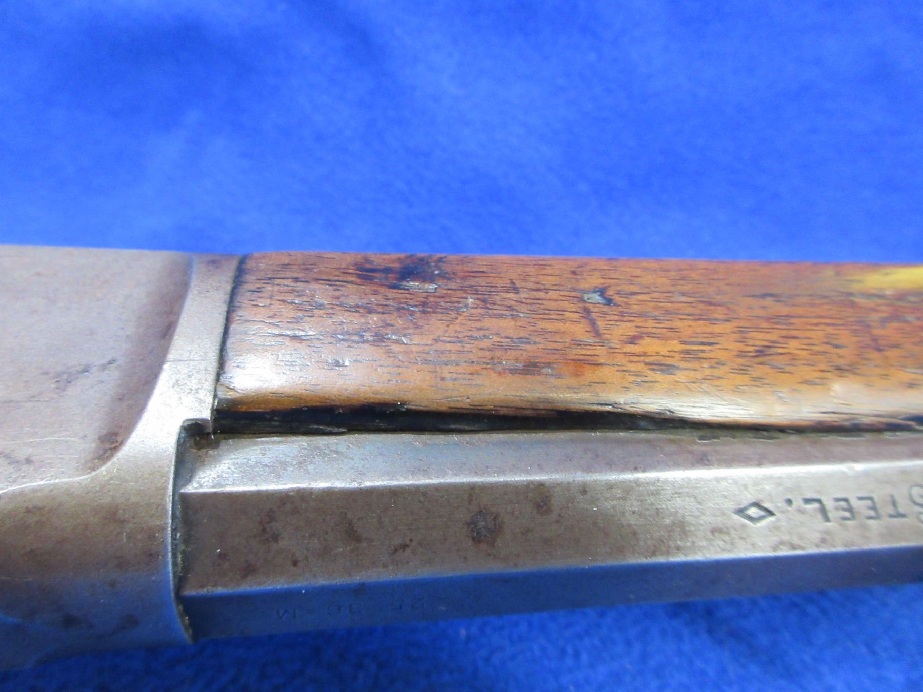 Non-Restricted - Marlin Model 1893 in 25-36 Marlin - Made in approx 1904, this is a lever action rifle with tube magazine, action appears to be in good working order. Octagon barrel is 21 3/4", rifling is fair to good with some pitting, bluing is turning brown or gone, has both sights, stock is poor and had been pinned in the wrist area, forearm has a chip at the top left side at the back, crescent metal butt plate good. Ser #264440