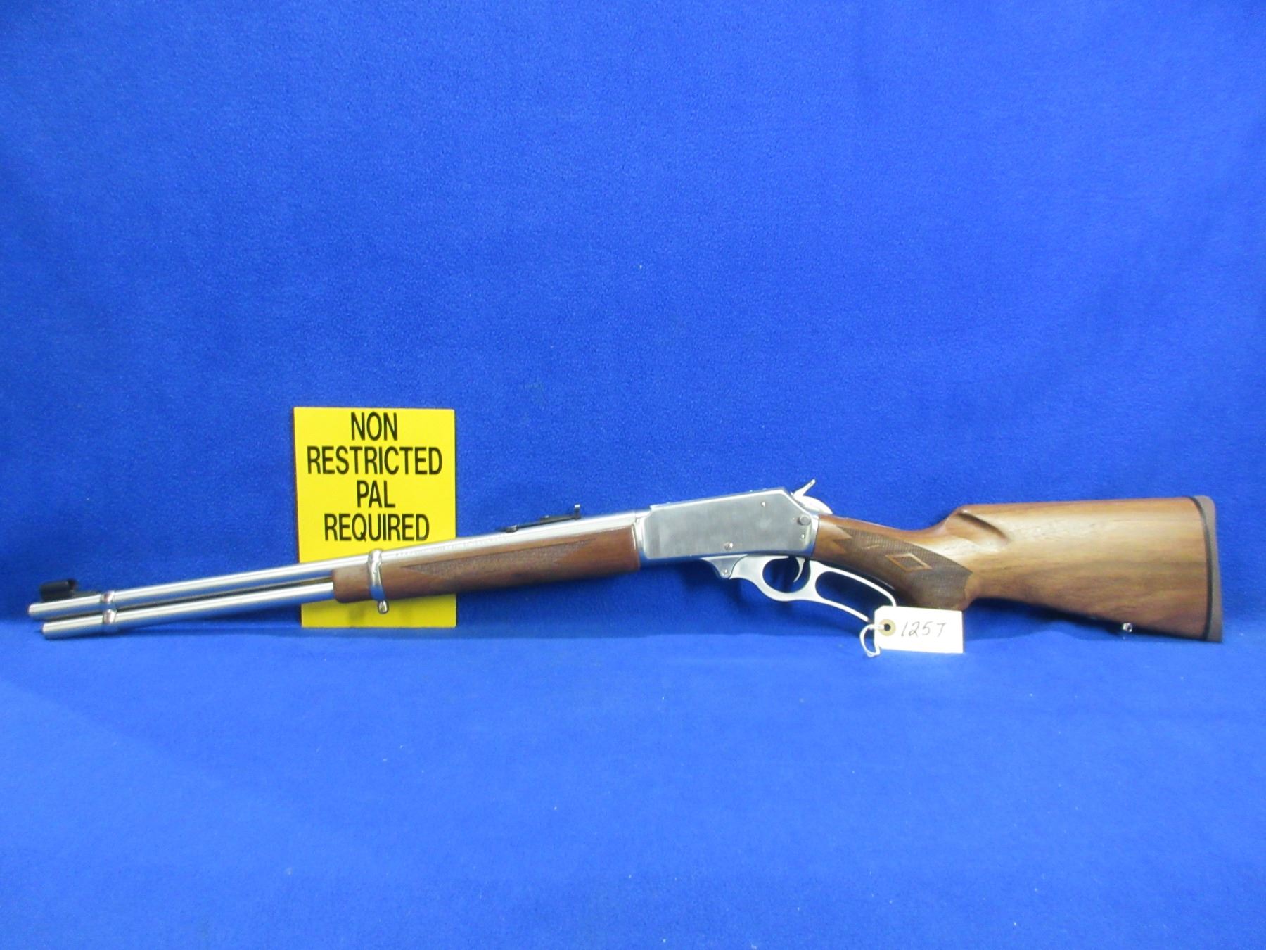 Non-Restricted - Marlin Model 336SS in 30-30 Win. - This is a lever action rifle with tube magazine, action appears to be in very good working order. Barrel is 20 1/4", rifling is very good, stainless steel is good to very good, has both sights and is drilled and tapped, stock and forearm are very good, length of pull is 14", rubber butt plate good, comes with swivel studs. Ser # MR44144E